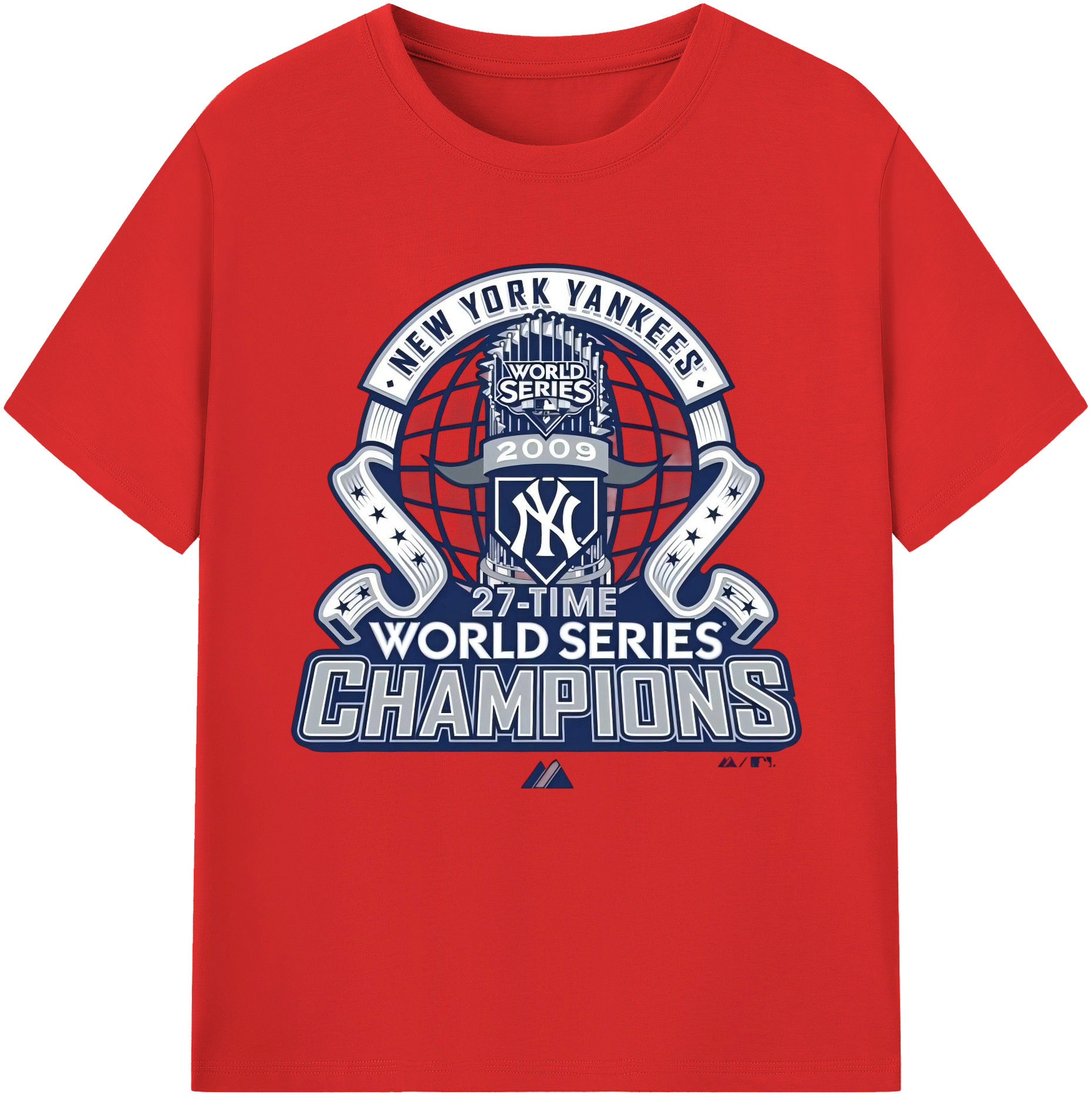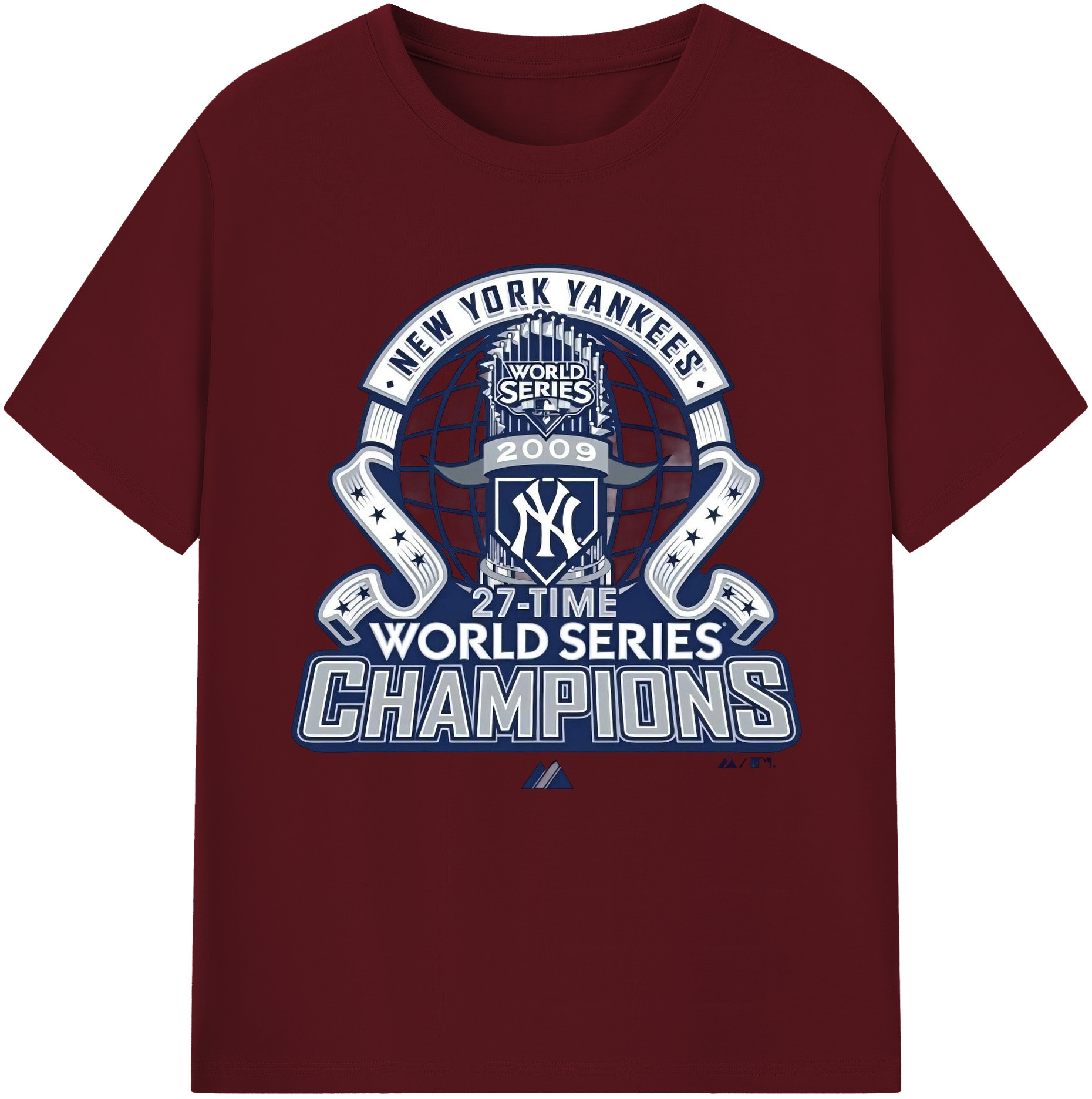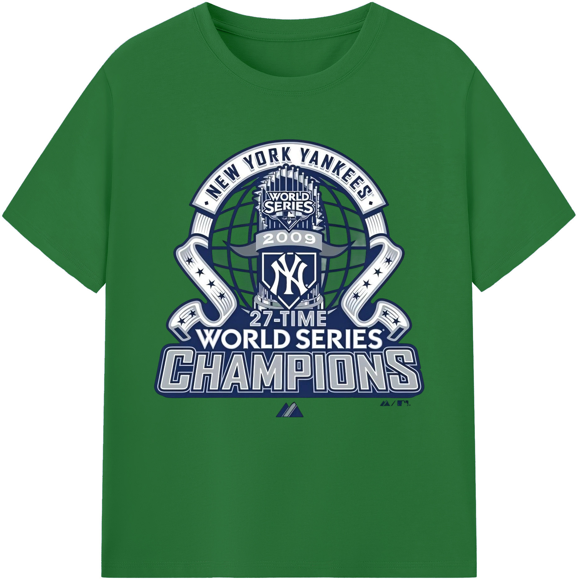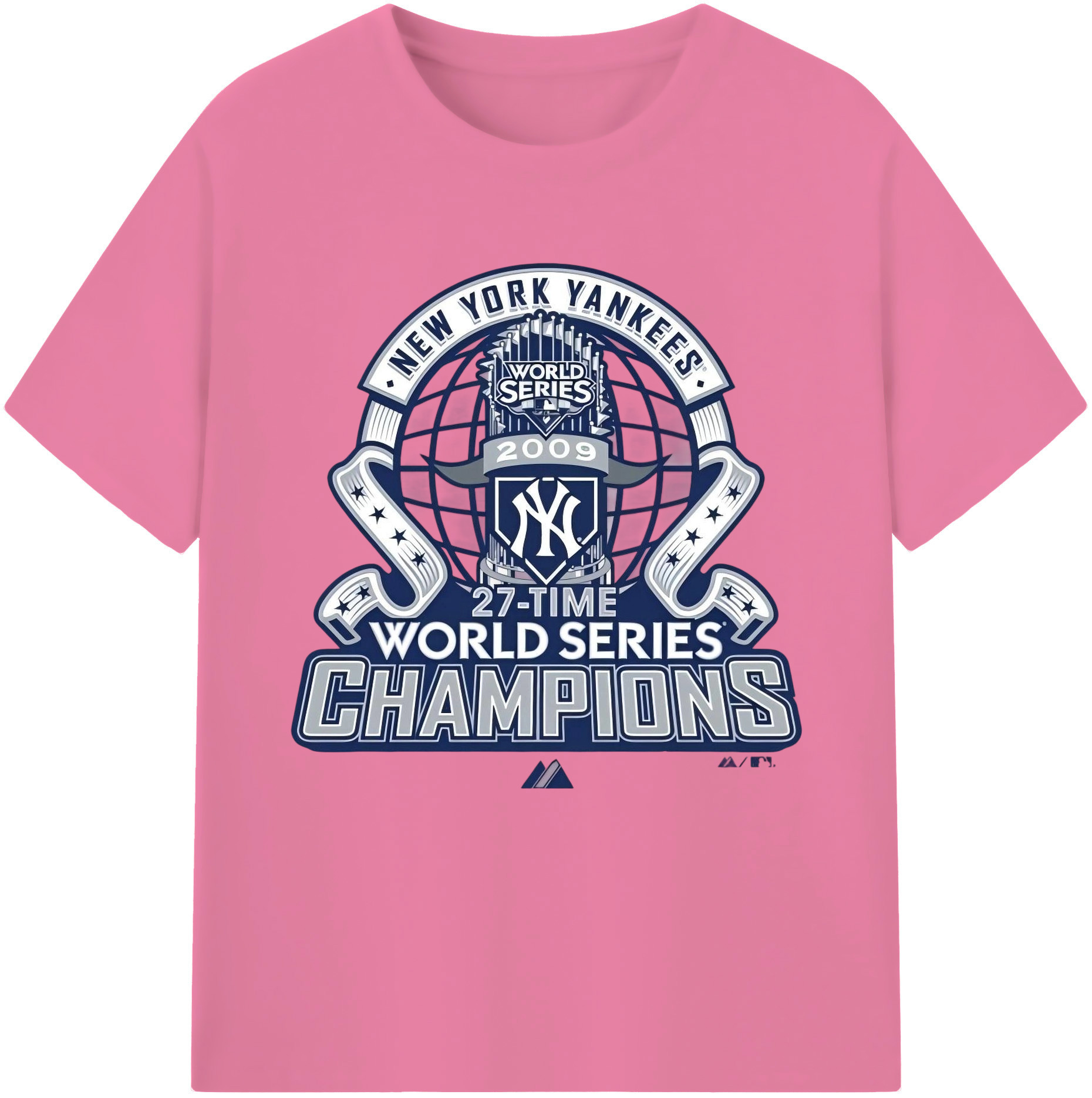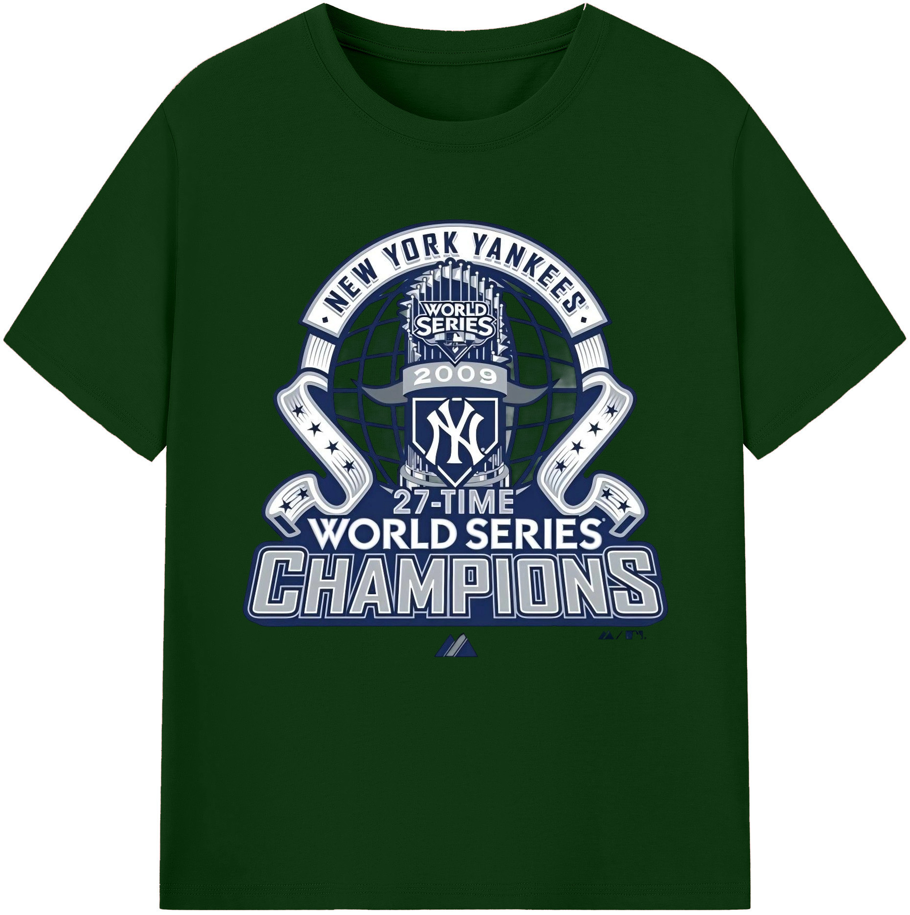 New York Yankees 2009 27th WS Champions Blue Combed Cotton T-Shirt 180g With Front Heat Transfer Print – Soft, Lightweight, Fitted Design – Stylish Casual Wear For Sports & Everyday Use