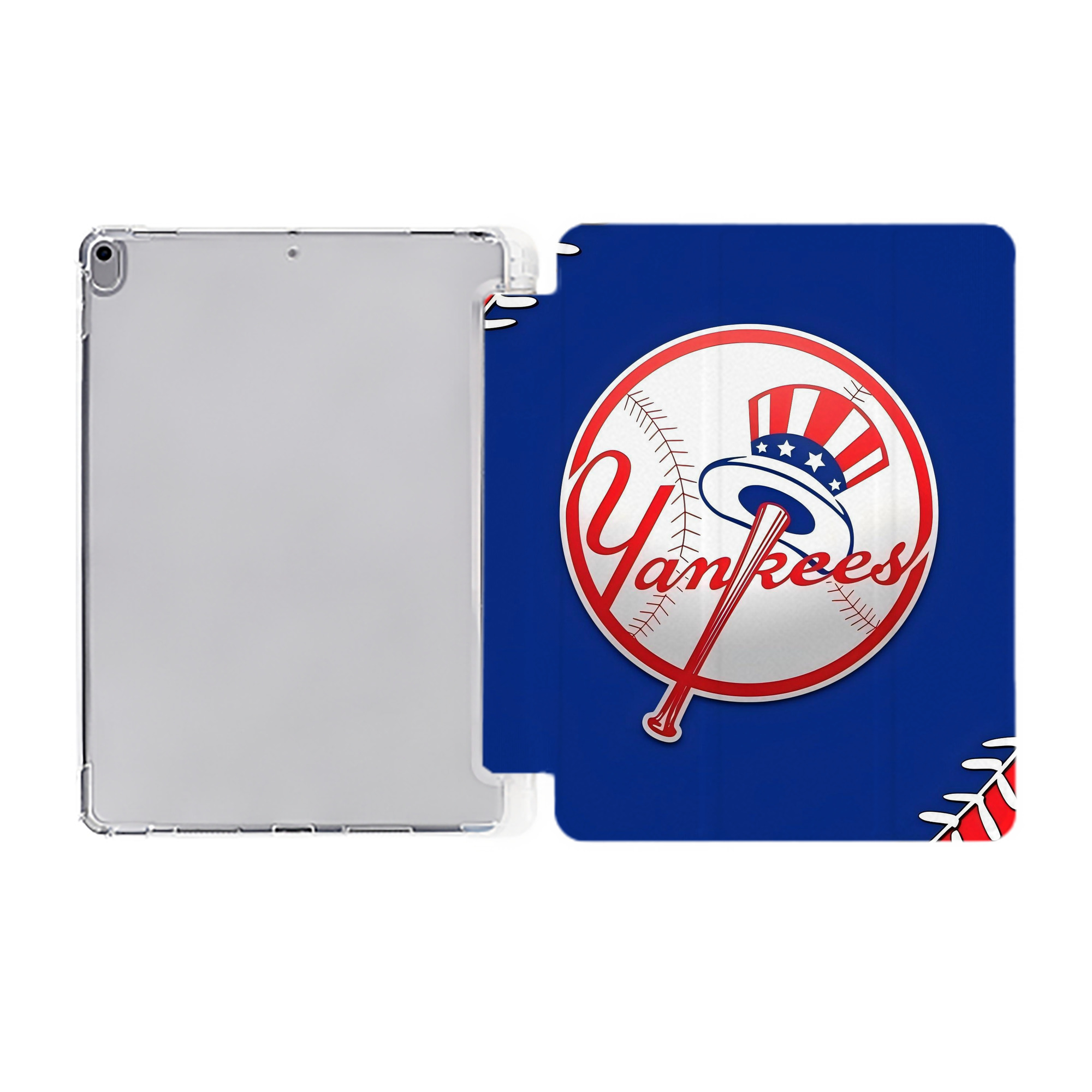 New York Yankees 203 Premium Tri-Fold PU Leather & Silicone IPad Case With Pencil Slot – Fits 9.5,10.5,10.9 – Adjustable Stand, Slim, Protective