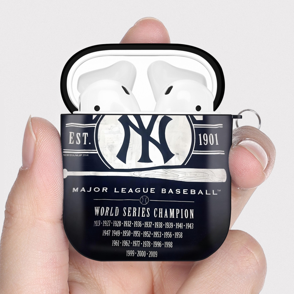 New York Yankees 211 AirPods 2 Case Hard Shell Black, Flexible PC Material, Precise Cutouts, Full Protection, Anti-Fingerprint, Washable, Includes Keychain – Durable & Slim Design