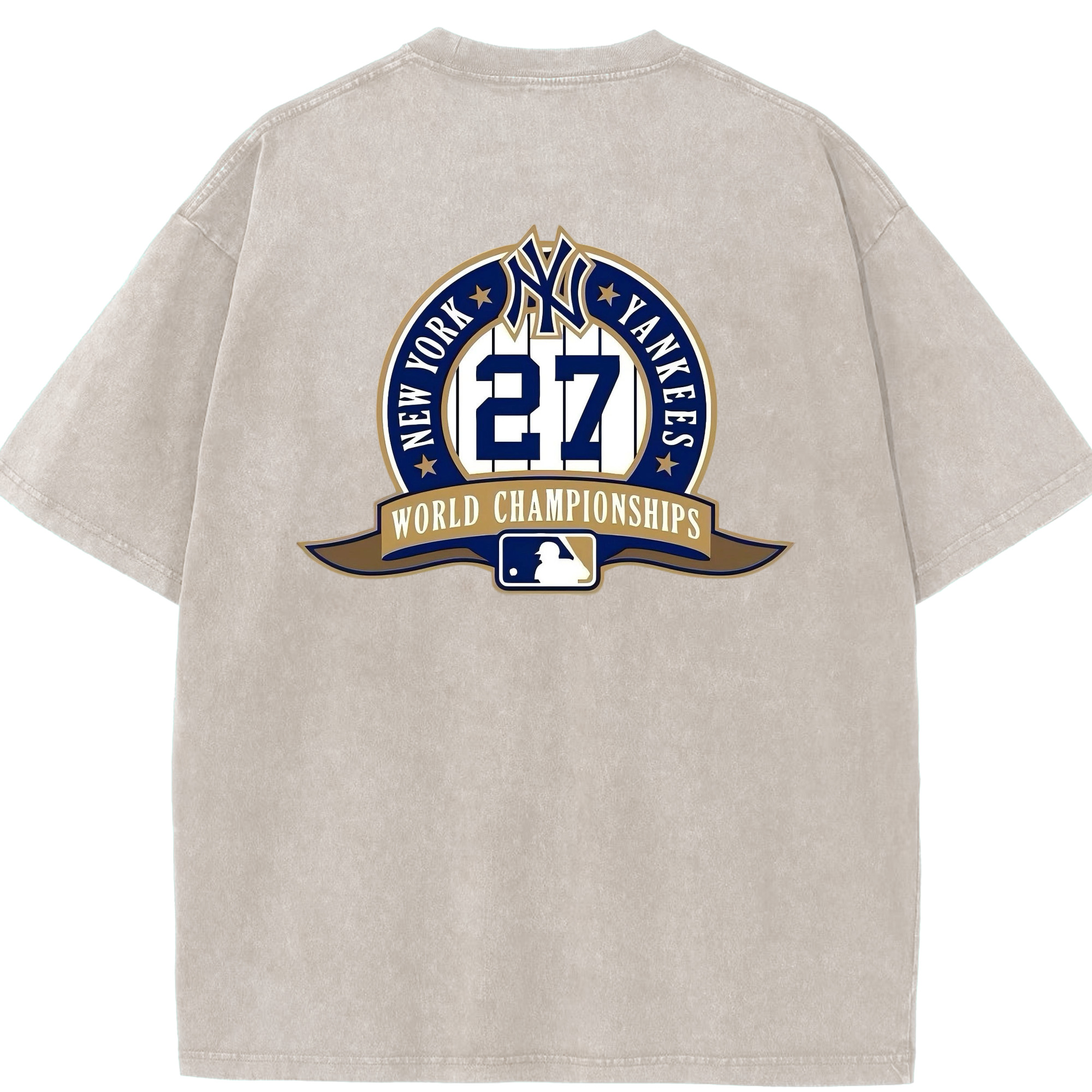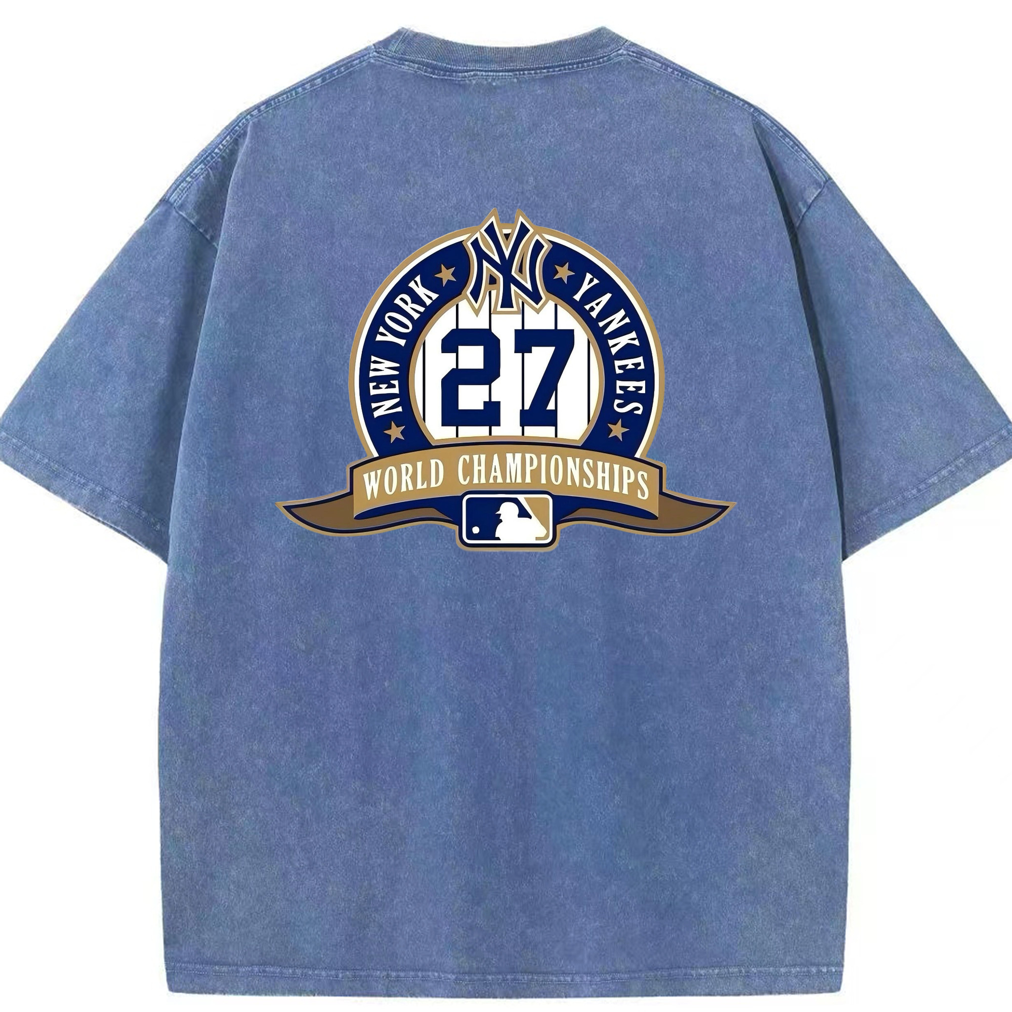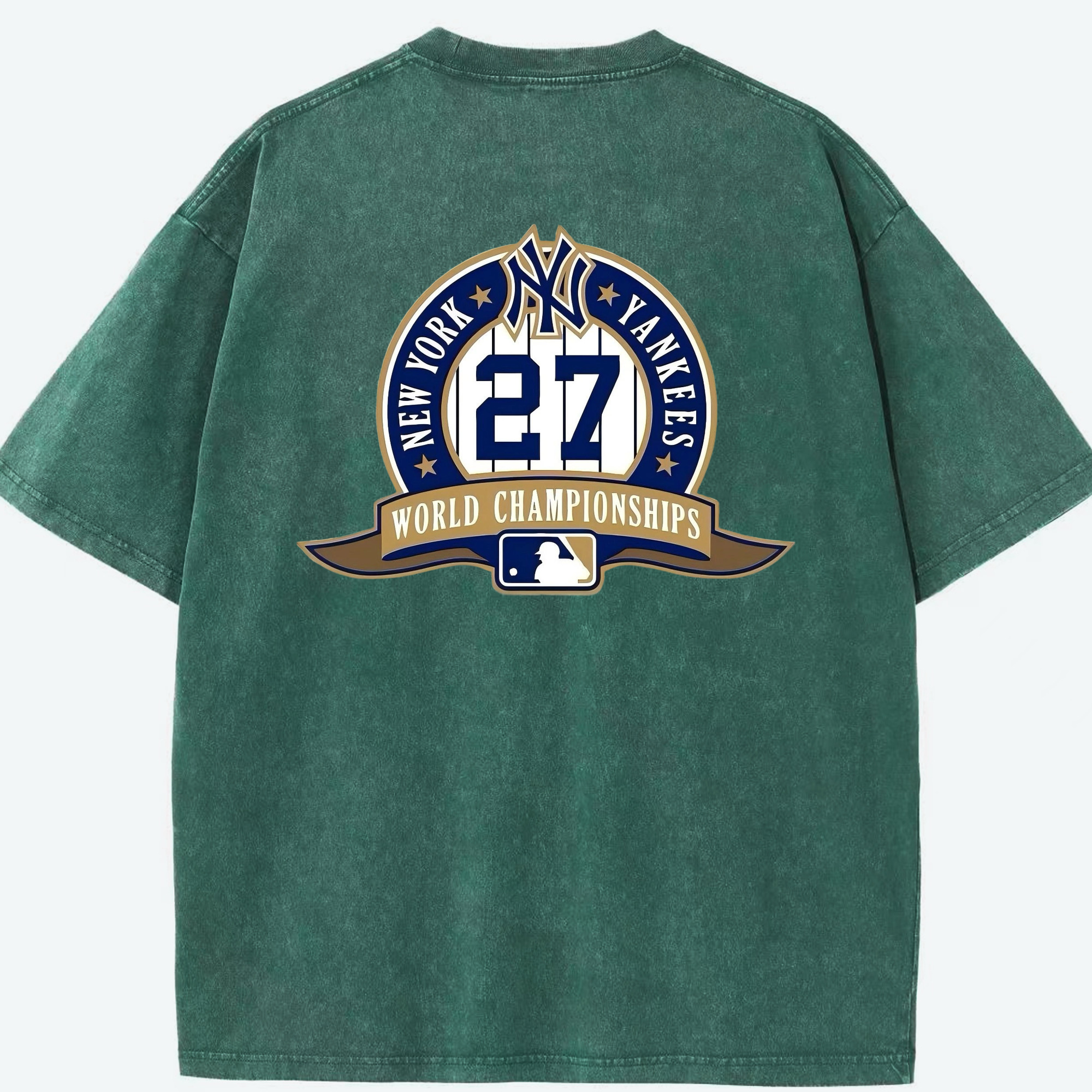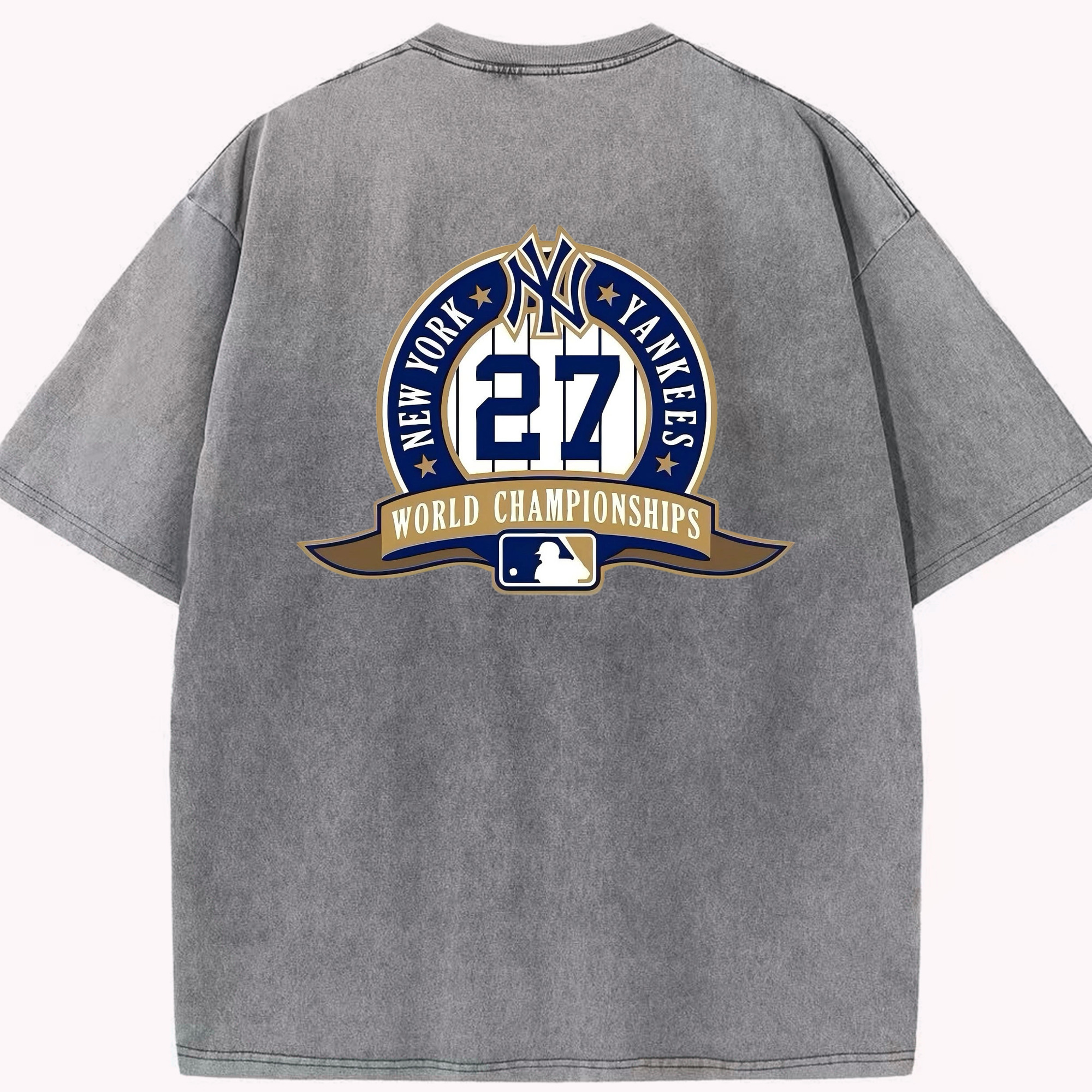 New York Yankees 27 World Championships Washed Vintage 230g Cotton Oversized T-Shirt With Back Heat Transfer Print – Soft, Lightweight & Stylish – Comfortable Casual Wear For Sports & Everyday Use