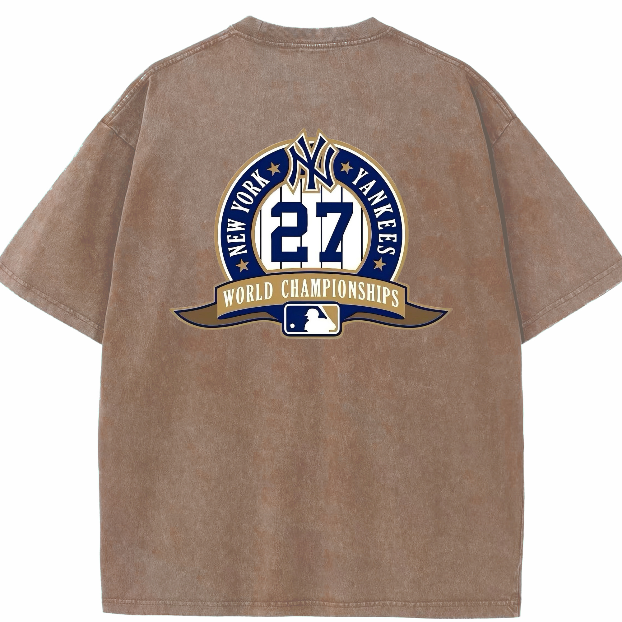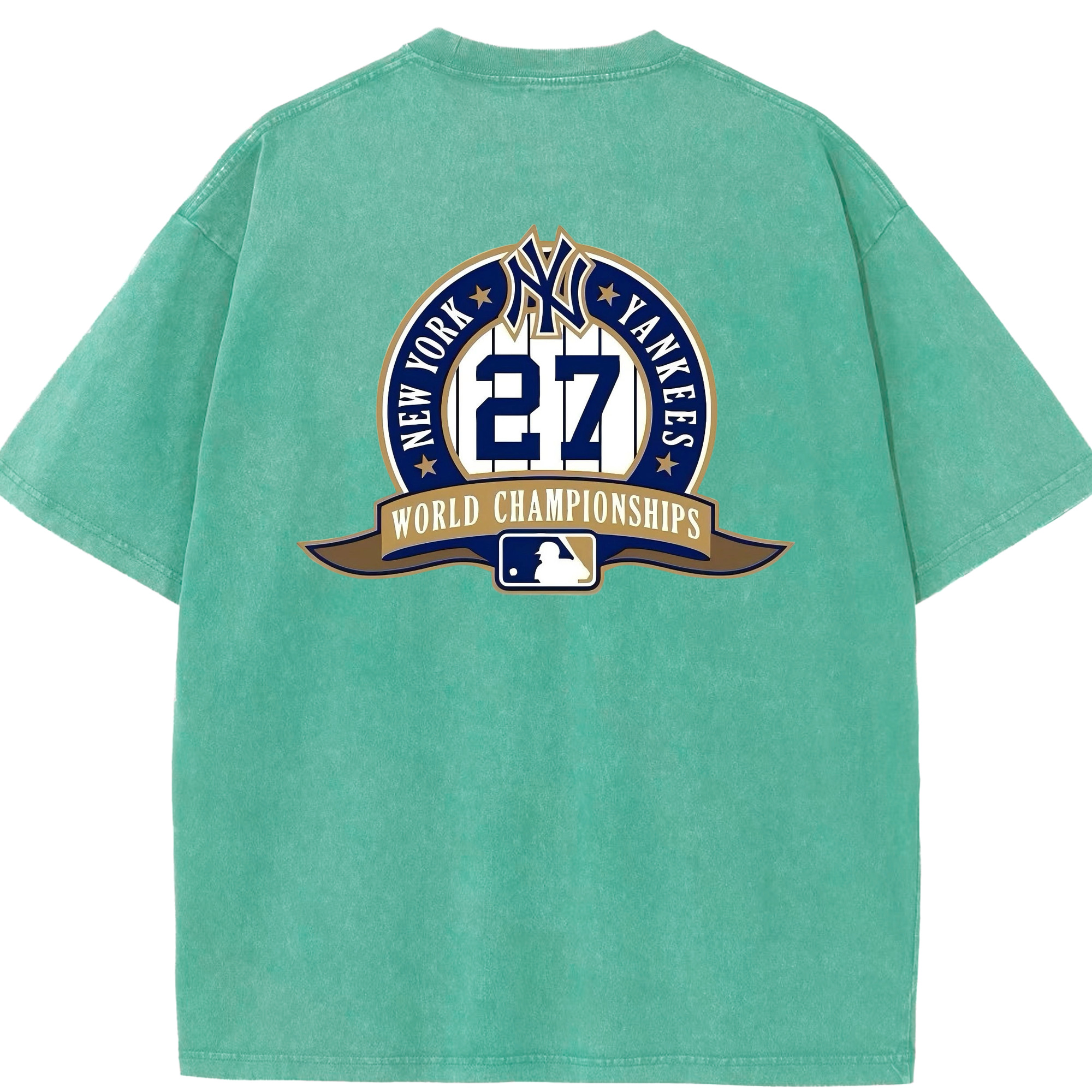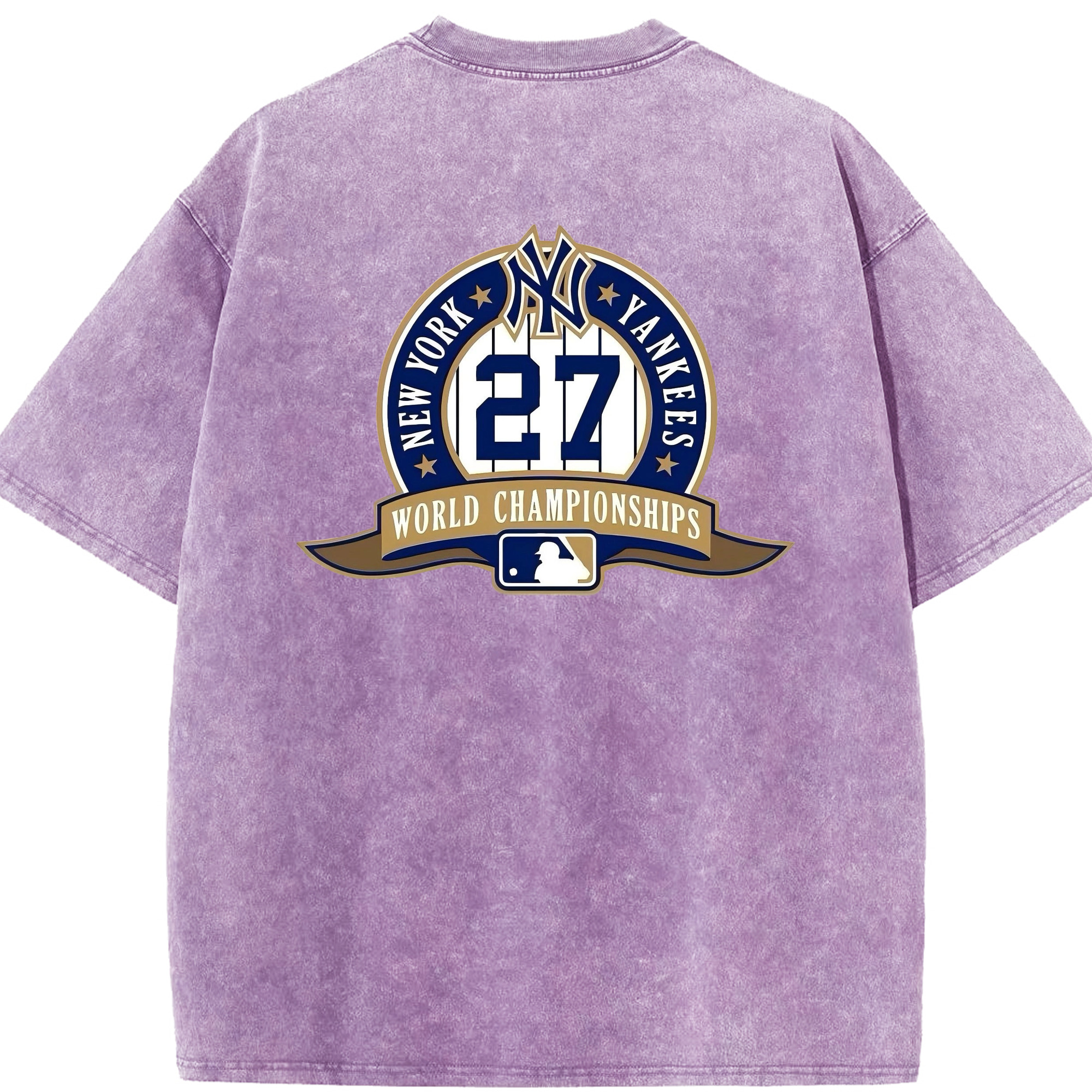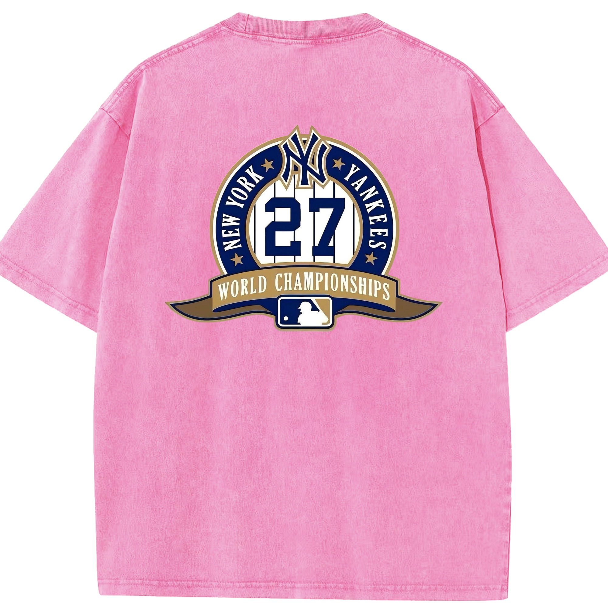 New York Yankees 27 World Championships Washed Vintage 230g Cotton Oversized T-Shirt With Back Heat Transfer Print – Soft, Lightweight & Stylish – Comfortable Casual Wear For Sports & Everyday Use