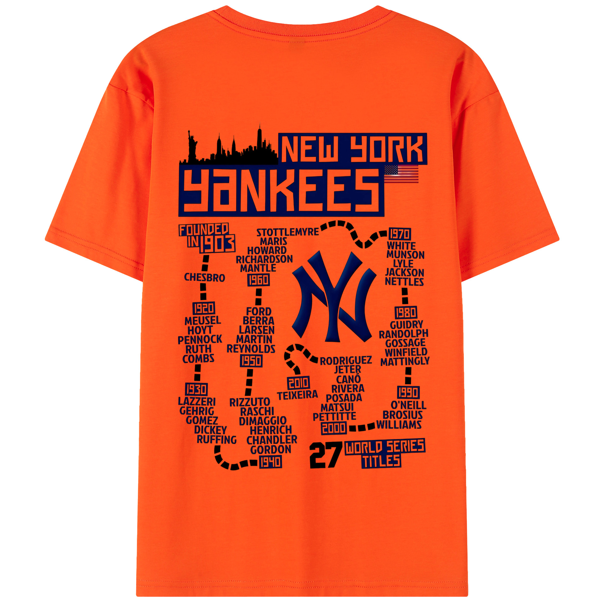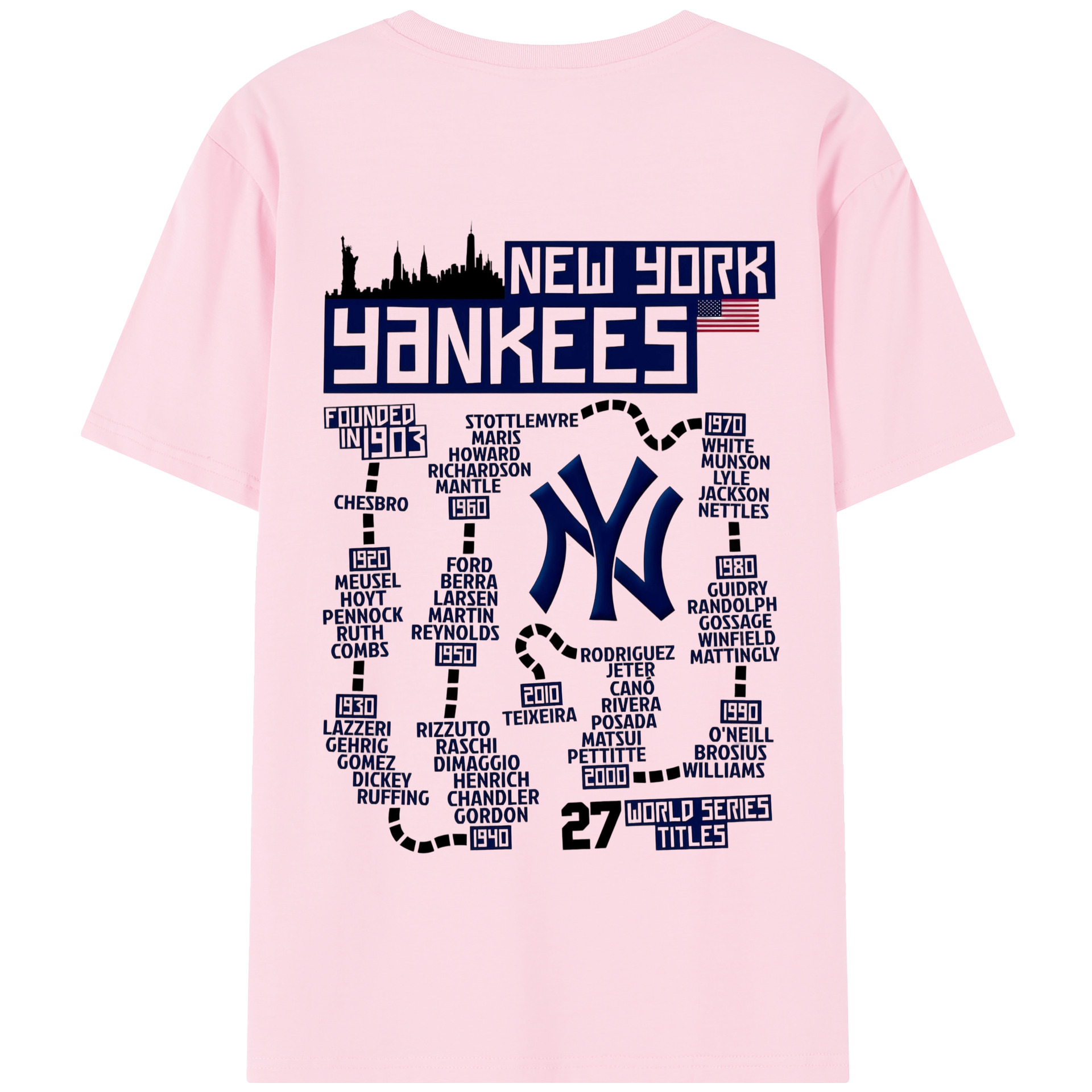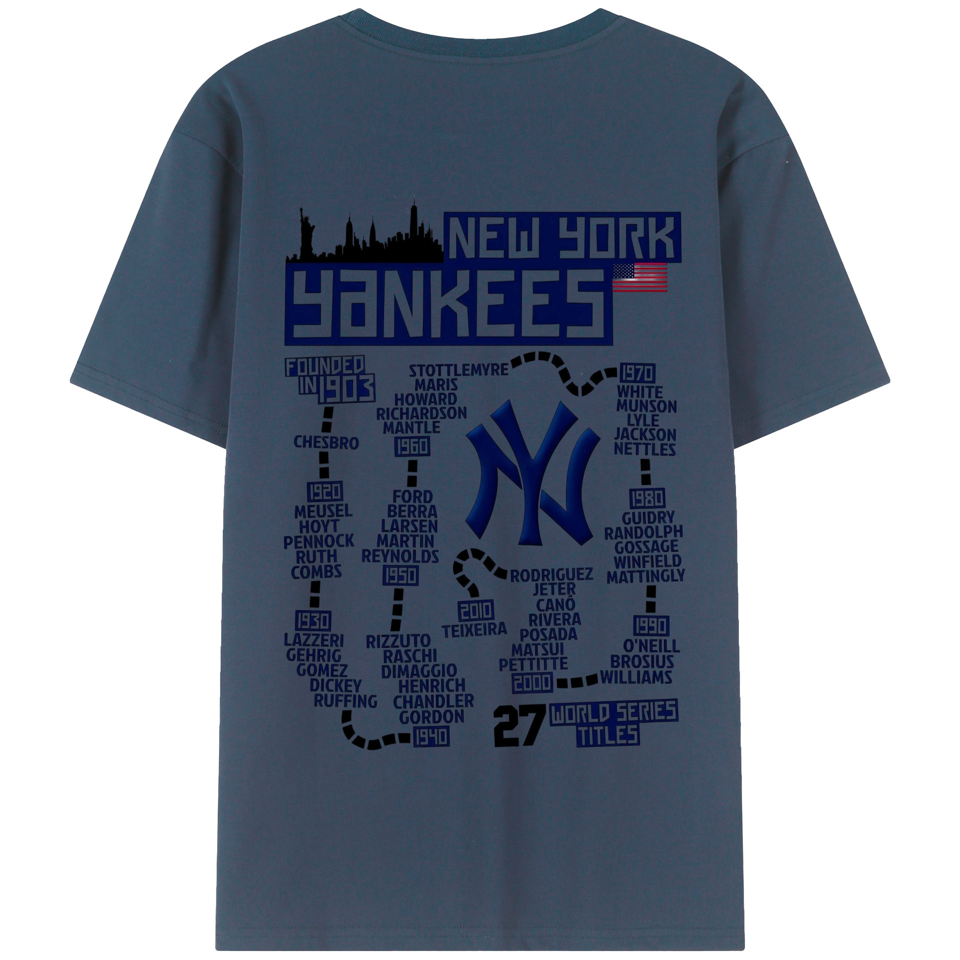 New York Yankees 27 World Series Titles 180g Combed Cotton T-Shirt With Back Heat Transfer Print – Soft, Lightweight, Fitted Design – Stylish Casual Wear For Sports & Everyday Use