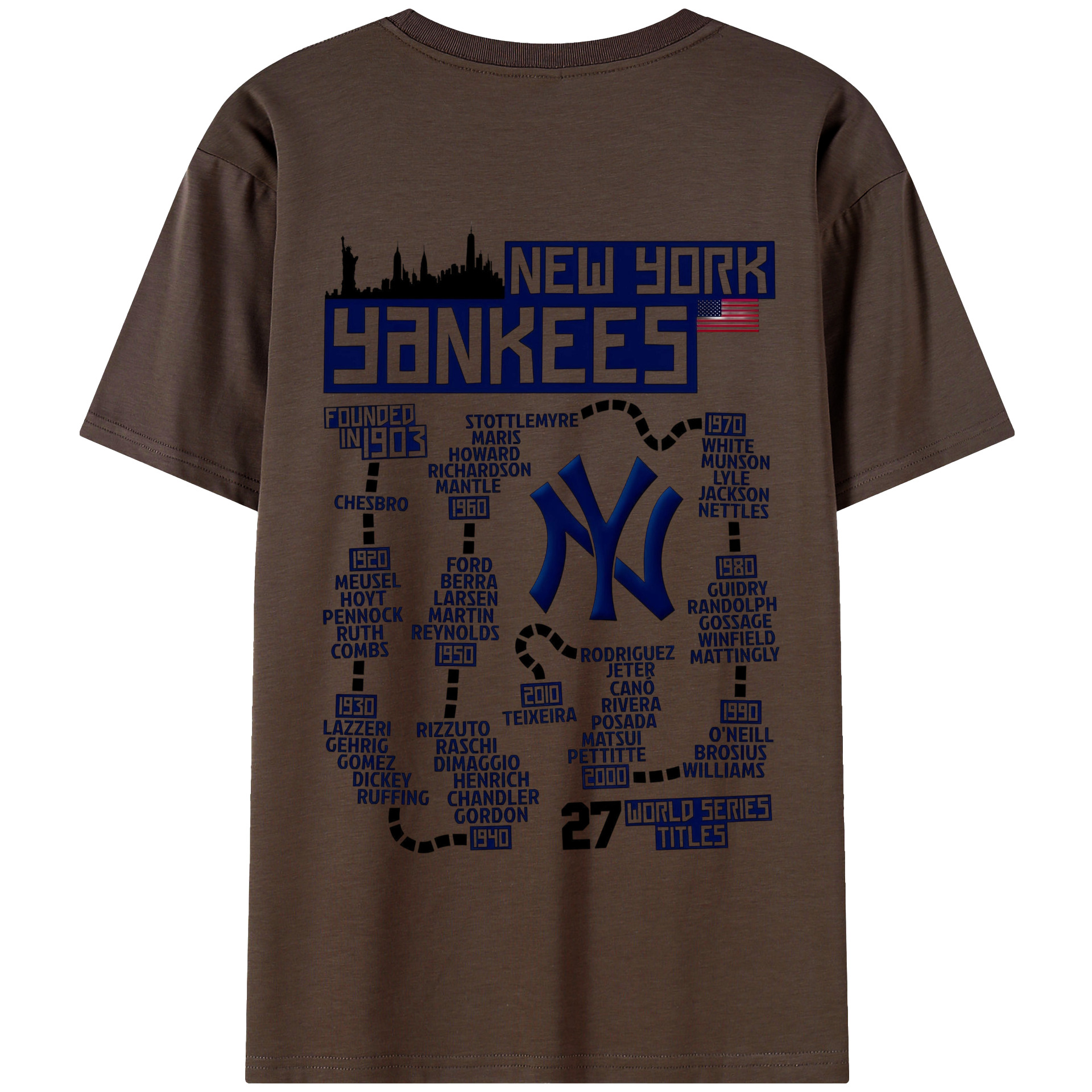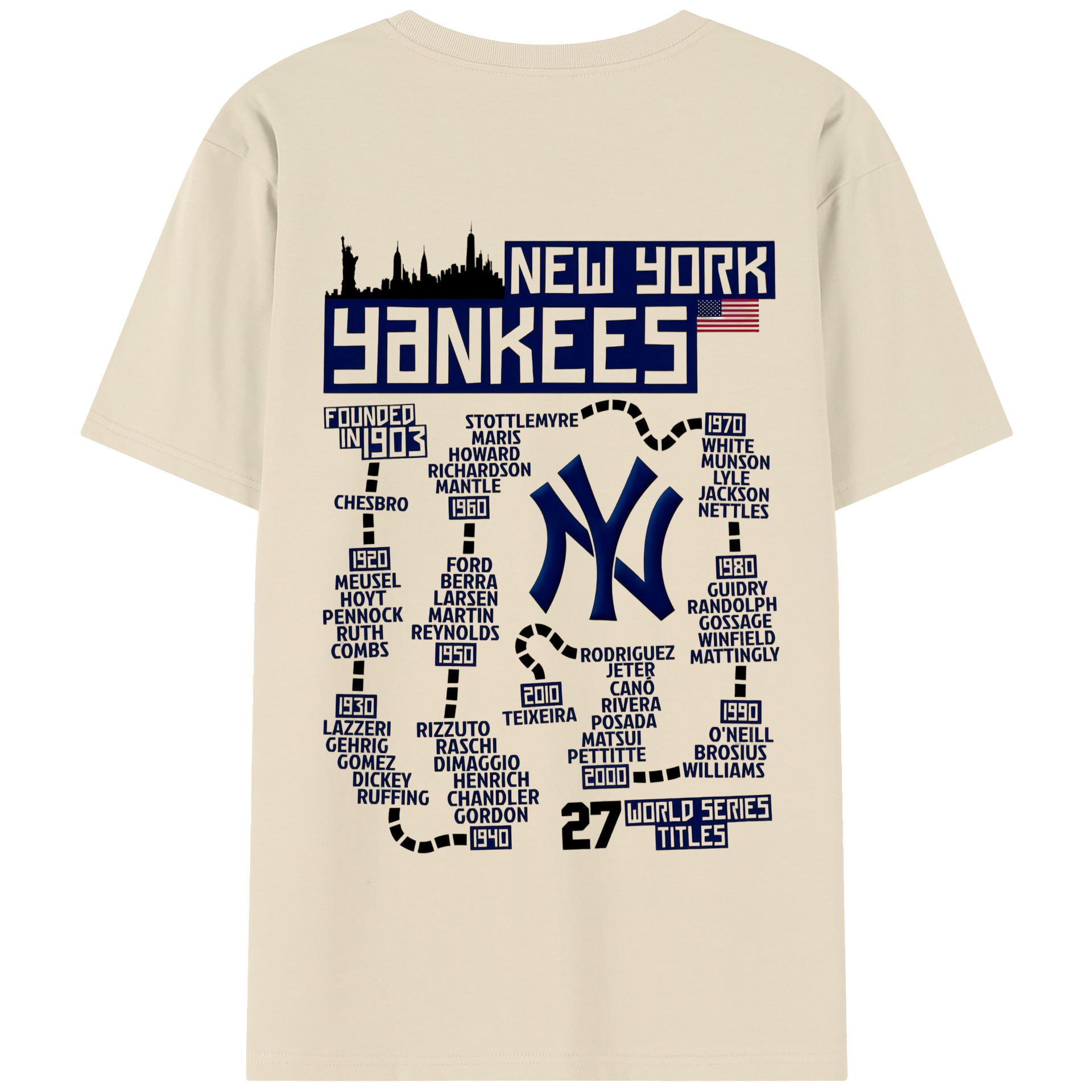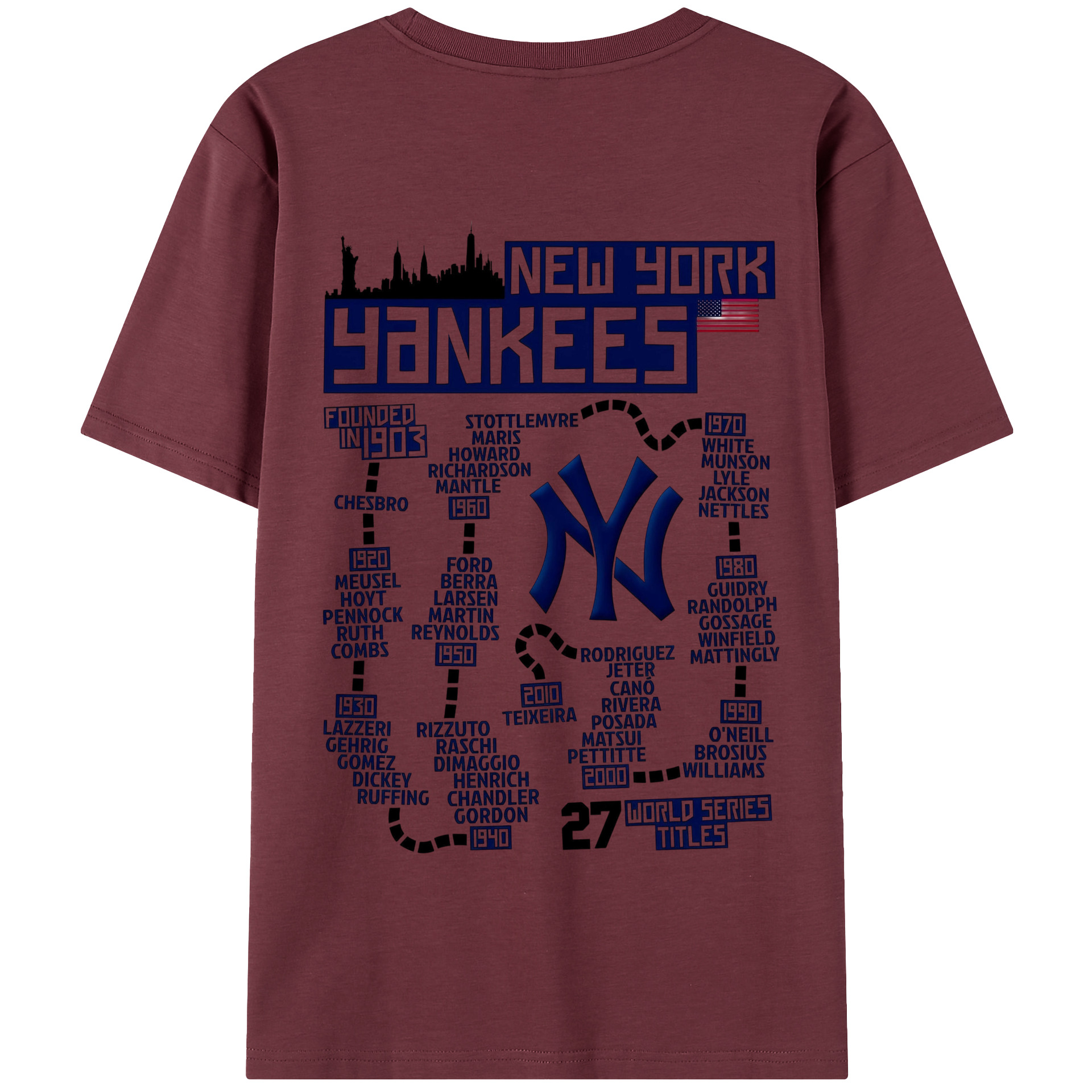 New York Yankees 27 World Series Titles 180g Combed Cotton T-Shirt With Back Heat Transfer Print – Soft, Lightweight, Fitted Design – Stylish Casual Wear For Sports & Everyday Use