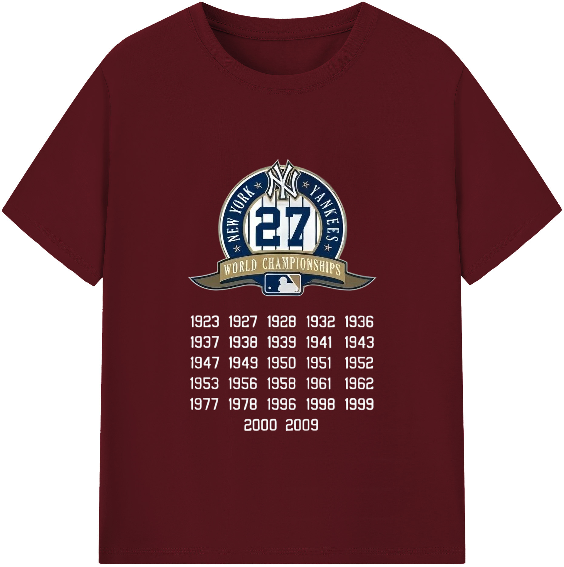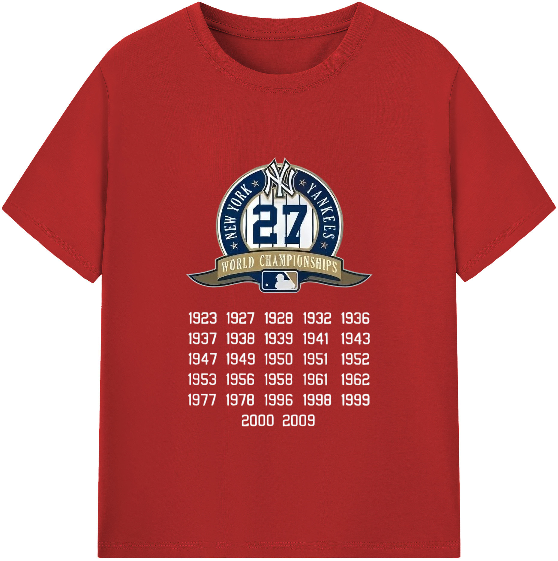 New York Yankees 27 WS Championships 180g Cotton T-Shirt With Front Heat Transfer Print – Soft, Lightweight, Fitted Design – Comfortable Casual Wear For Sports & Everyday Use