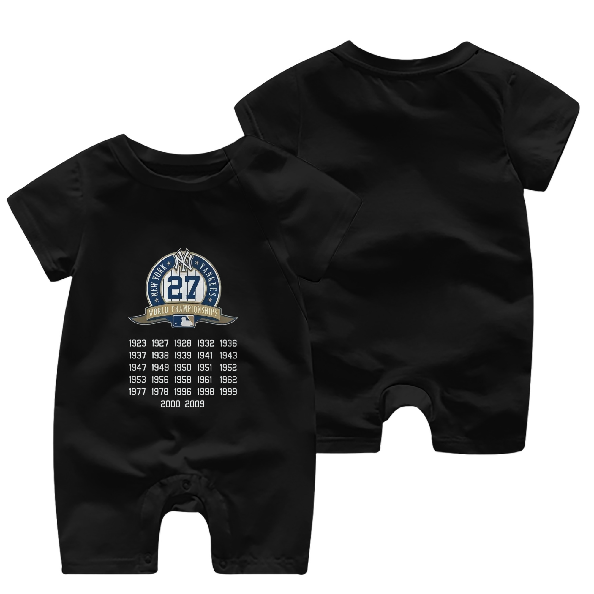 New York Yankees 27 WS Championships Baby Short Sleeve Onesie – 100% Cotton Soft & Breathable Digital Print Romper – Double-Sided Print, Snap Closure For Easy Diaper Changes – Comfortable For Boys & Girls