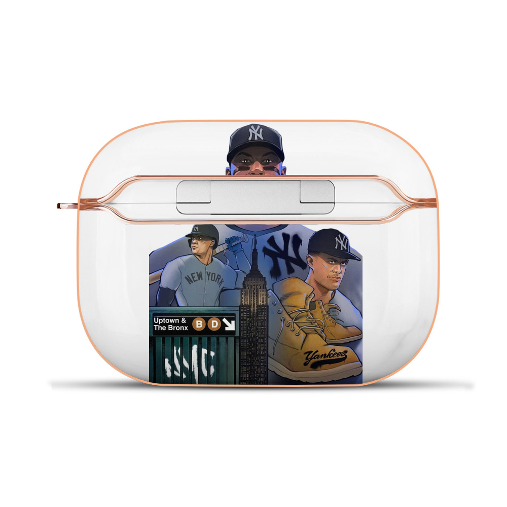 New York Yankees 273 AirPods Pro Protective Case Rose Gold, Flexible PC Material, Precise Fit, Anti-Slip Cover, Full Protection, Fingerprint Resistant, Washable With Keychain