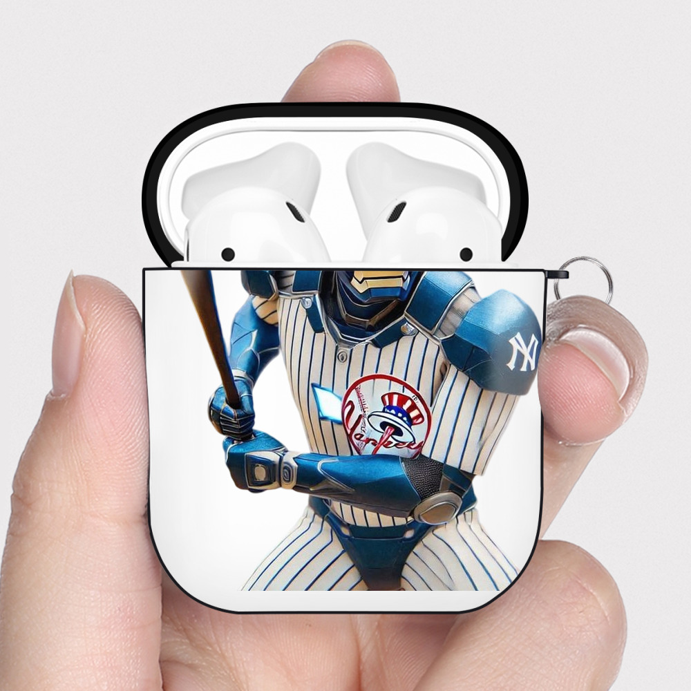 New York Yankees 283 AirPods 2 Case Hard Shell Black, Flexible PC Material, Precise Cutouts, Full Protection, Anti-Fingerprint, Washable, Includes Keychain – Durable & Slim Design