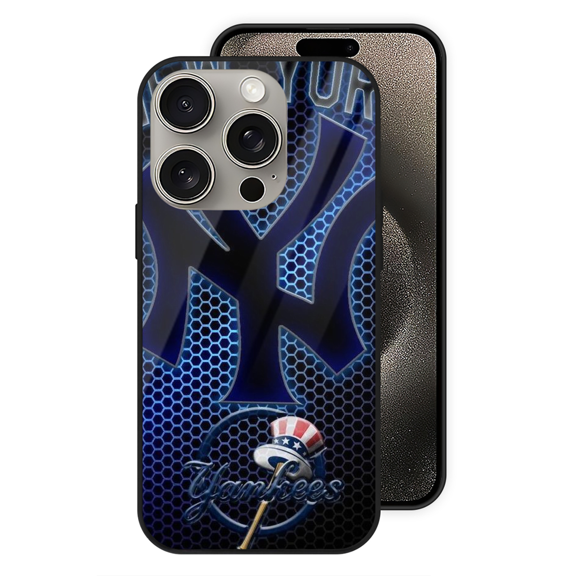 New York Yankees 319 IPhone 15 Pro Mirror Phone Case – UV Printed Glass + TPU – Scratch-Resistant, Wireless Charging Compatible, Precise Fit & Stylish Design
