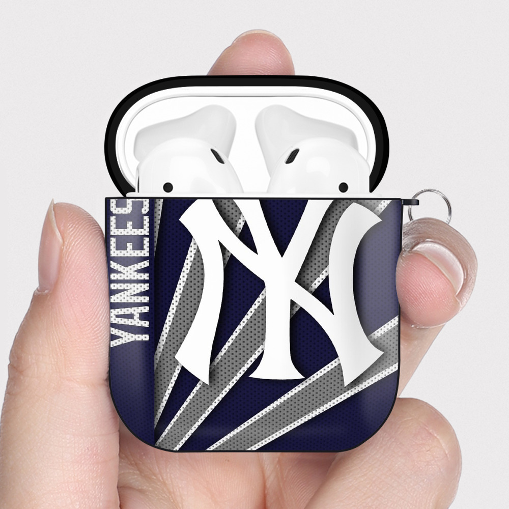 New York Yankees 321 AirPods 2 Case Hard Shell Black, Flexible PC Material, Precise Cutouts, Full Protection, Anti-Fingerprint, Washable, Includes Keychain – Durable & Slim Design