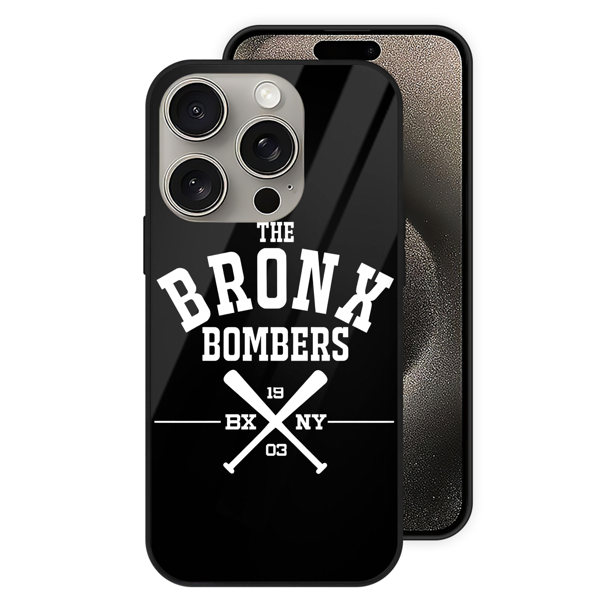 New York Yankees 45 IPhone 15 Pro Mirror Phone Case – UV Printed Glass + TPU – Scratch-Resistant, Wireless Charging Compatible, Precise Fit & Stylish Design