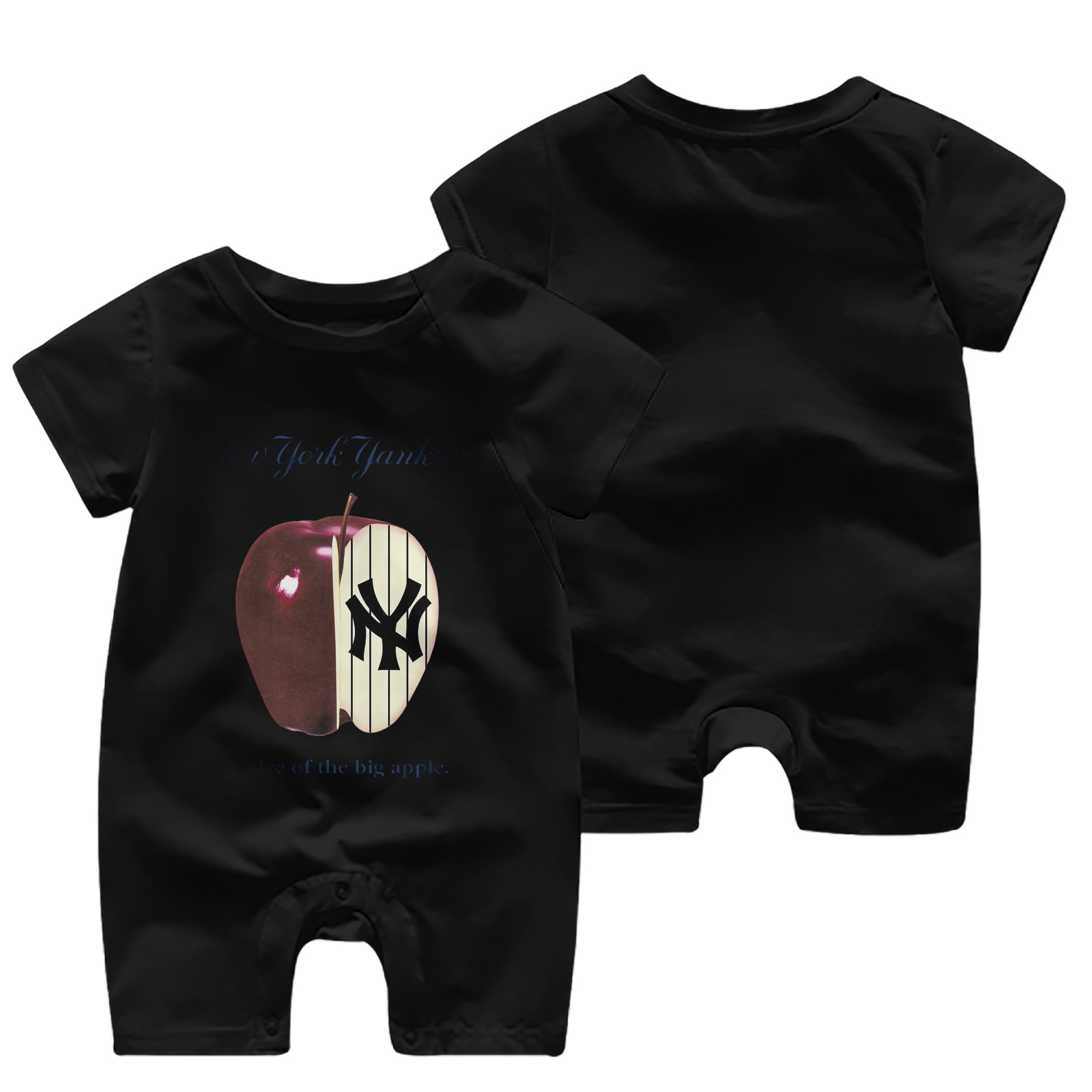 New York Yankees A Slice of The Big Apple Baby Short Sleeve Onesie – 100% Cotton Soft & Breathable Digital Print Romper – Double-Sided Print, Snap Closure For Easy Diaper Changes – Comfortable For Boys & Girls