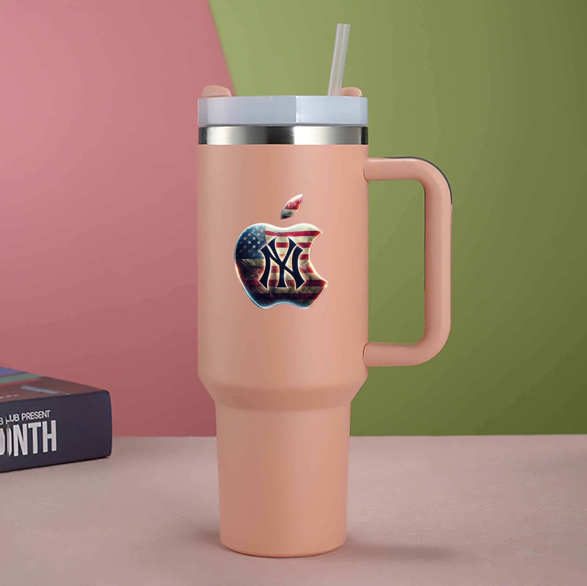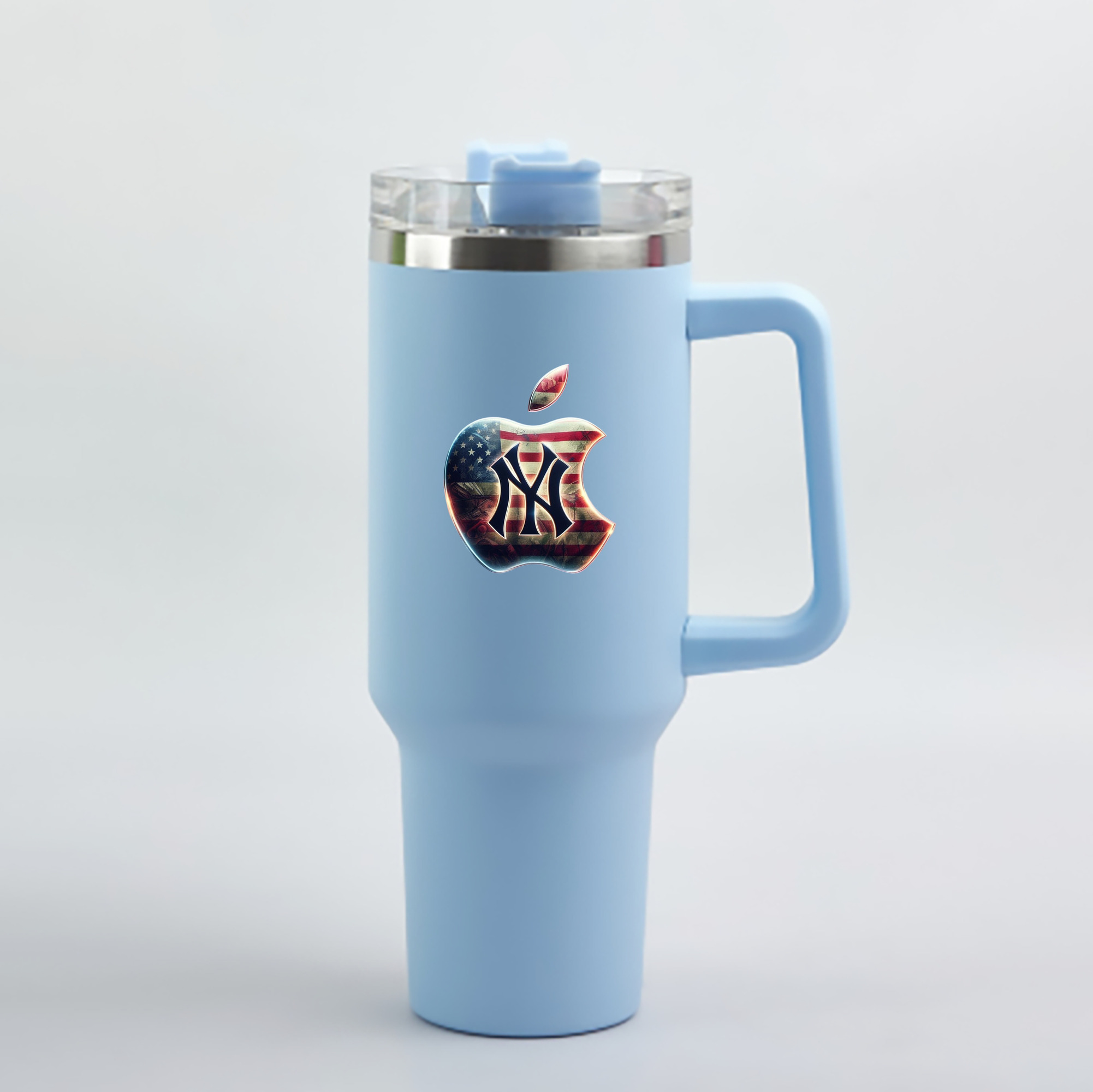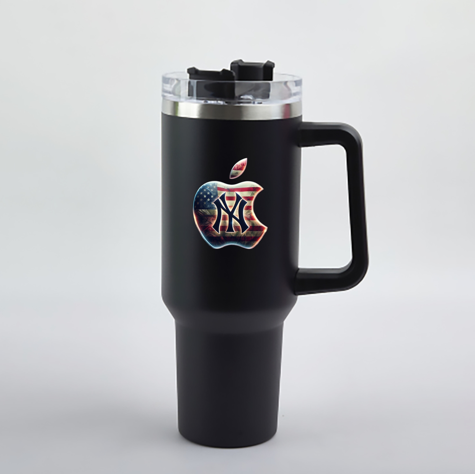 A generic imageNew York Yankees Apple US Flag 40oz Handle Car Cup With Crystal Sticker Design – Durable Stainless Steel Travel Mug With Reusable Straw – Double Wall InsulatedNew York Yankees Apple US Flag 40oz Handle Car Cup With Crystal Sticker Design – Durable Stainless Steel Travel Mug With Reusable Straw – Double Wall Insulated