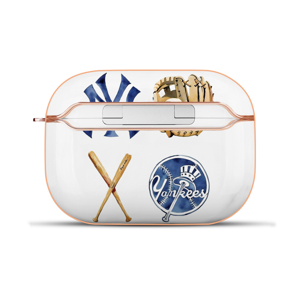 New York Yankees Baseball AirPods Pro Protective Case Rose Gold, Flexible PC Material, Precise Fit, Anti-Slip Cover, Full Protection, Fingerprint Resistant, Washable With Keychain