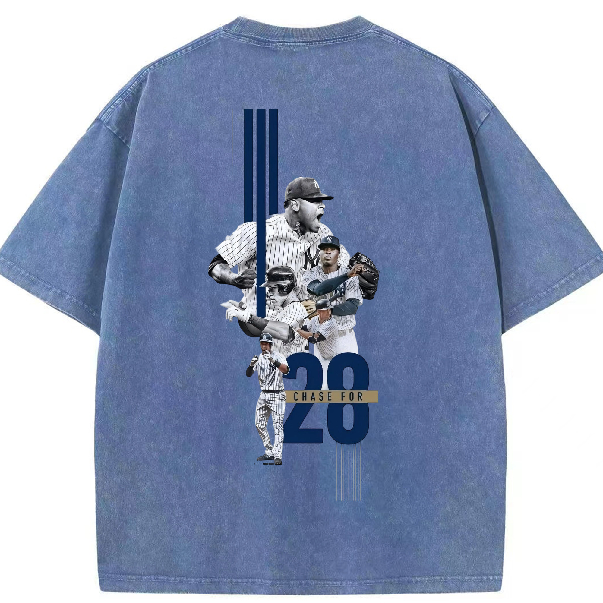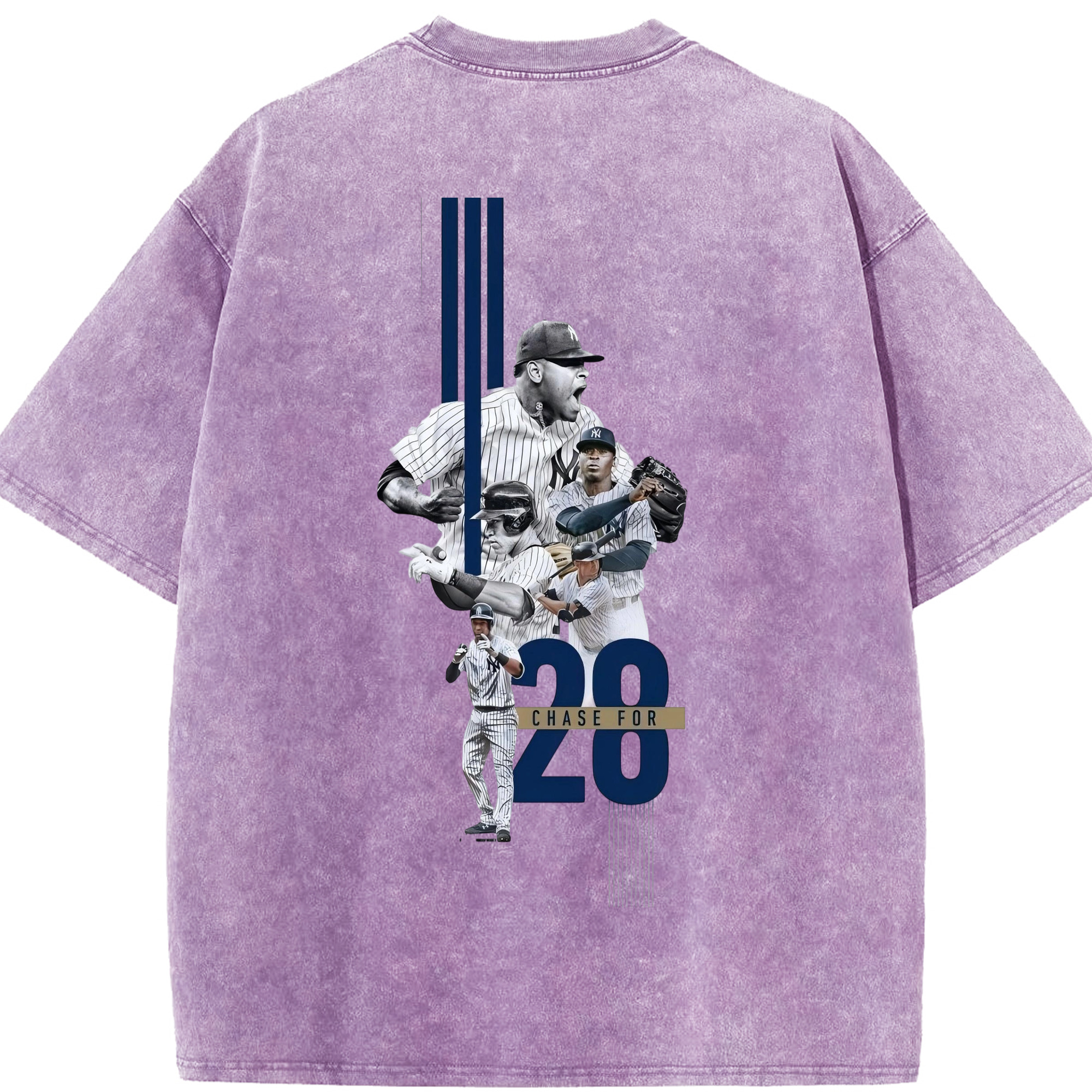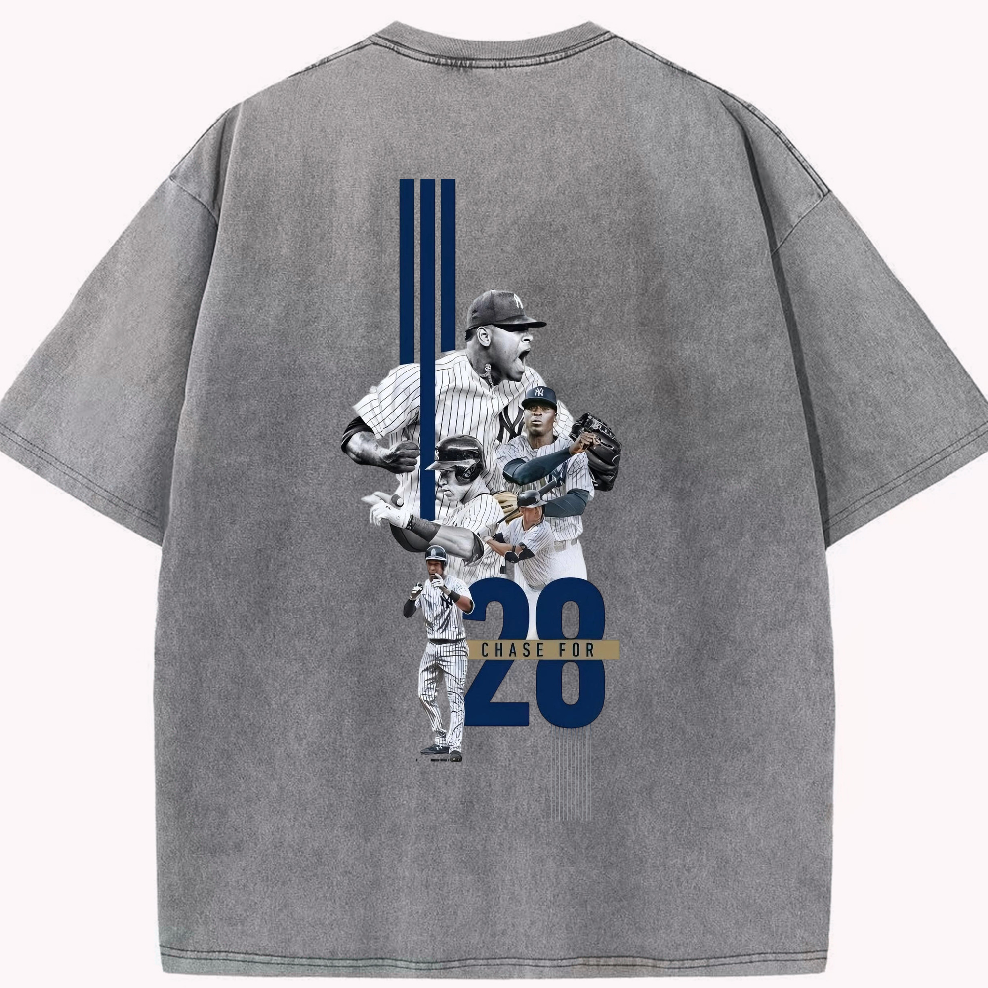 New York Yankees Chase For 28 Washed Vintage 230g Cotton Oversized T-Shirt With Back Heat Transfer Print – Soft, Lightweight & Stylish – Comfortable Casual Wear For Sports & Everyday Use