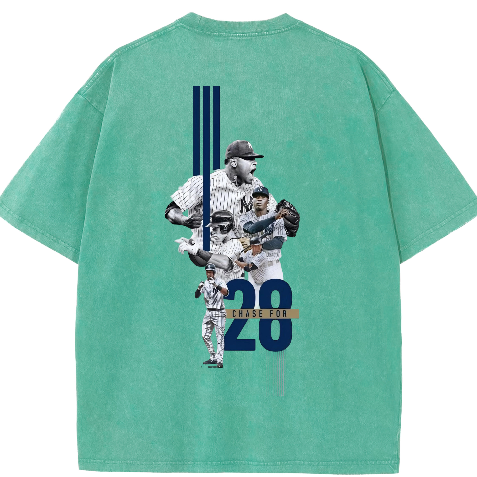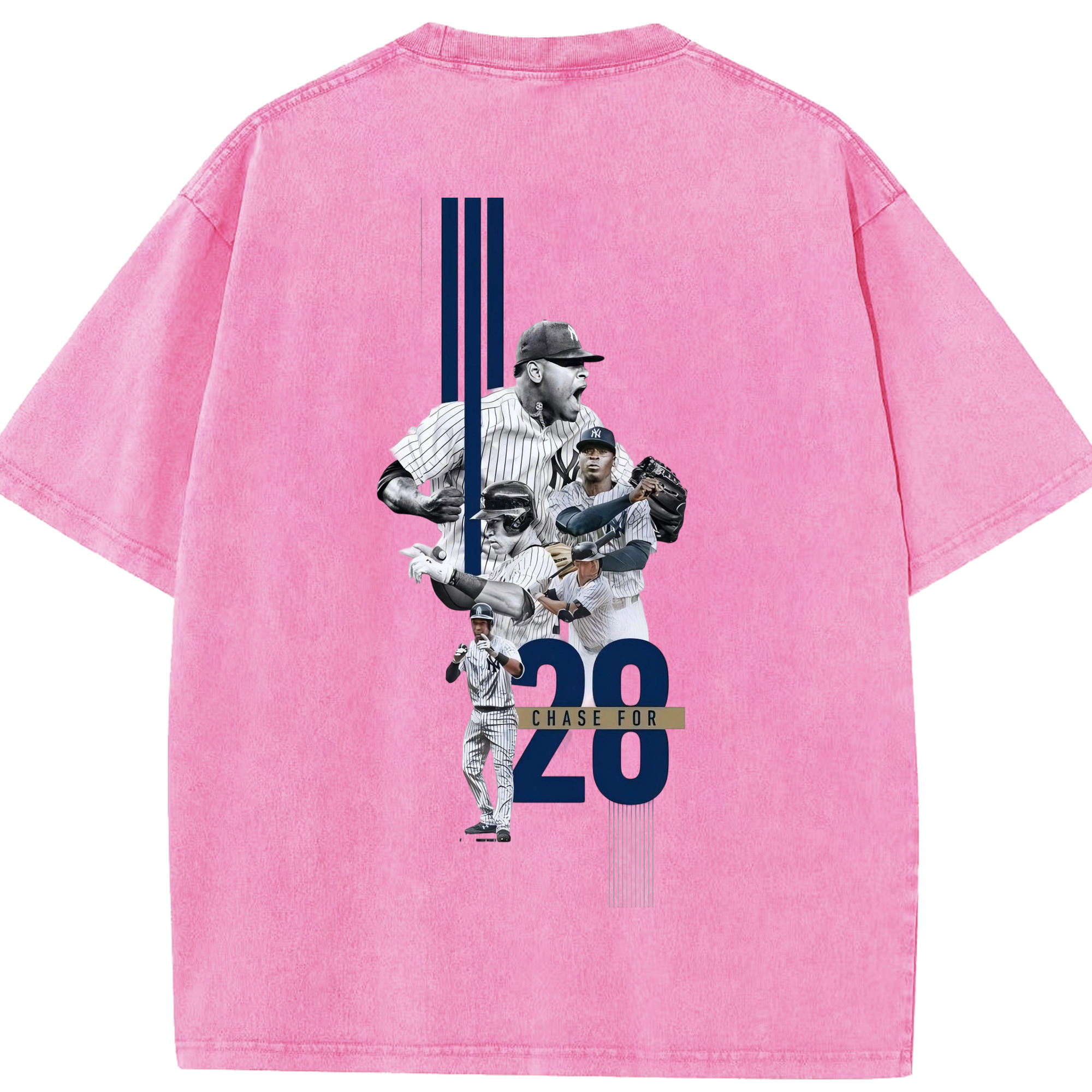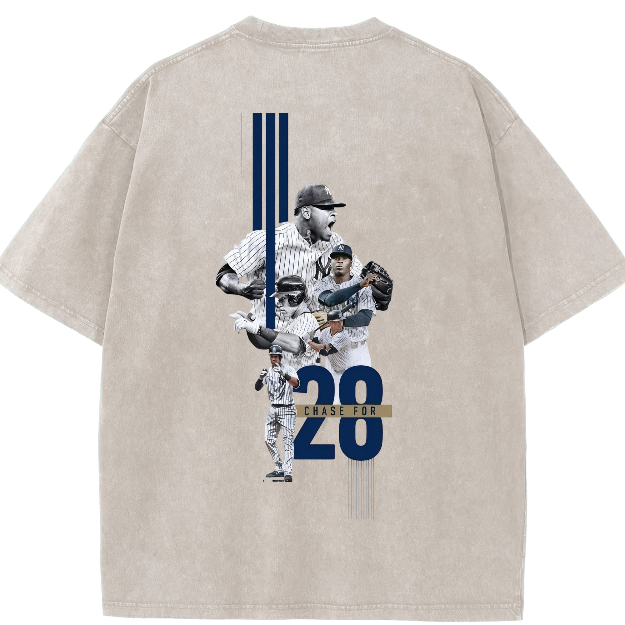 New York Yankees Chase For 28 Washed Vintage 230g Cotton Oversized T-Shirt With Back Heat Transfer Print – Soft, Lightweight & Stylish – Comfortable Casual Wear For Sports & Everyday Use