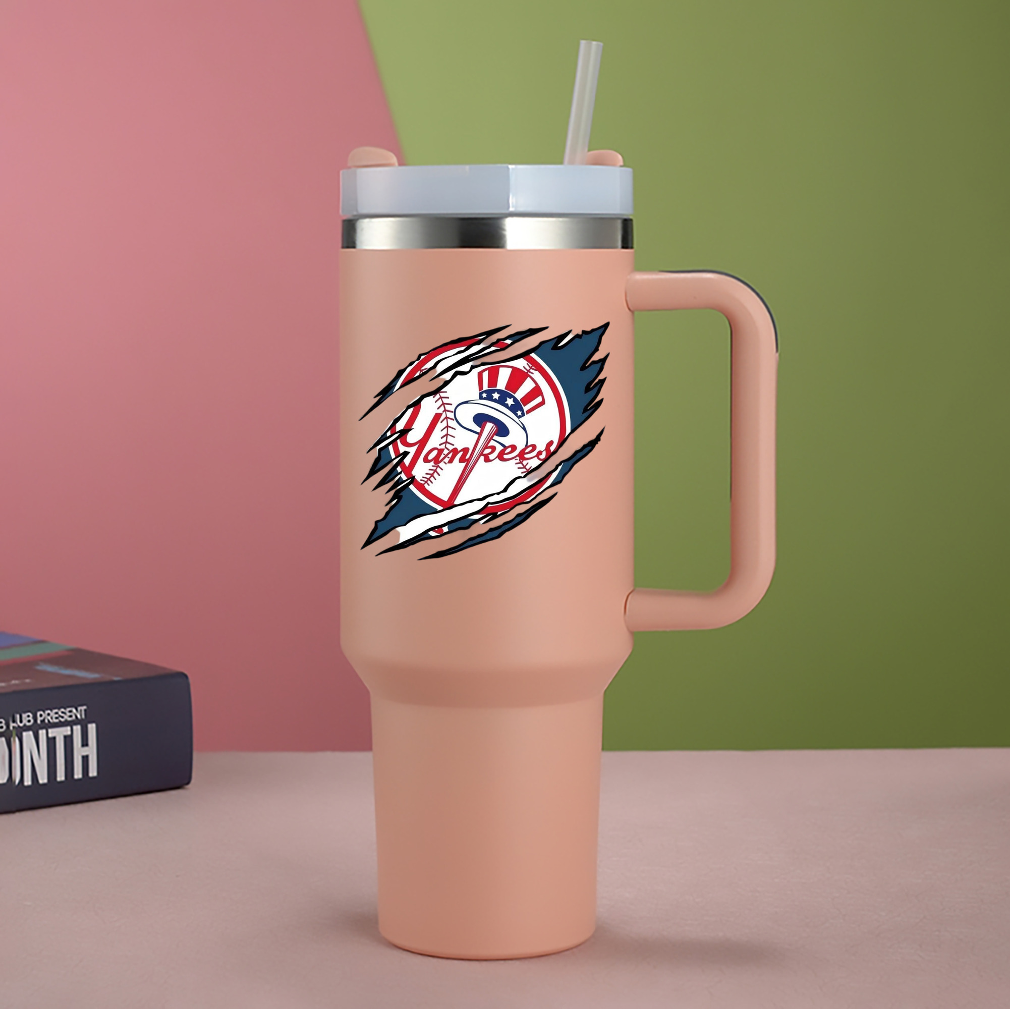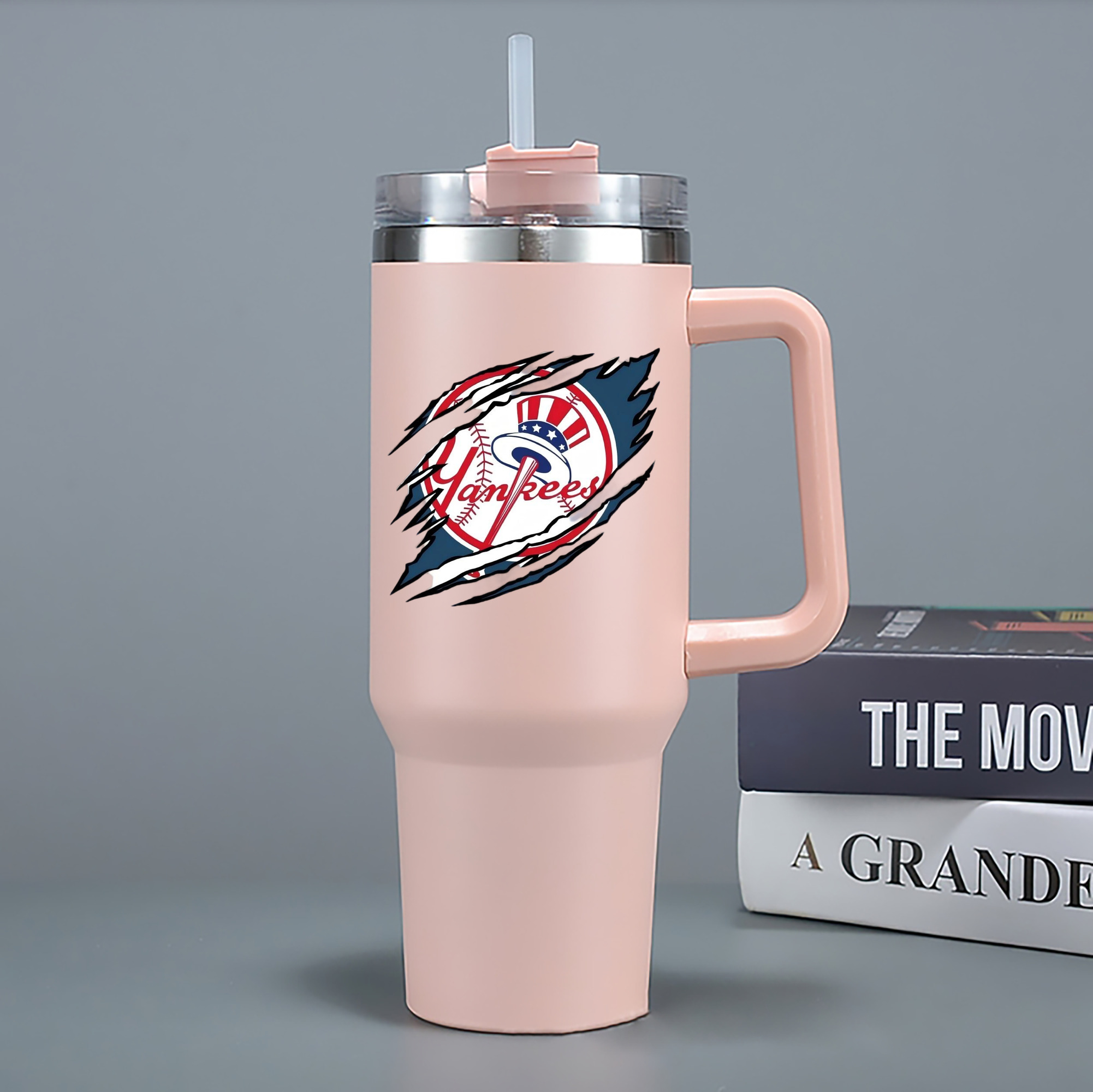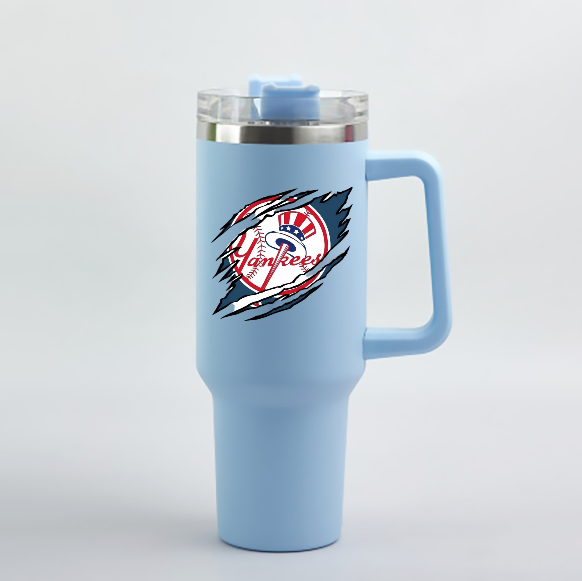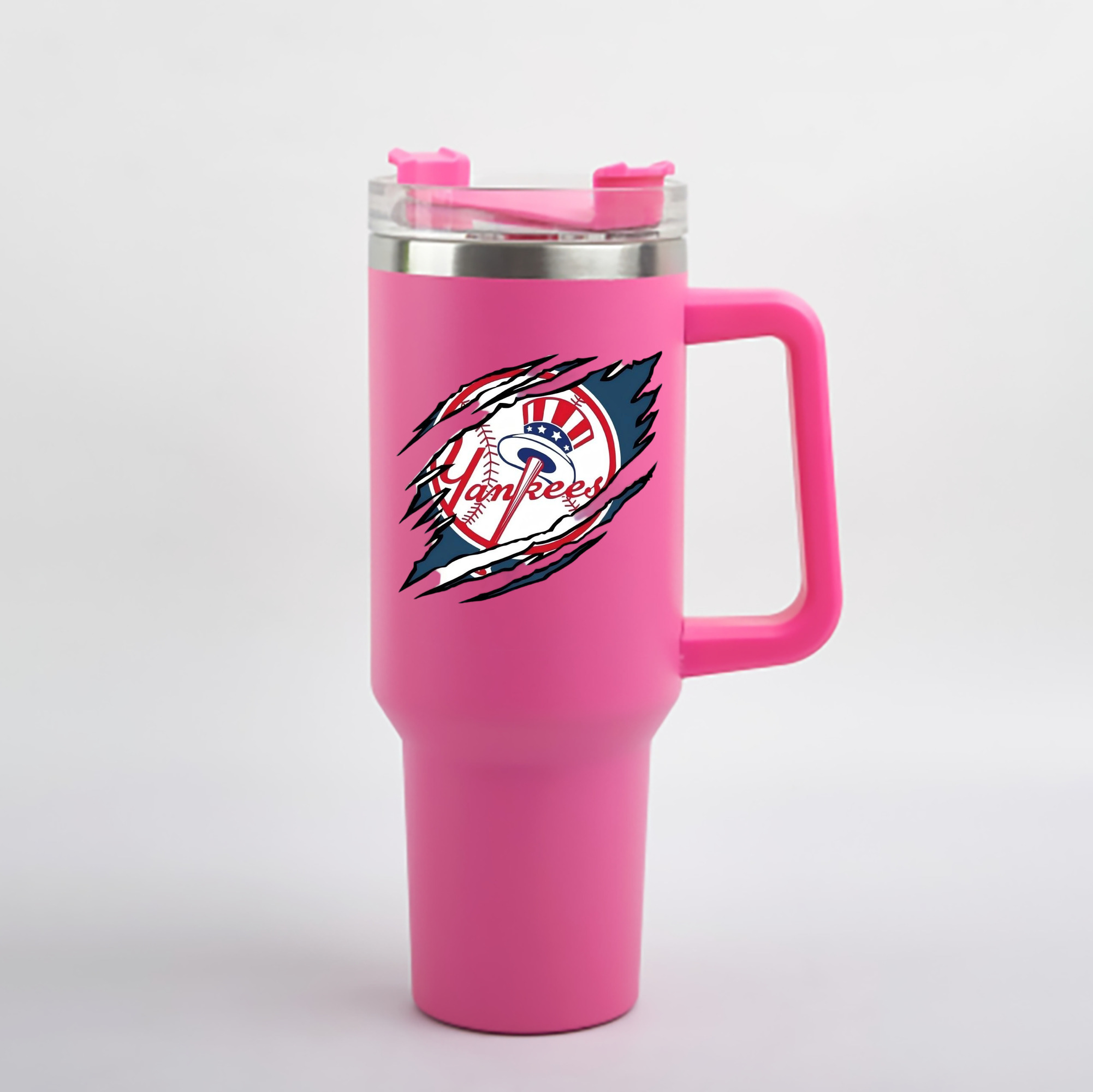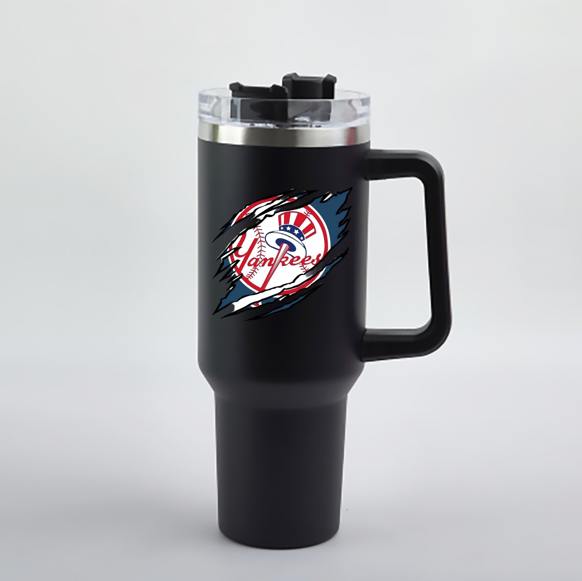 A generic imageNew York Yankees Claw Logo 40oz Handle Car Cup With Crystal Sticker Design – Durable Stainless Steel Travel Mug With Reusable Straw – Double Wall InsulatedNew York Yankees Claw Logo 40oz Handle Car Cup With Crystal Sticker Design – Durable Stainless Steel Travel Mug With Reusable Straw – Double Wall Insulated