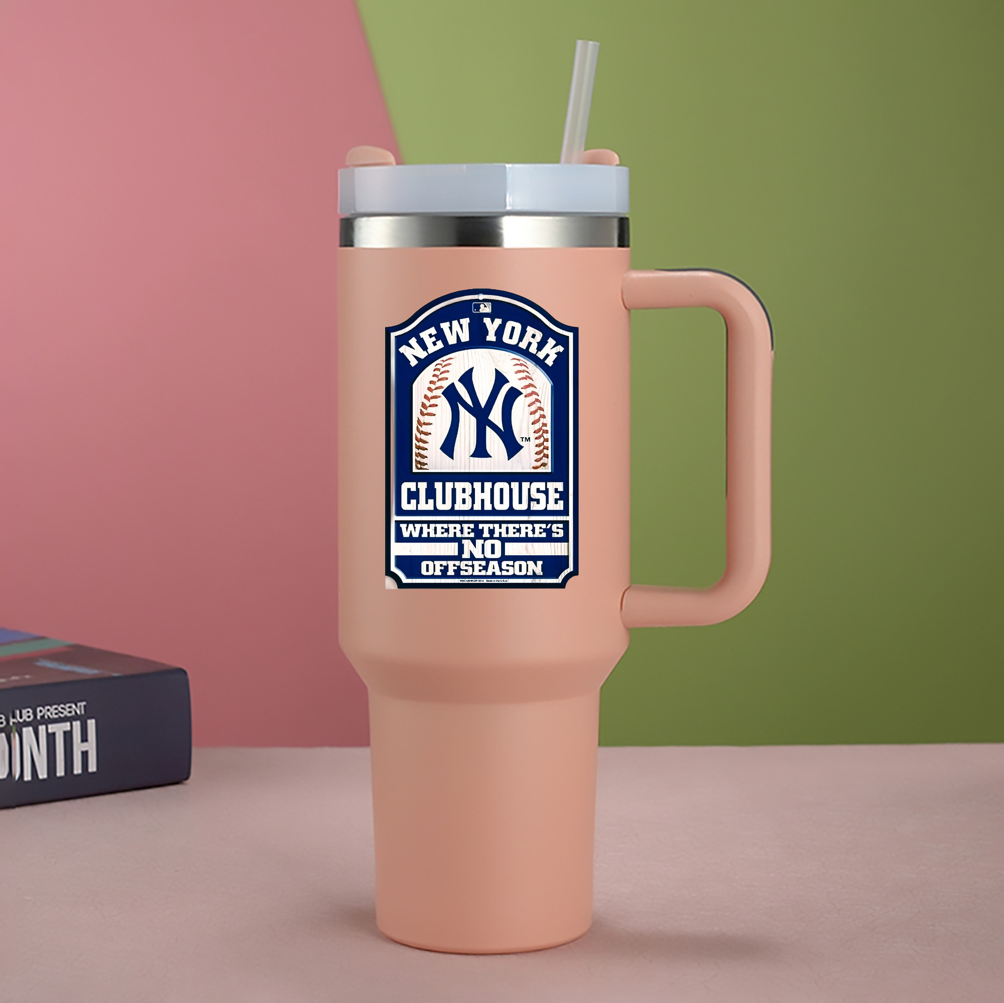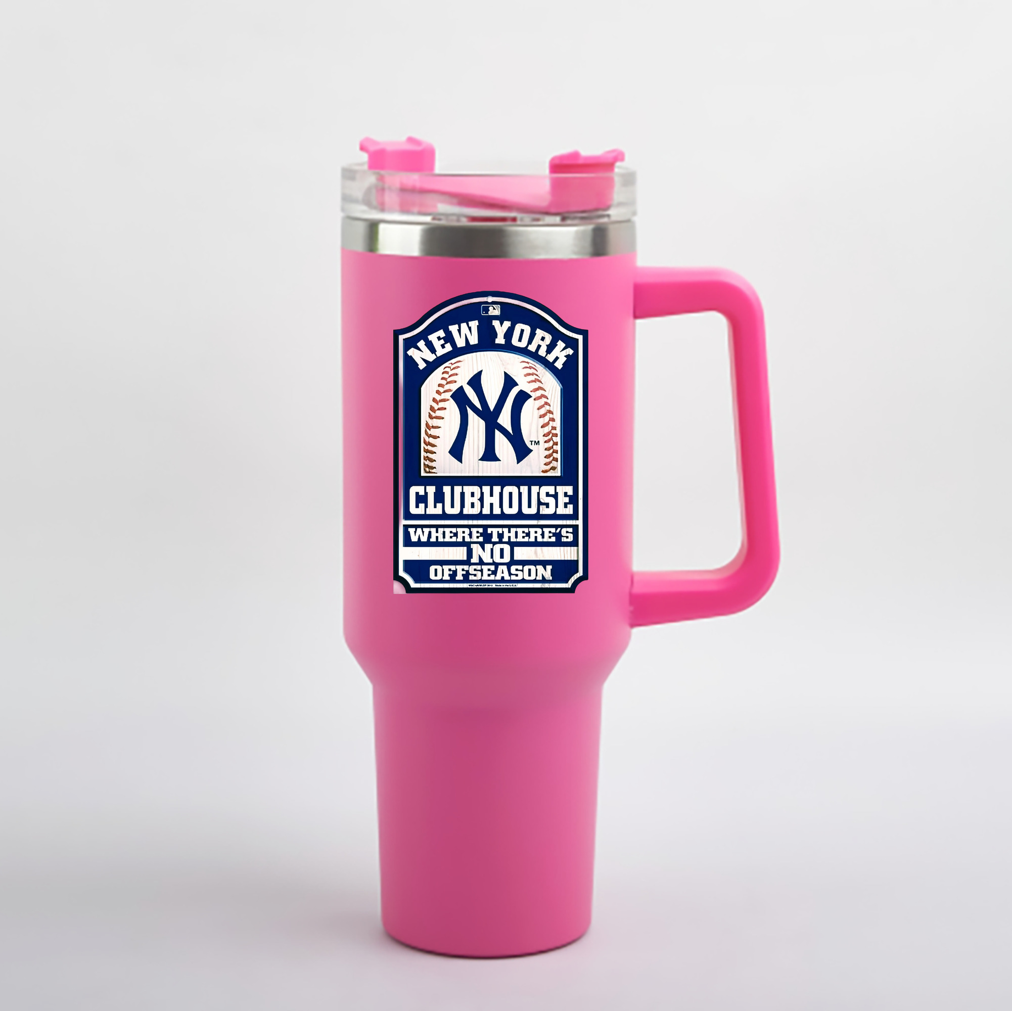New York Yankees Club House 40oz Handle Car Cup With Crystal Sticker Design – Durable Stainless Steel Travel Mug With Reusable Straw – Double Wall Insulated