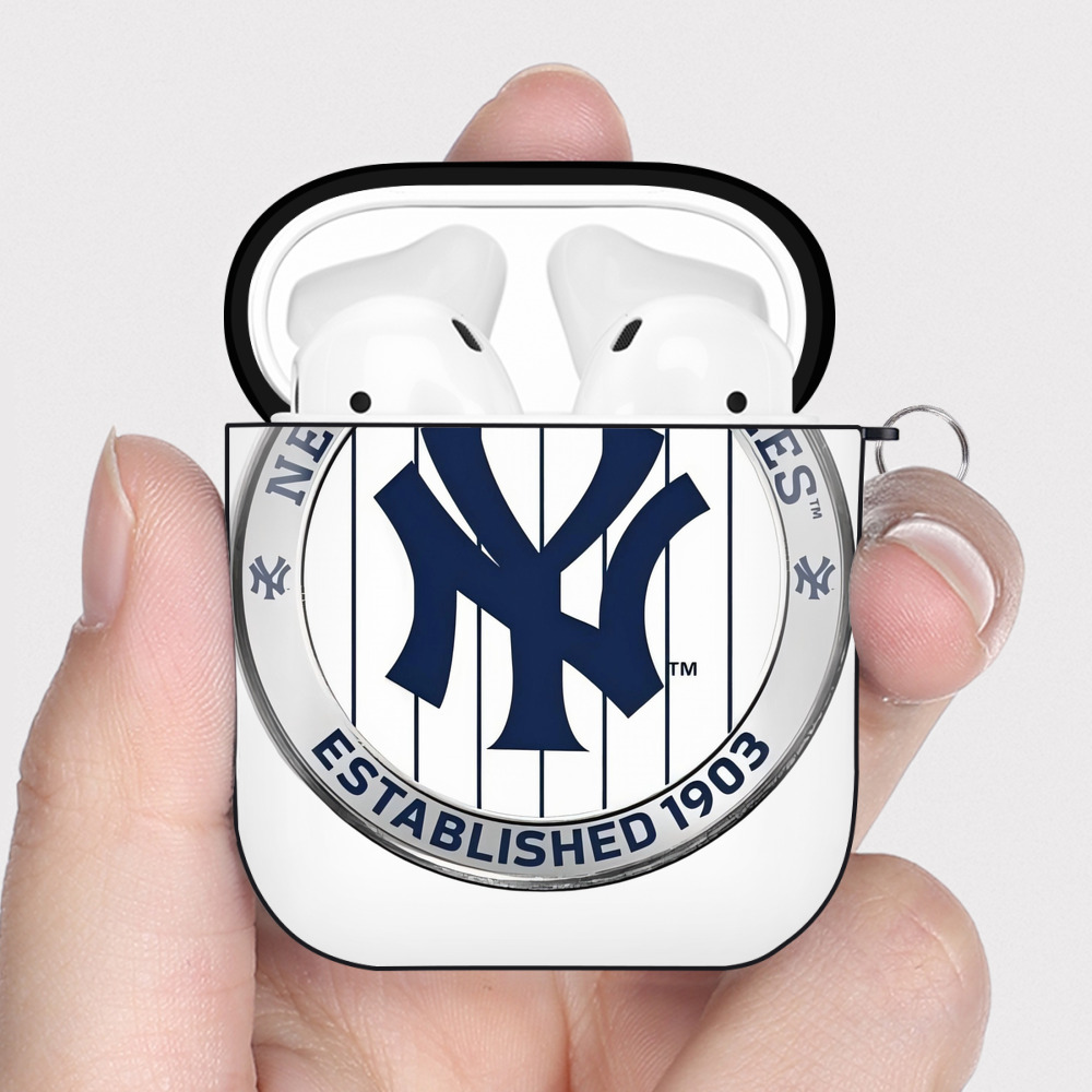 New York Yankees Established 1903 AirPods 2 Case Hard Shell Black, Flexible PC Material, Precise Cutouts, Full Protection, Anti-Fingerprint, Washable, Includes Keychain – Durable & Slim Design