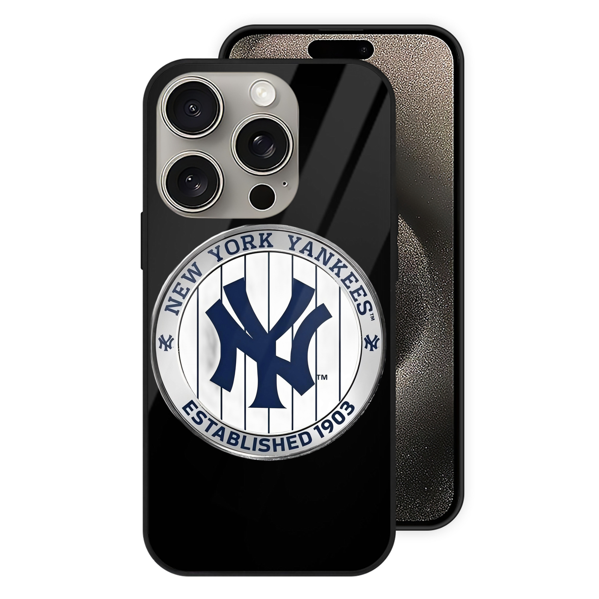 A generic imageNew York Yankees Established 1903 IPhone 15 Pro Mirror Phone Case – UV Printed Glass + TPU – Scratch-Resistant, Wireless Charging Compatible, Precise Fit & Stylish DesignNew York Yankees Established 1903 IPhone 15 Pro Mirror Phone Case – UV Printed Glass + TPU – Scratch-Resistant, Wireless Charging Compatible, Precise Fit & Stylish Design