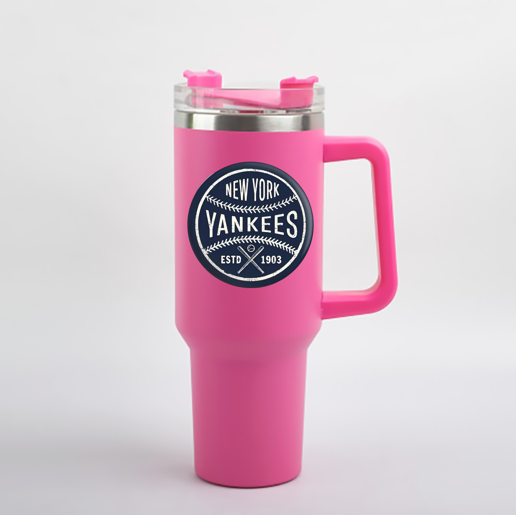 New York Yankees Estd 1903 40oz Handle Car Cup With Crystal Sticker Design – Durable Stainless Steel Travel Mug With Reusable Straw – Double Wall Insulated