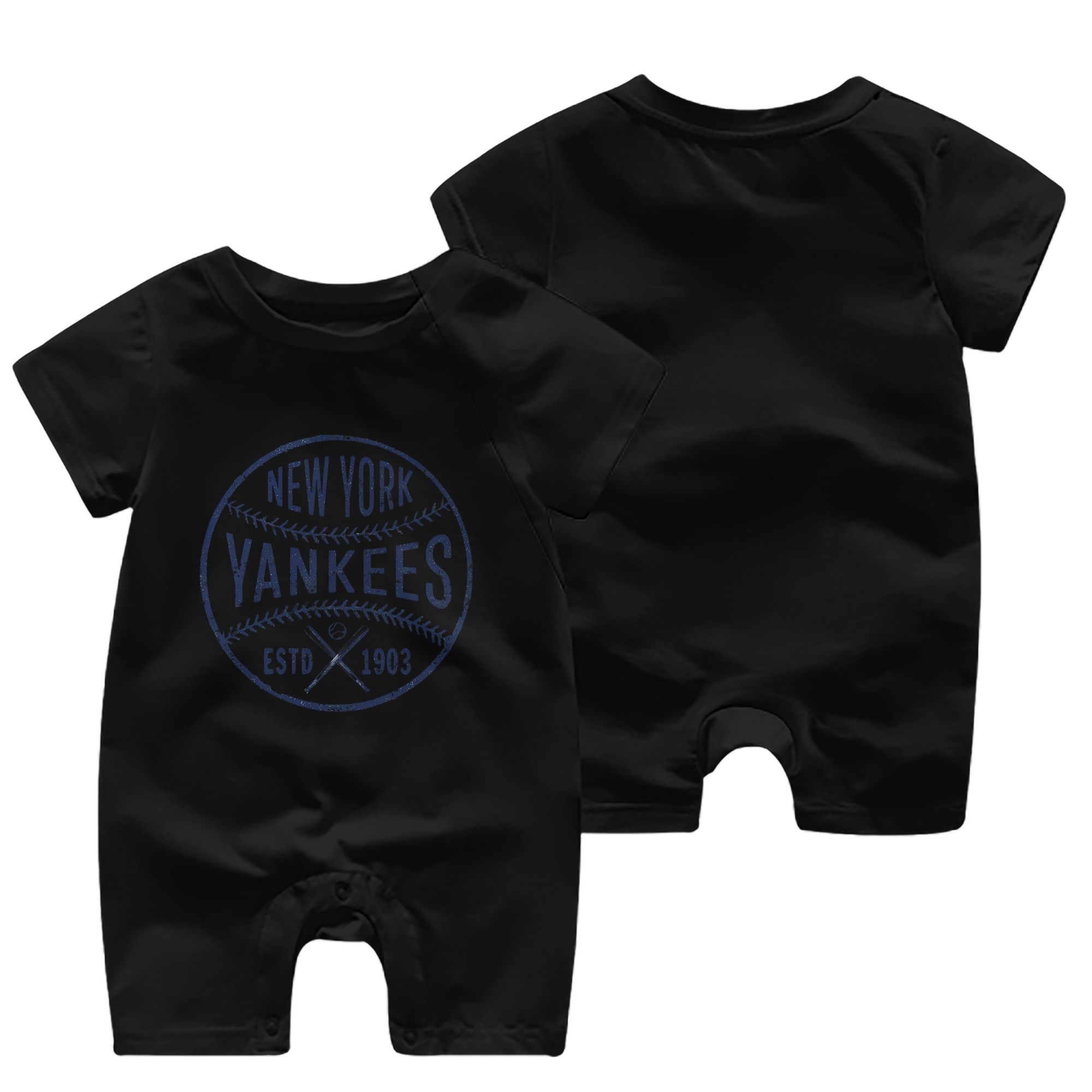 New York Yankees Estd 1903 Baby Short Sleeve Onesie – 100% Cotton Soft & Breathable Digital Print Romper – Double-Sided Print, Snap Closure For Easy Diaper Changes – Comfortable For Boys & Girls