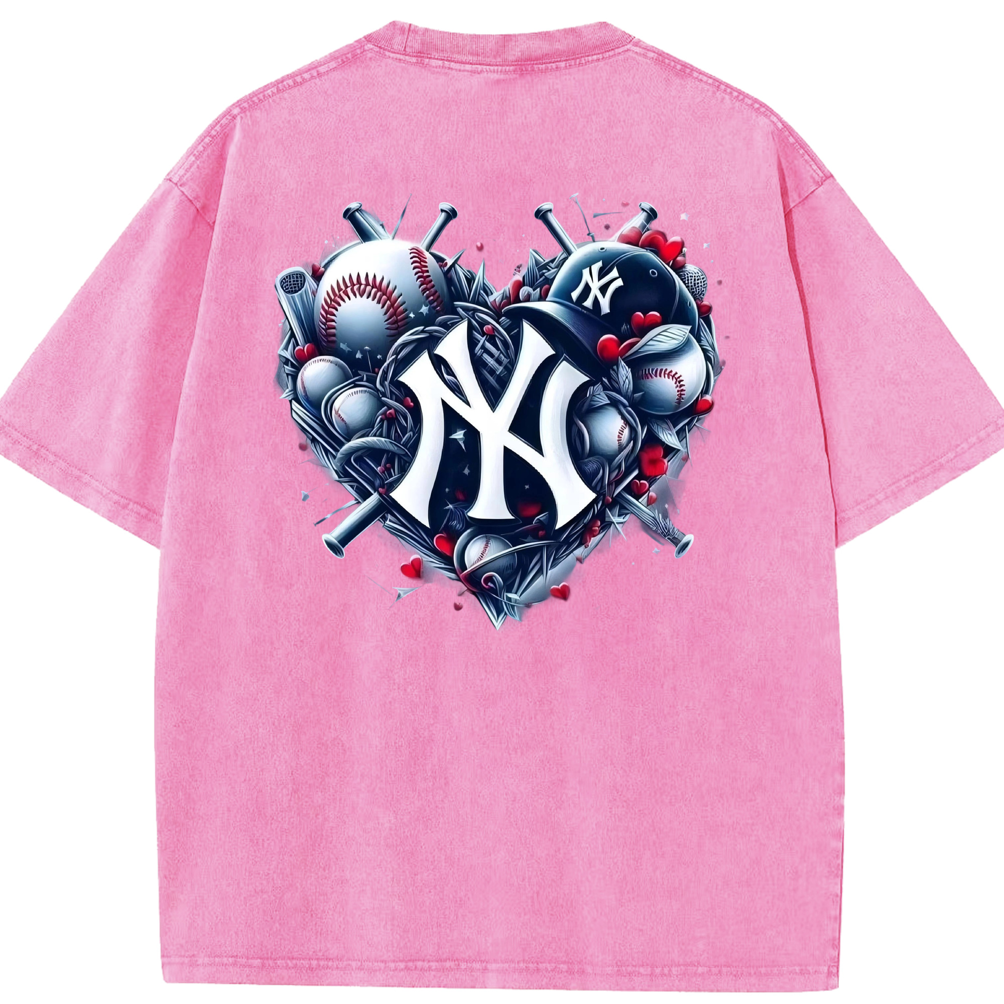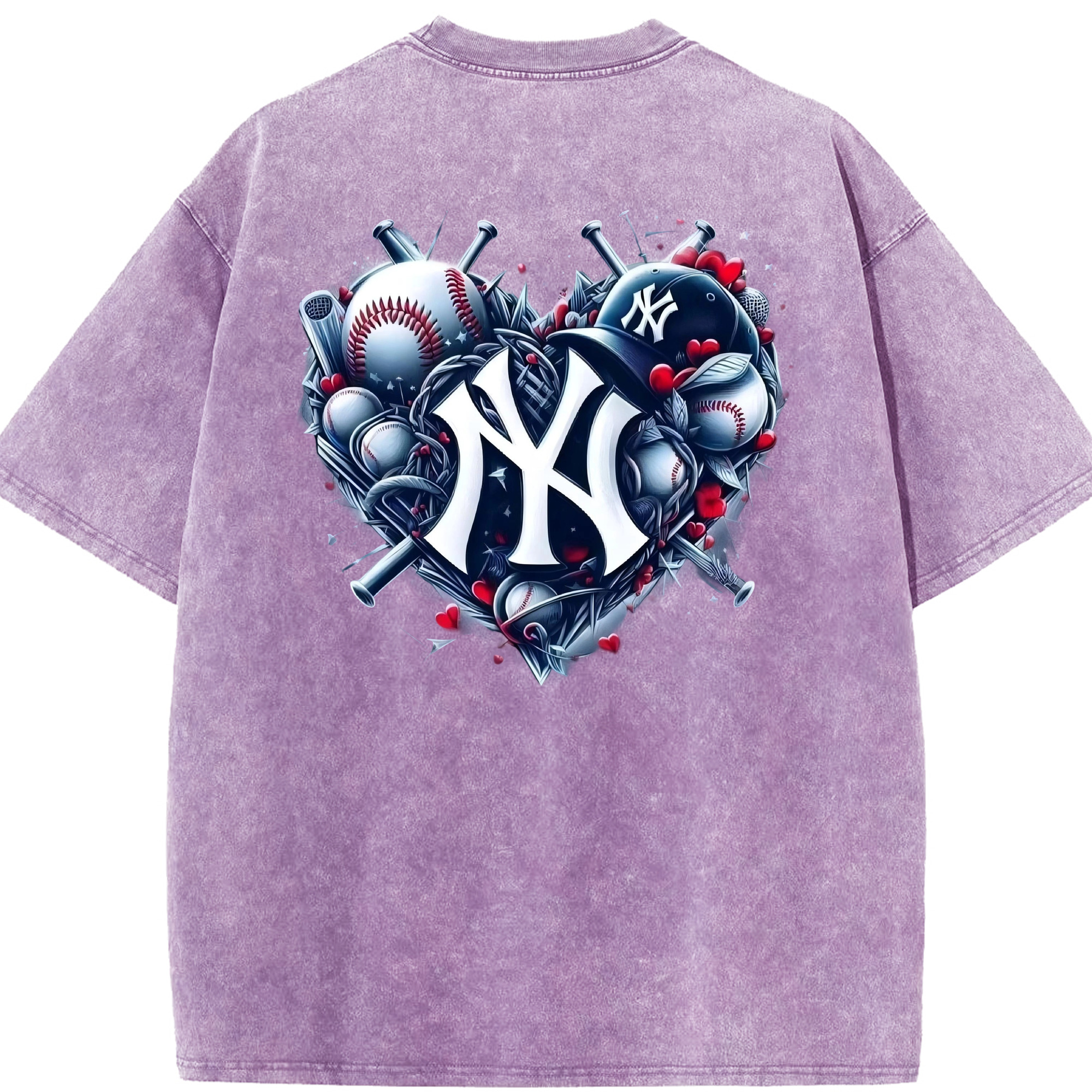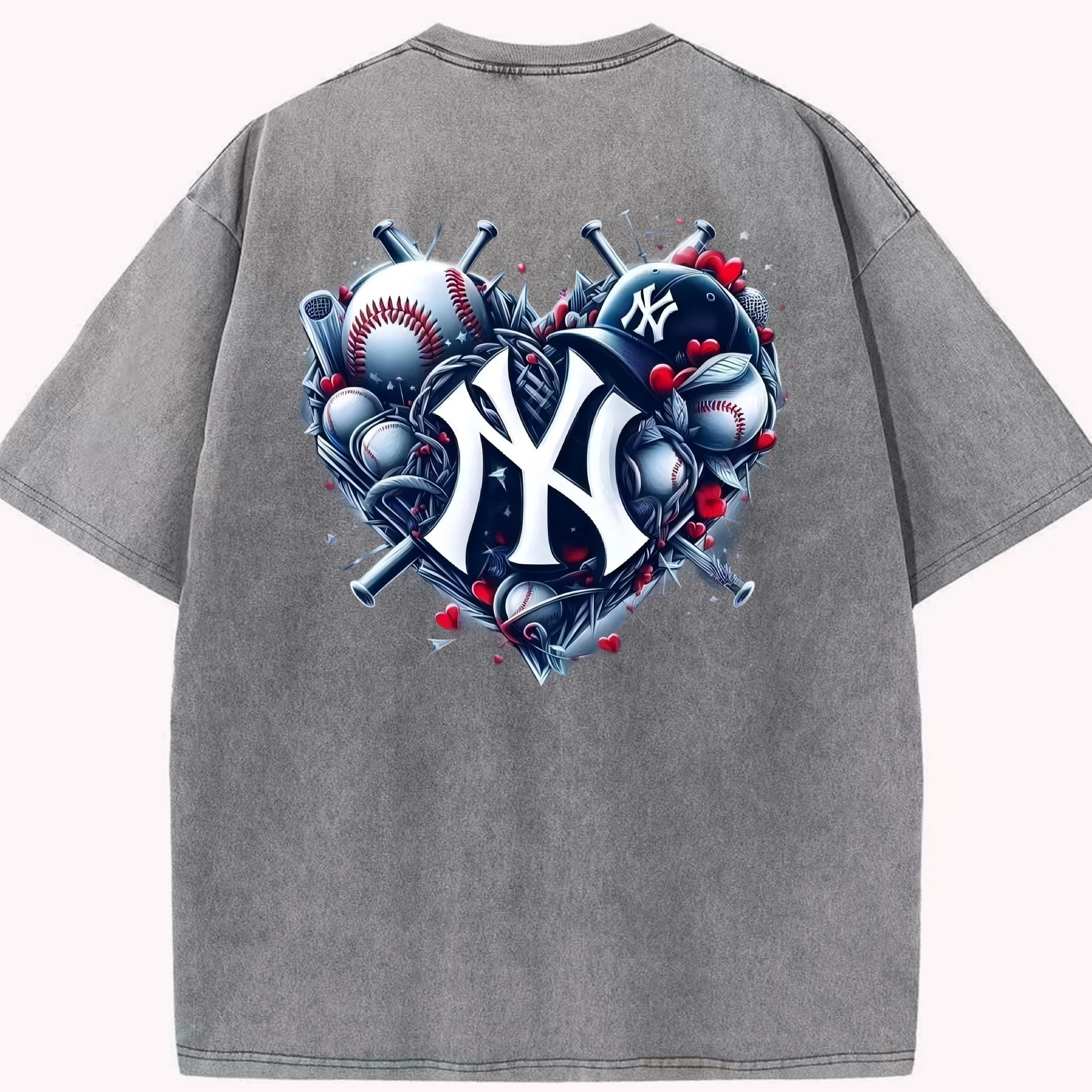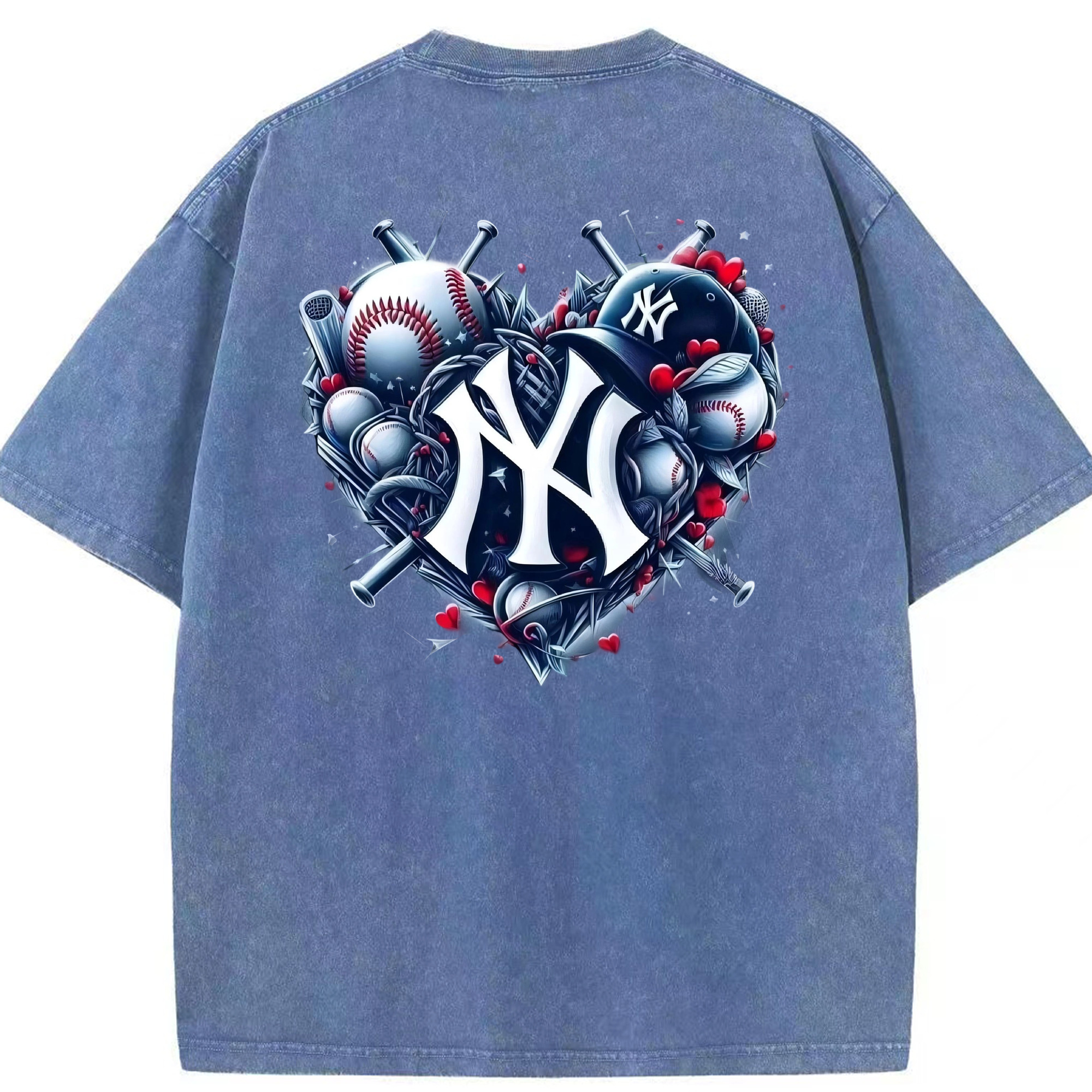 New York Yankees Heart Washed Vintage 230g Cotton Oversized T-Shirt With Back Heat Transfer Print – Soft, Lightweight & Stylish – Comfortable Casual Wear For Sports & Everyday Use