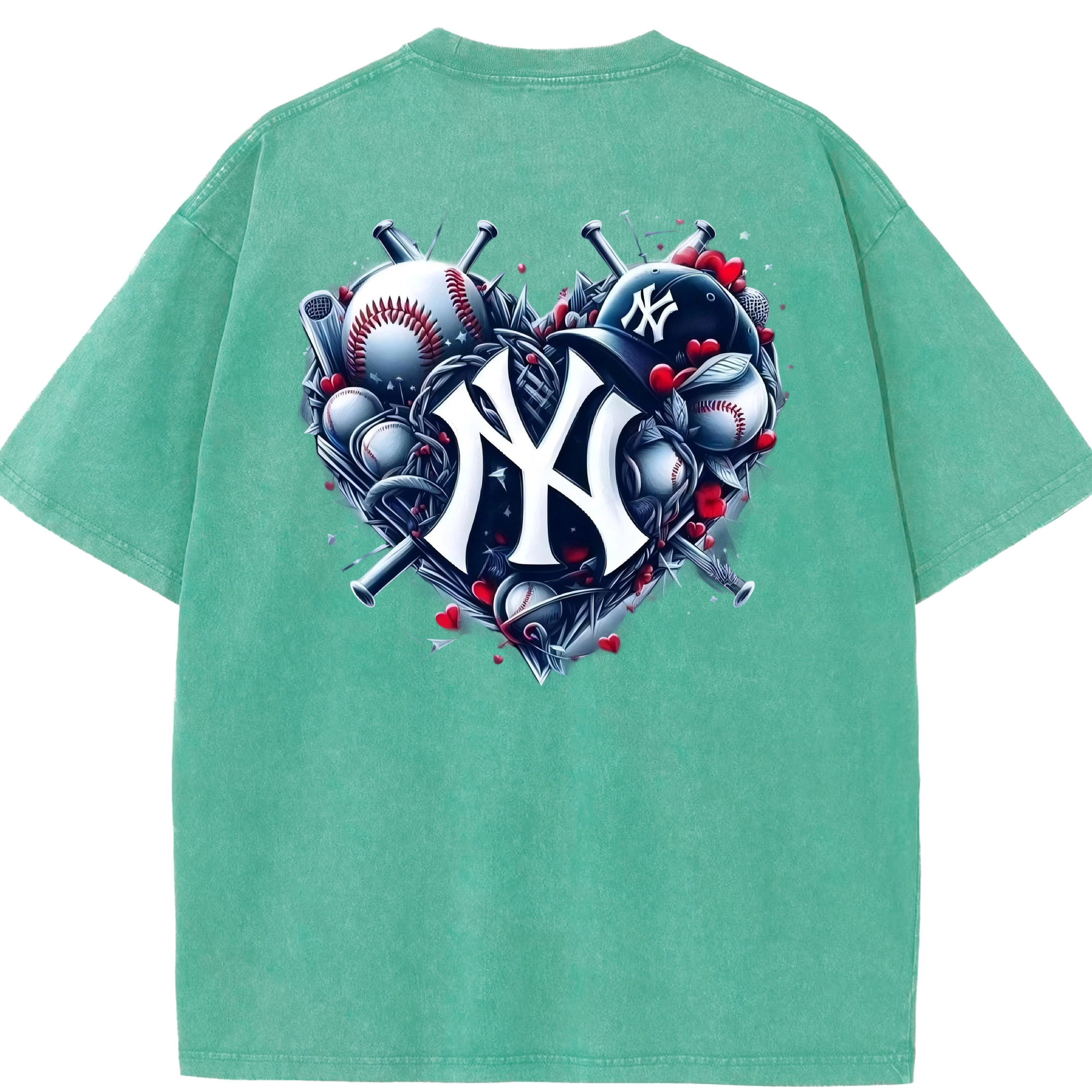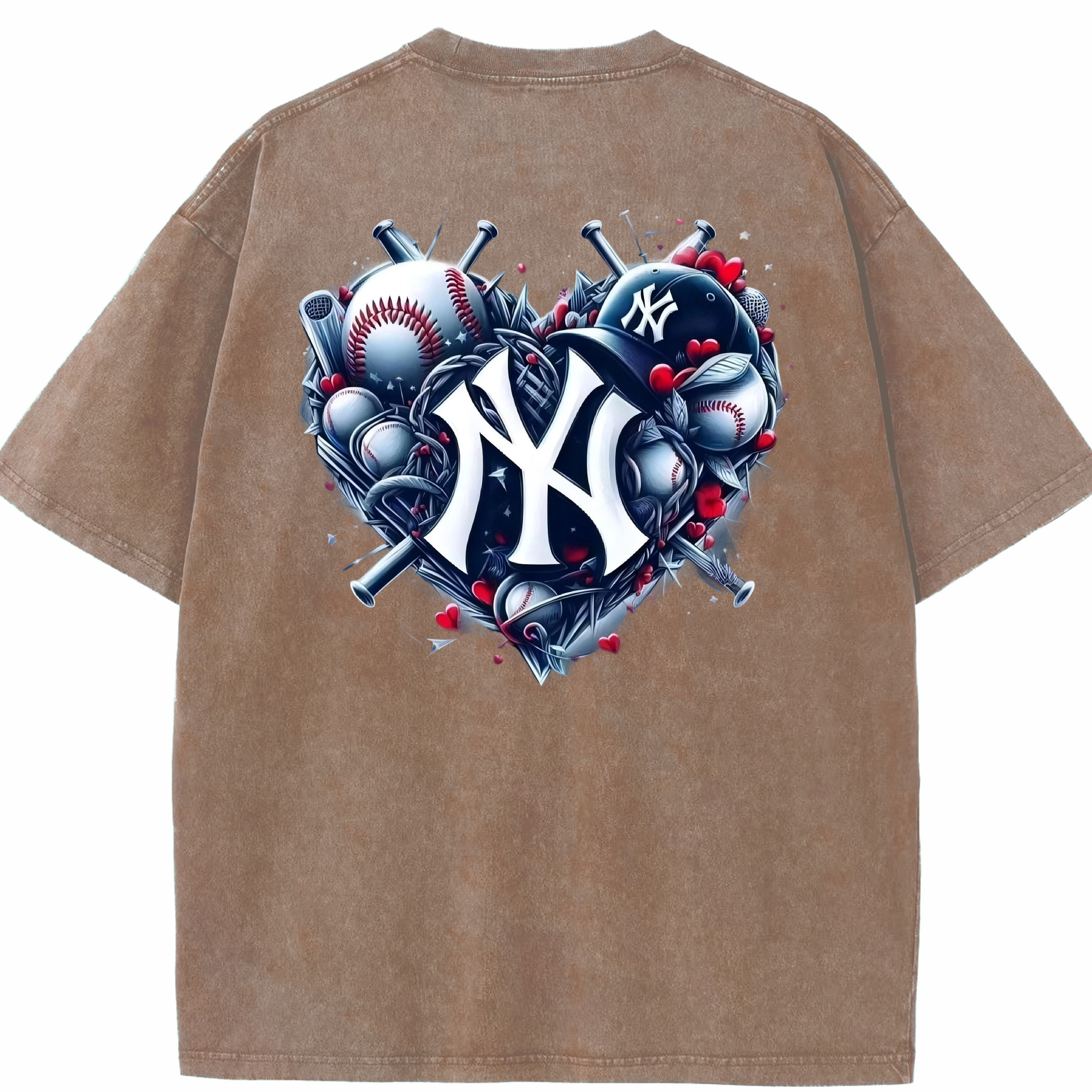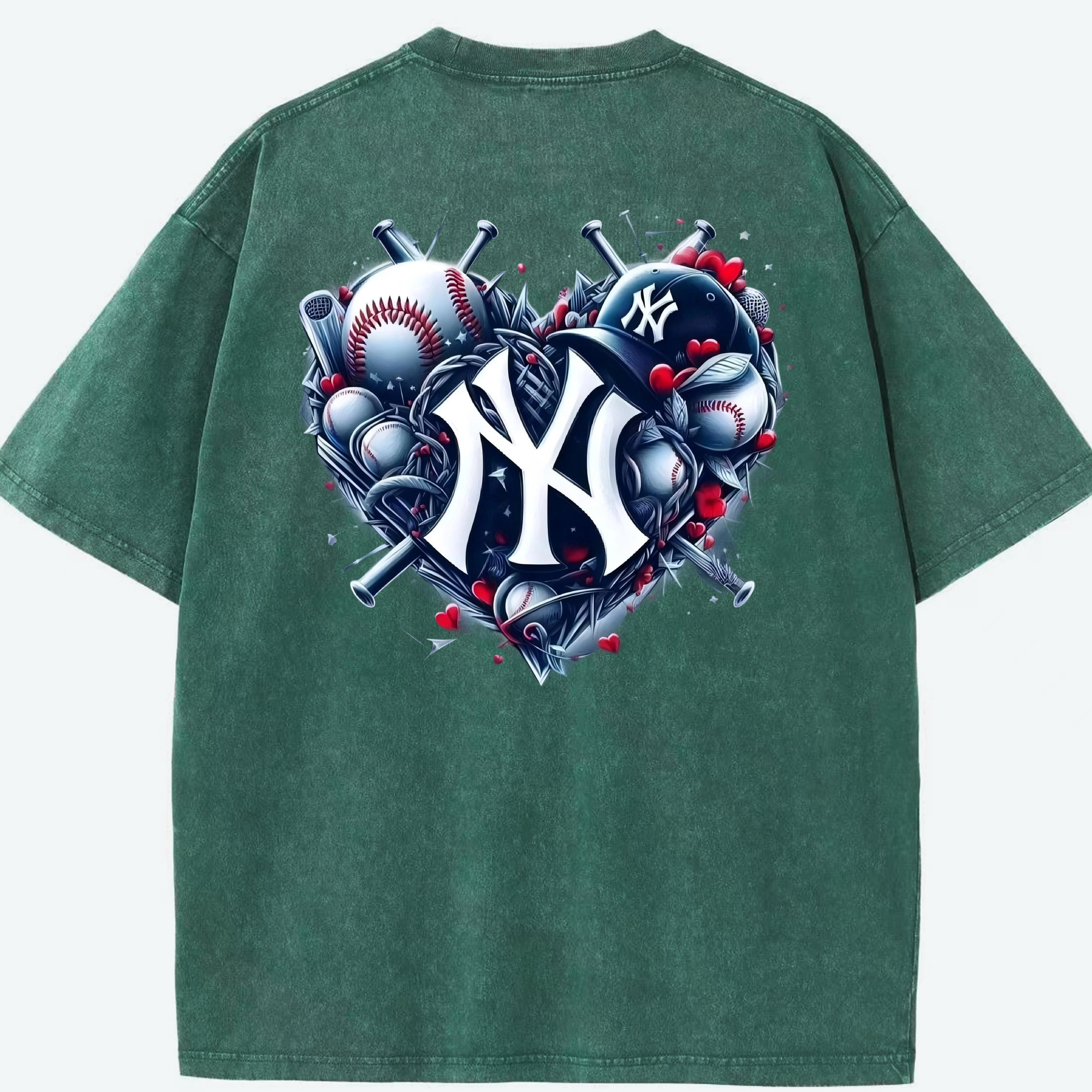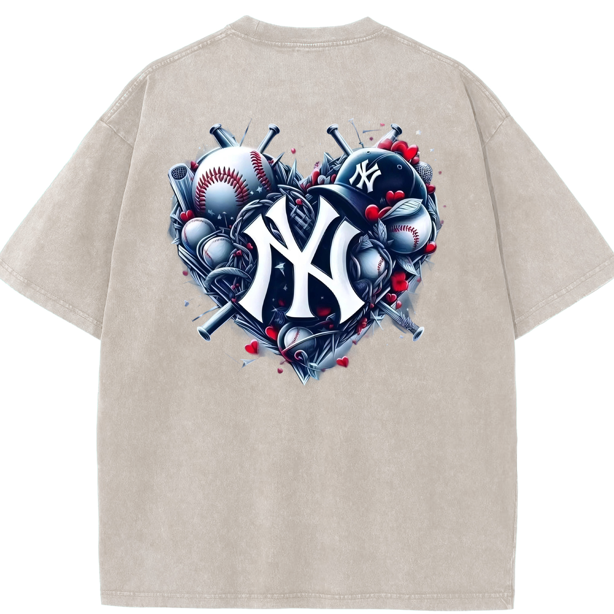 New York Yankees Heart Washed Vintage 230g Cotton Oversized T-Shirt With Back Heat Transfer Print – Soft, Lightweight & Stylish – Comfortable Casual Wear For Sports & Everyday Use