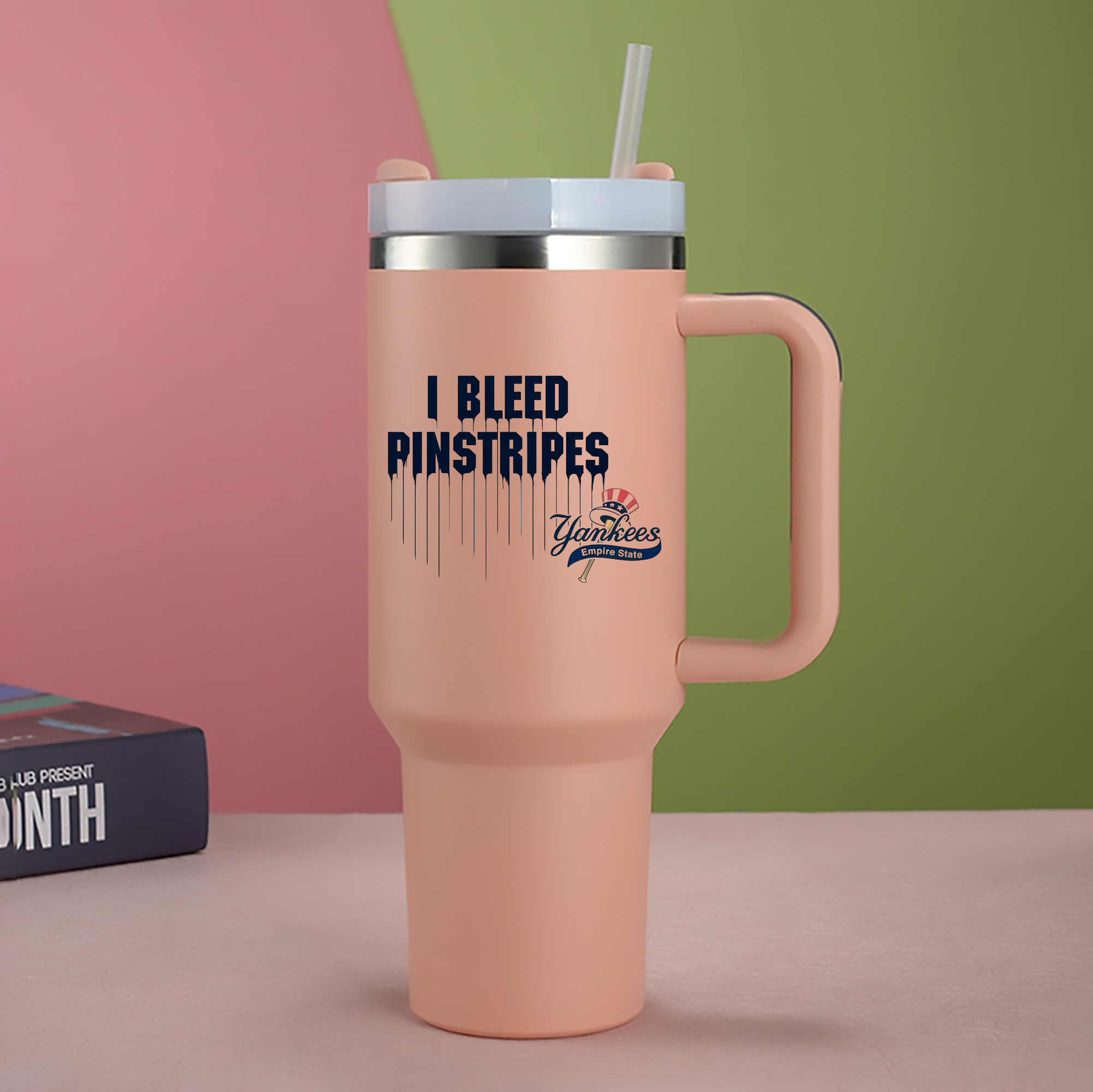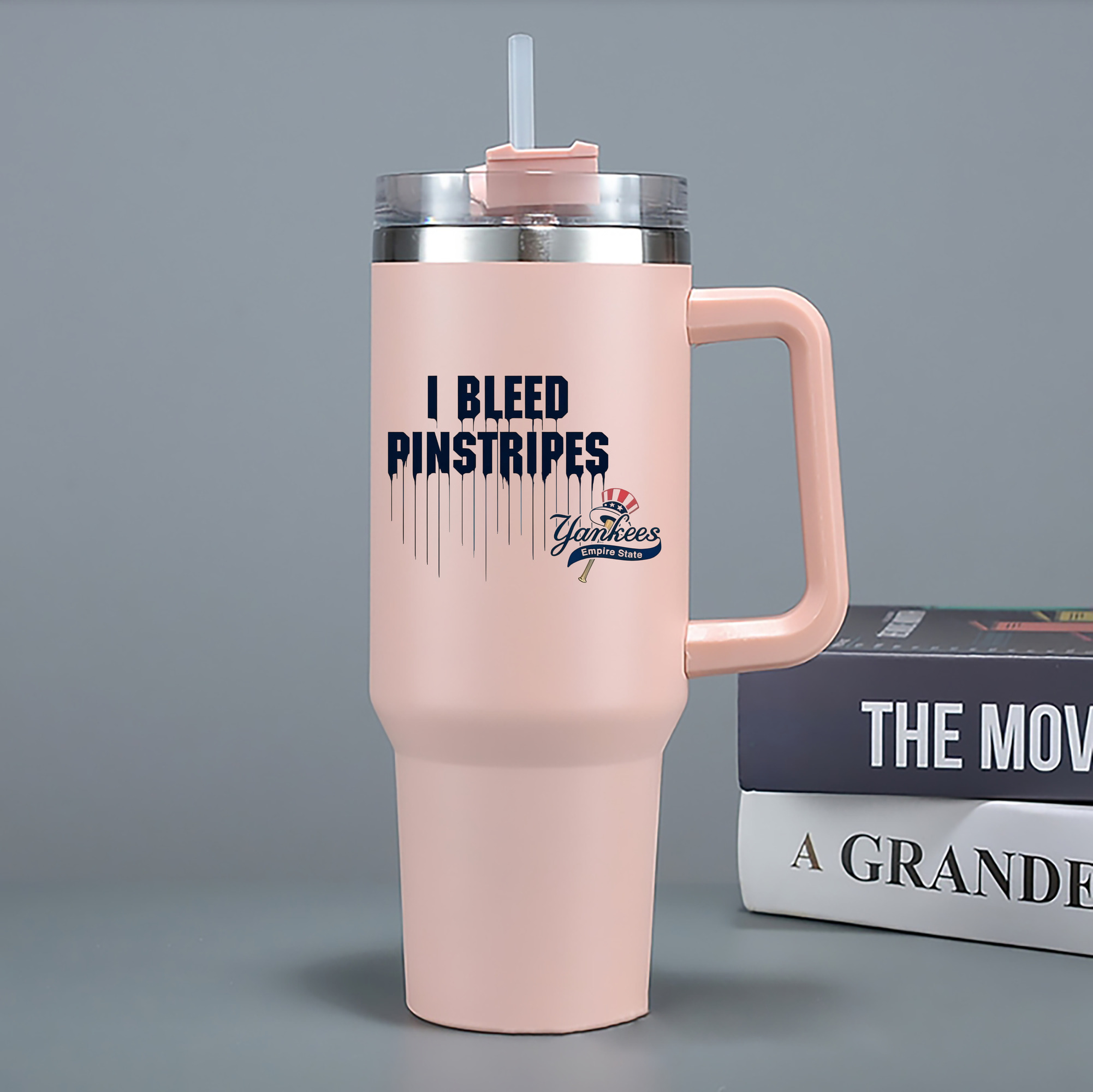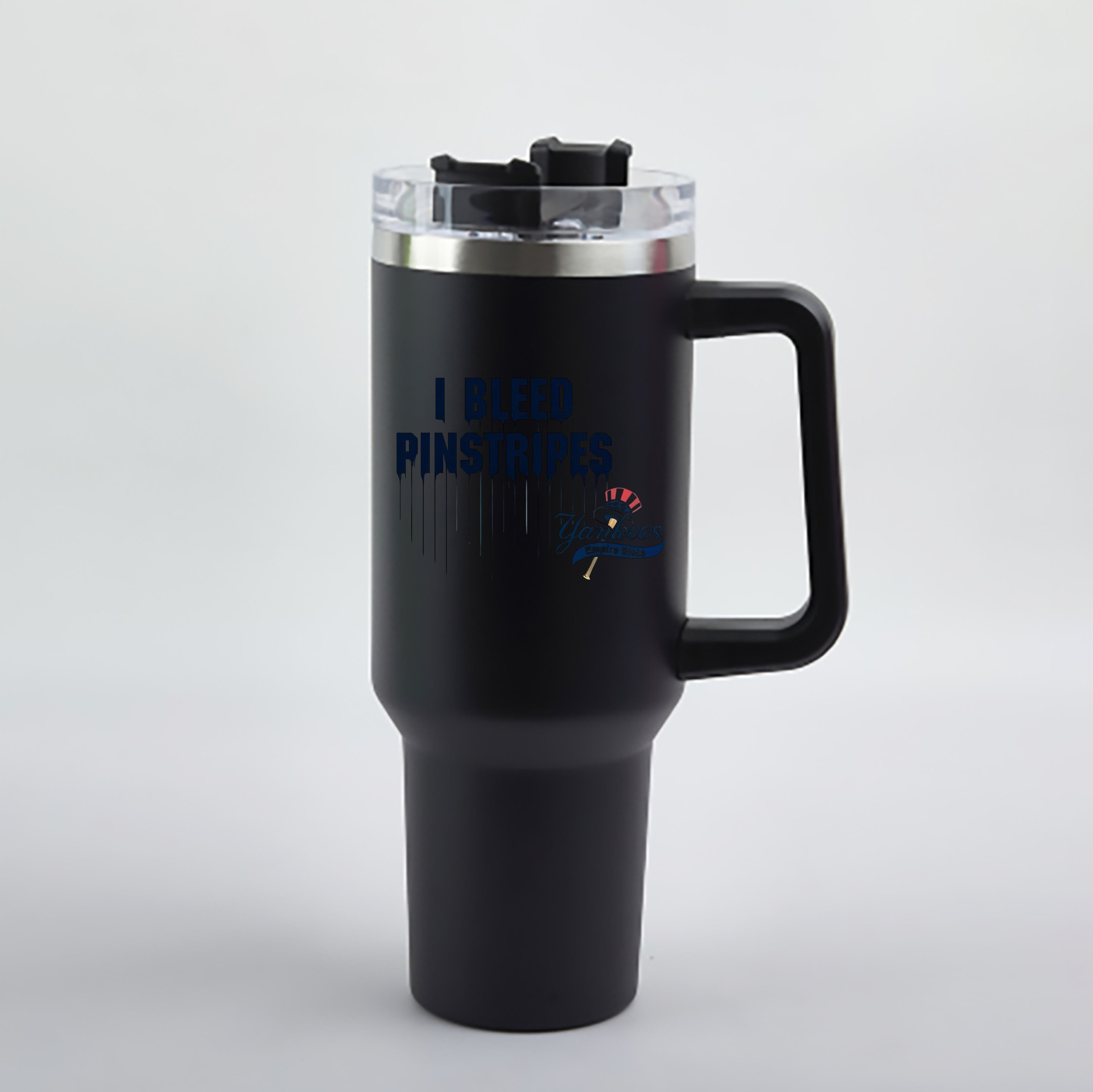 A generic imageNew York Yankees I Bleed Pinstripes 40oz Handle Car Cup With Crystal Sticker Design – Durable Stainless Steel Travel Mug With Reusable Straw – Double Wall InsulatedNew York Yankees I Bleed Pinstripes 40oz Handle Car Cup With Crystal Sticker Design – Durable Stainless Steel Travel Mug With Reusable Straw – Double Wall Insulated