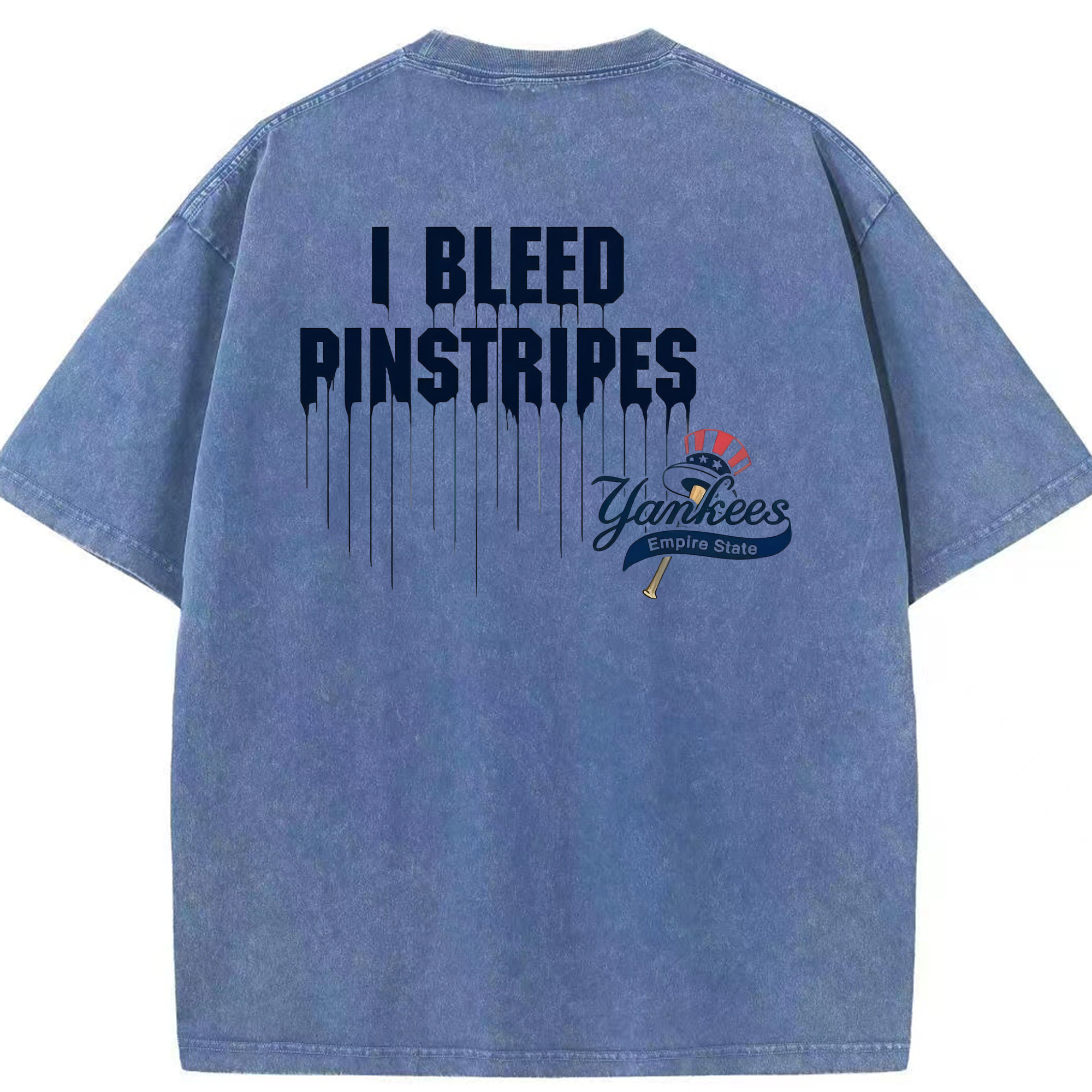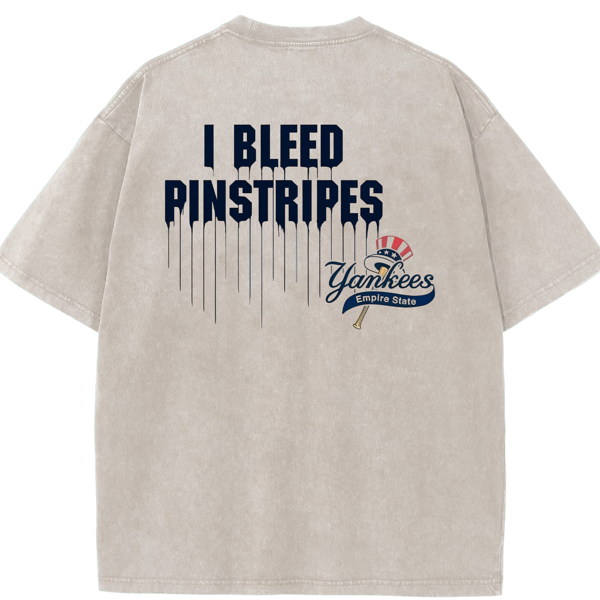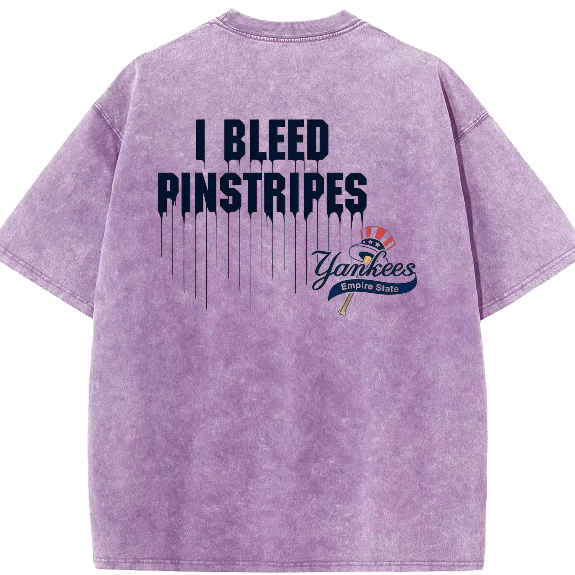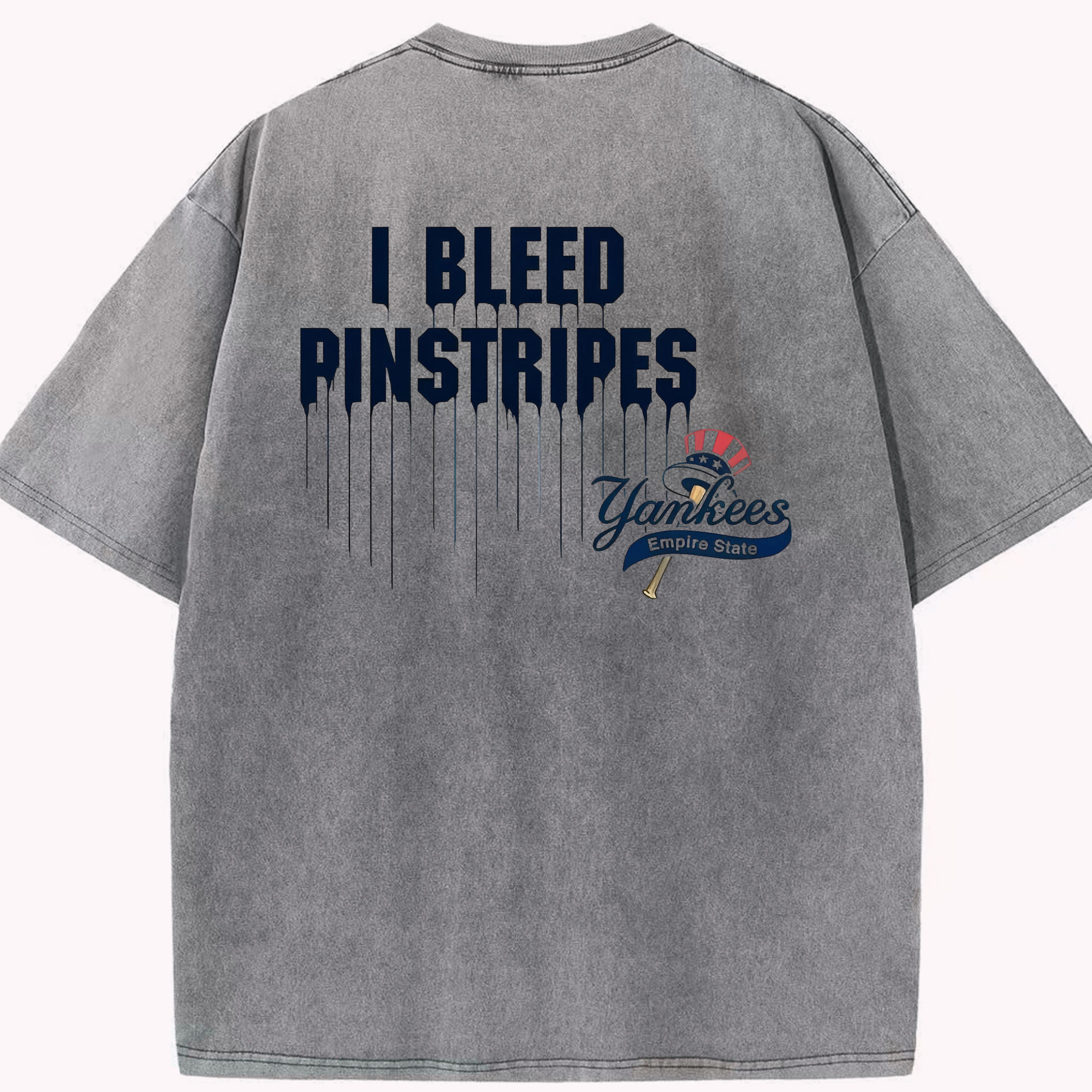 New York Yankees I Bleed Pinstripes Washed Vintage 230g Cotton Oversized T-Shirt With Back Heat Transfer Print – Soft, Lightweight & Stylish – Comfortable Casual Wear For Sports & Everyday Use