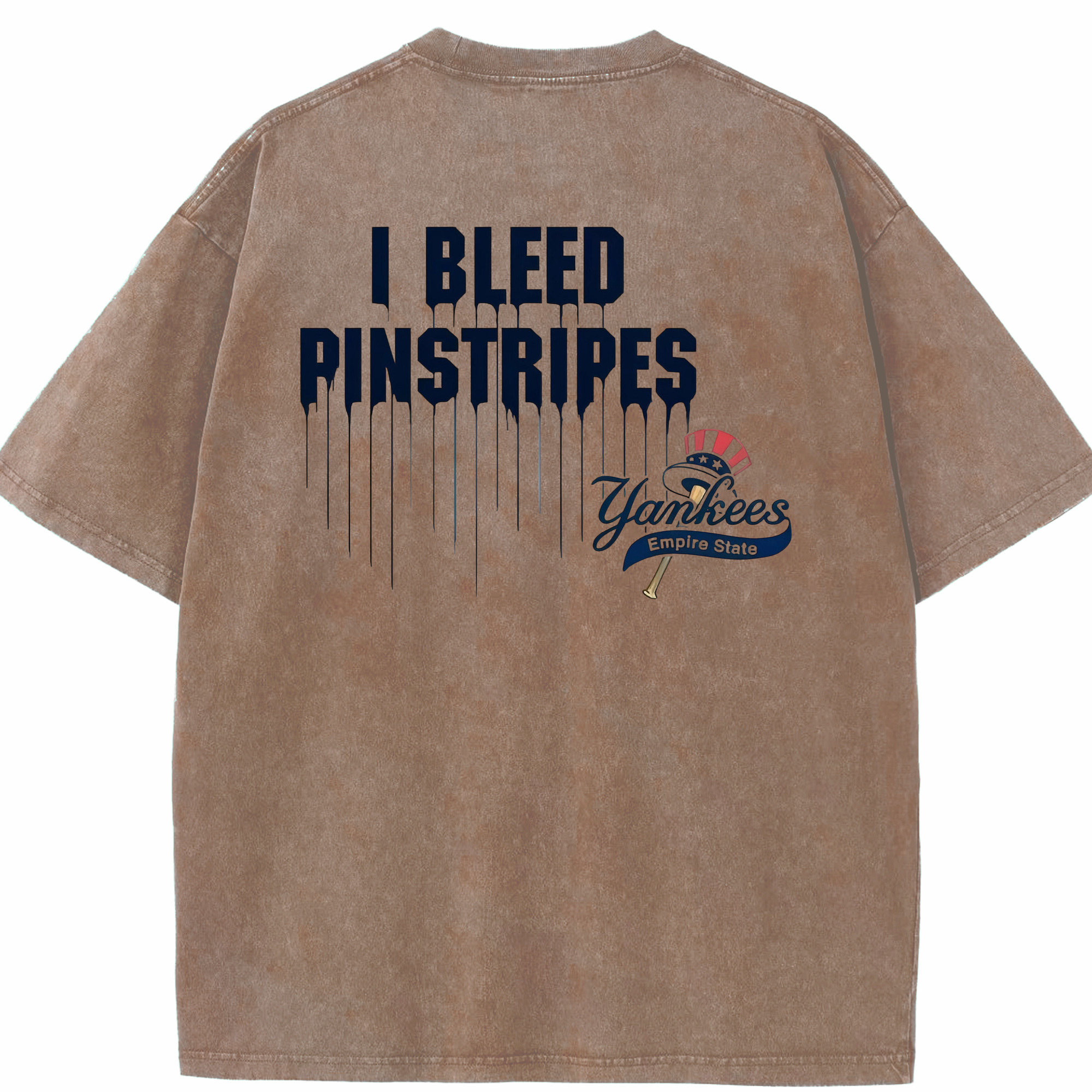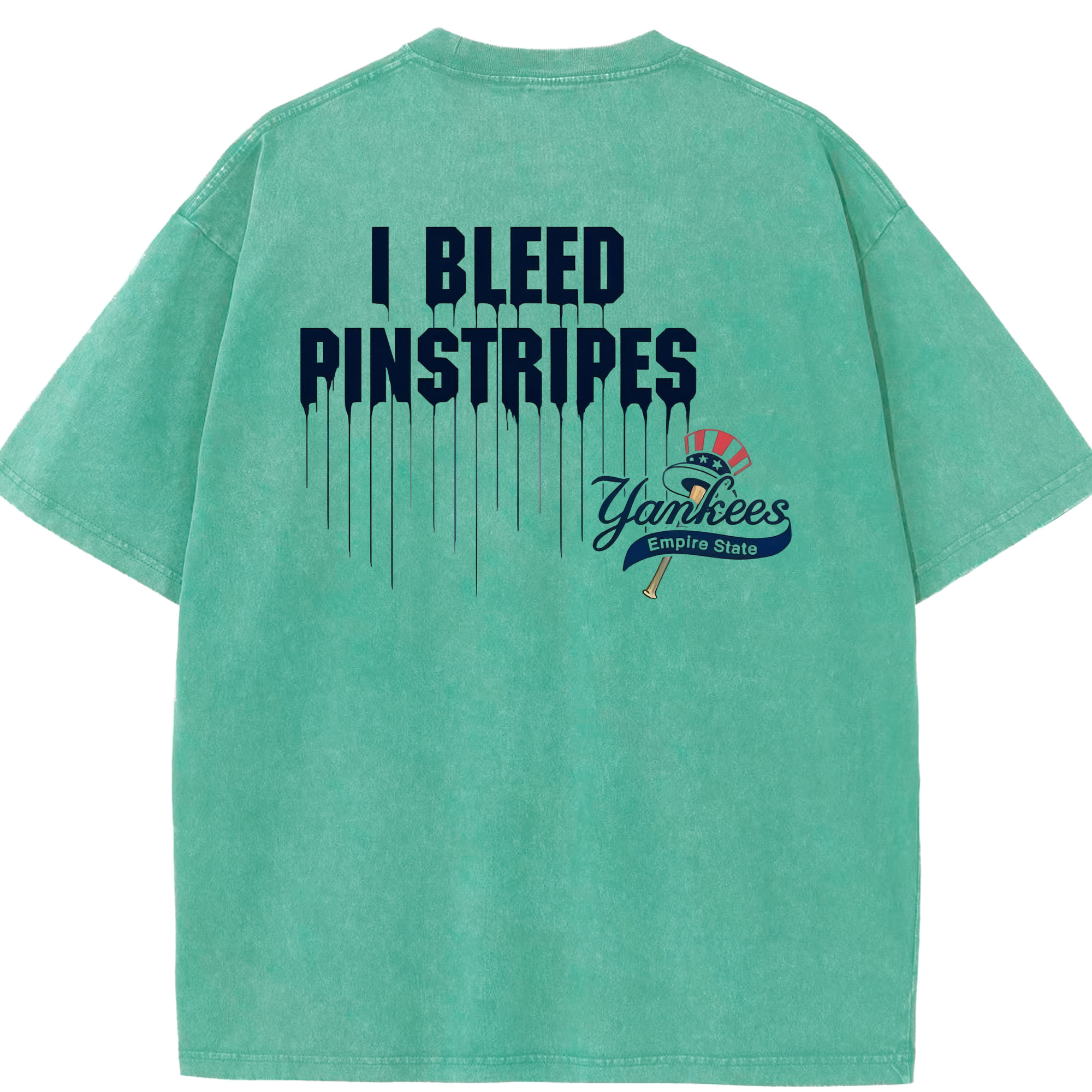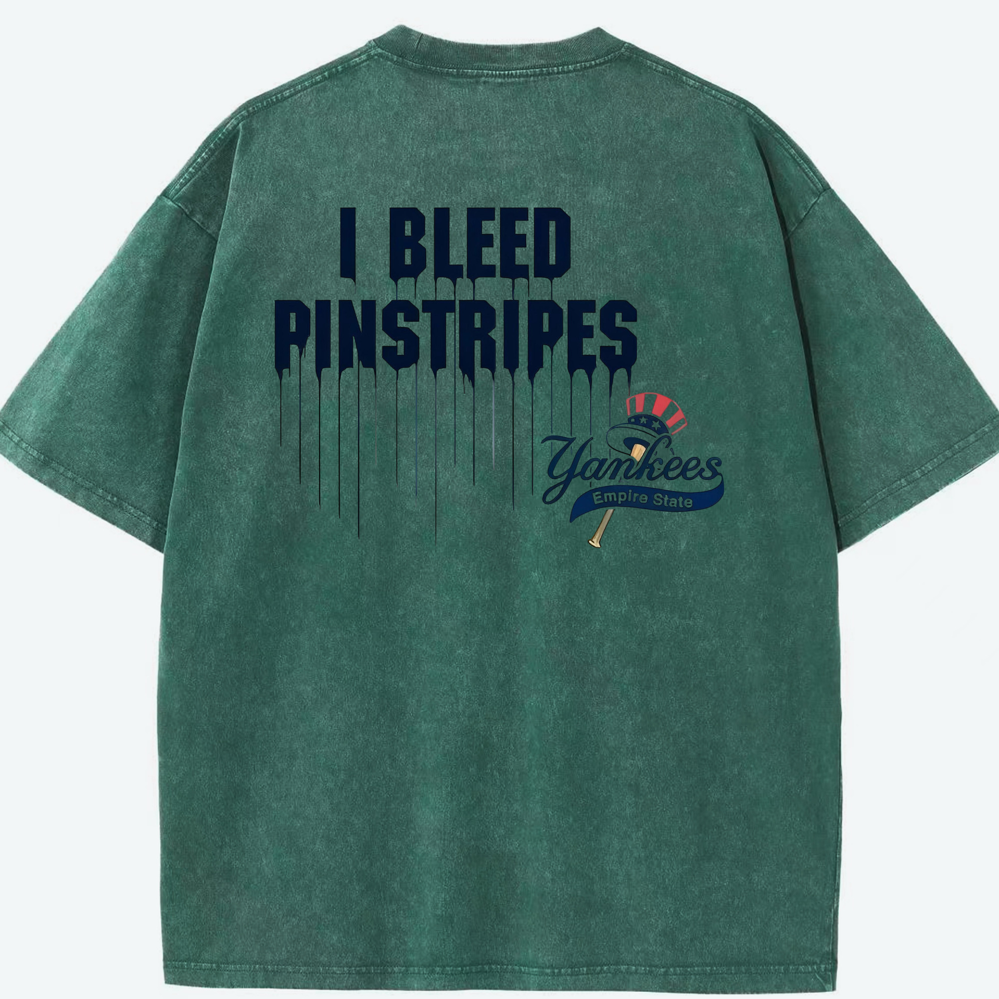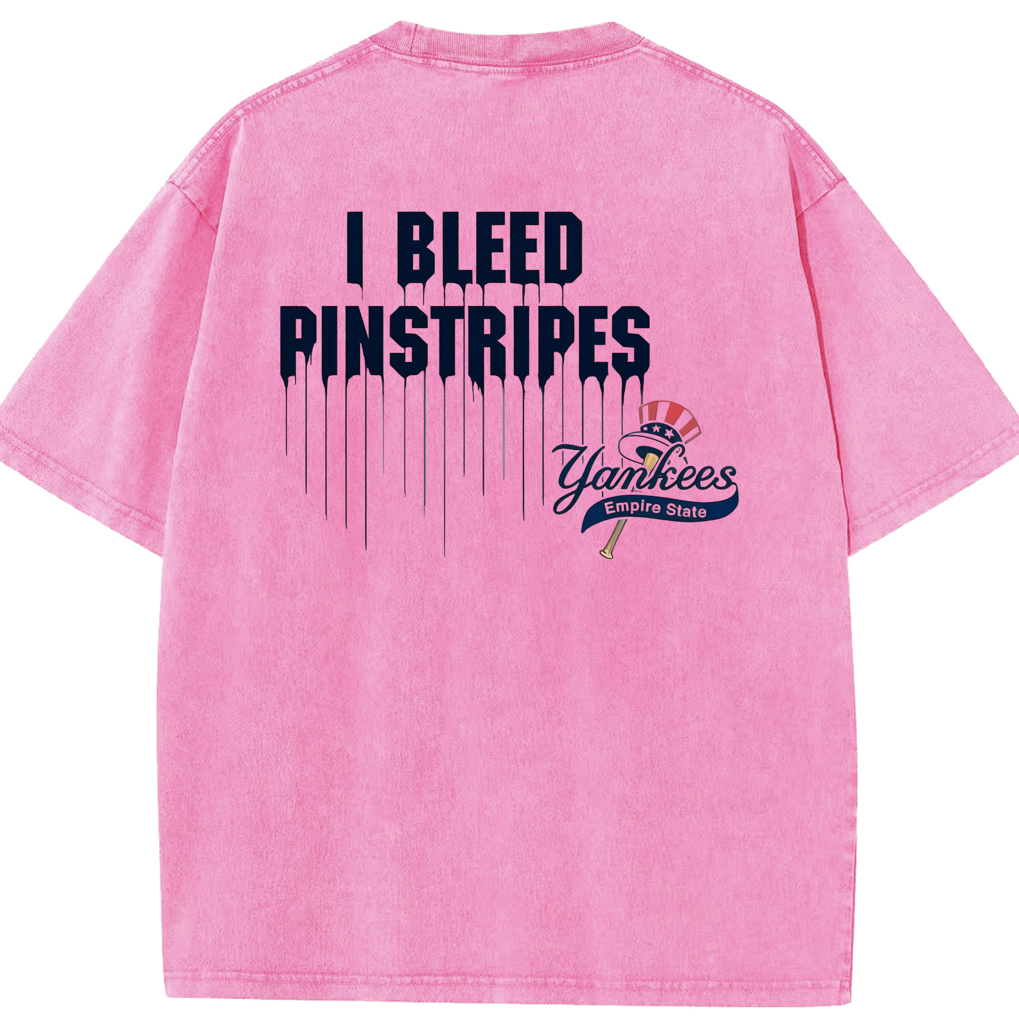 New York Yankees I Bleed Pinstripes Washed Vintage 230g Cotton Oversized T-Shirt With Back Heat Transfer Print – Soft, Lightweight & Stylish – Comfortable Casual Wear For Sports & Everyday Use