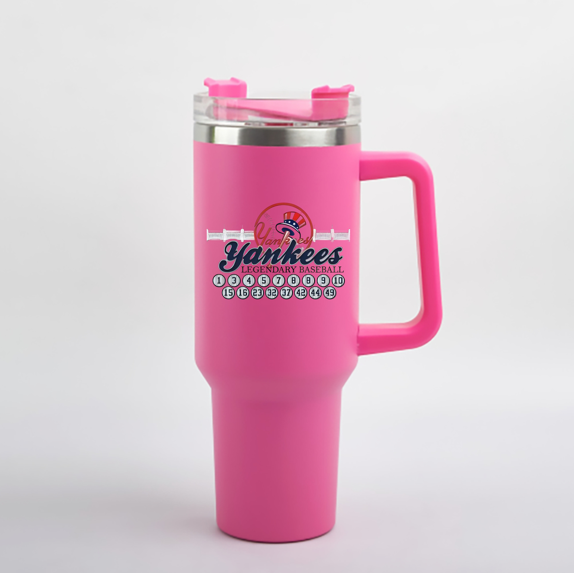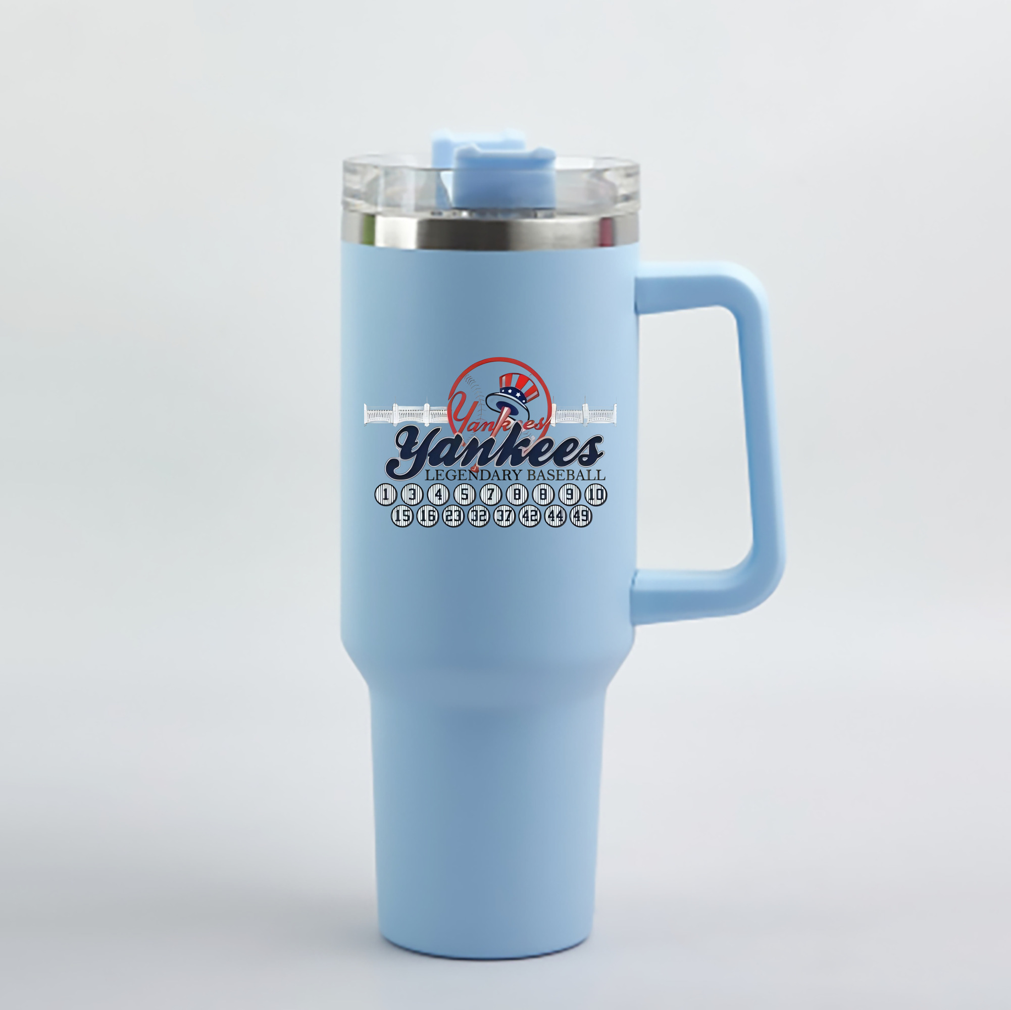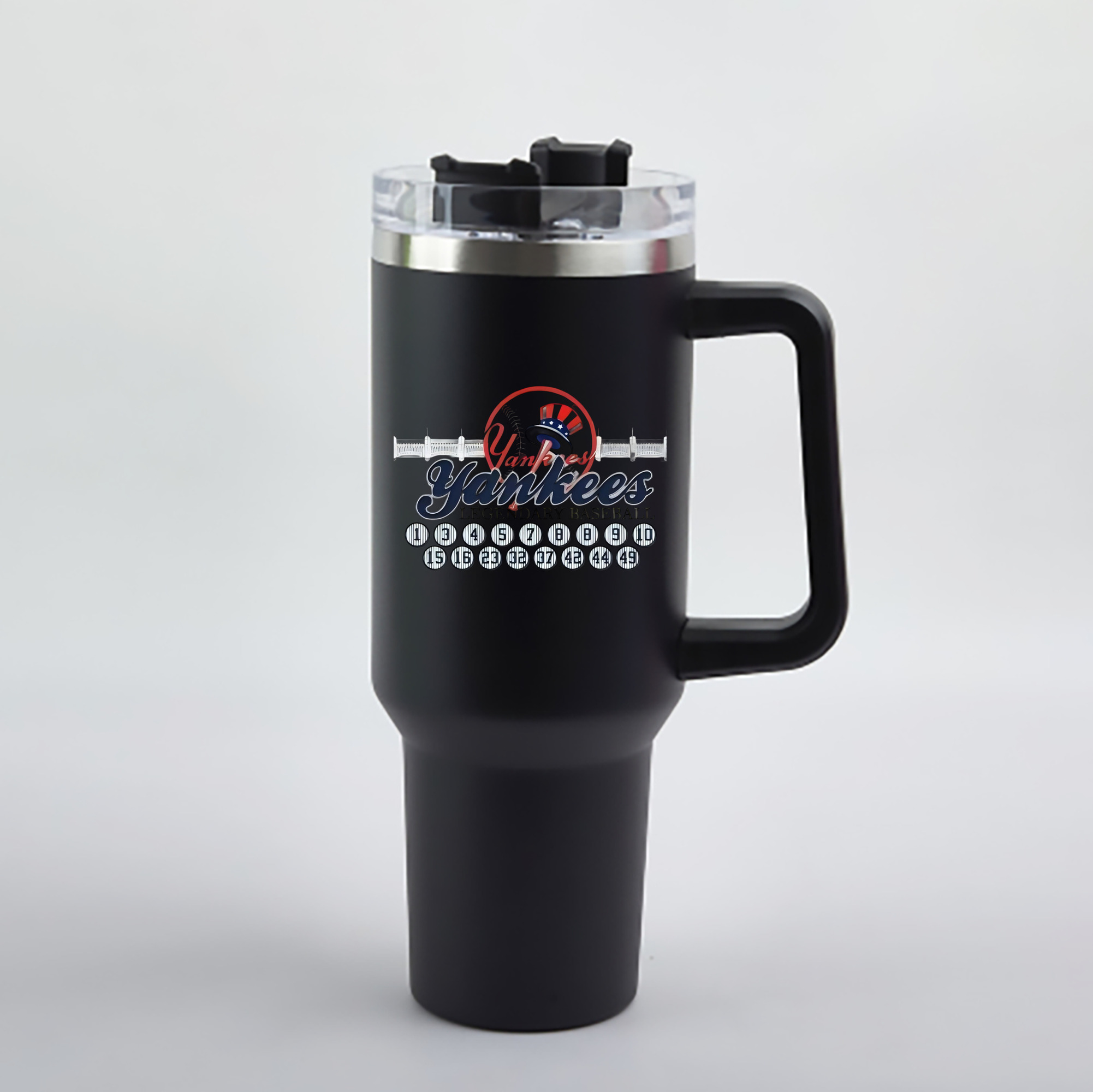 A generic imageNew York Yankees Legendary Baseball 40oz Handle Car Cup With Crystal Sticker Design – Durable Stainless Steel Travel Mug With Reusable Straw – Double Wall InsulatedNew York Yankees Legendary Baseball 40oz Handle Car Cup With Crystal Sticker Design – Durable Stainless Steel Travel Mug With Reusable Straw – Double Wall Insulated