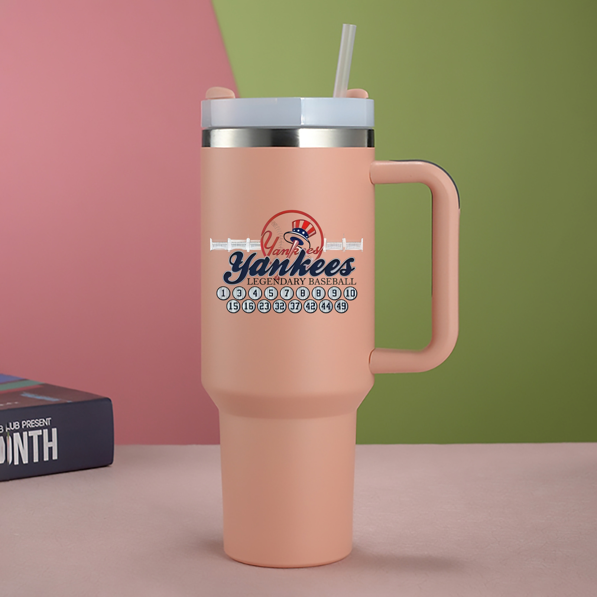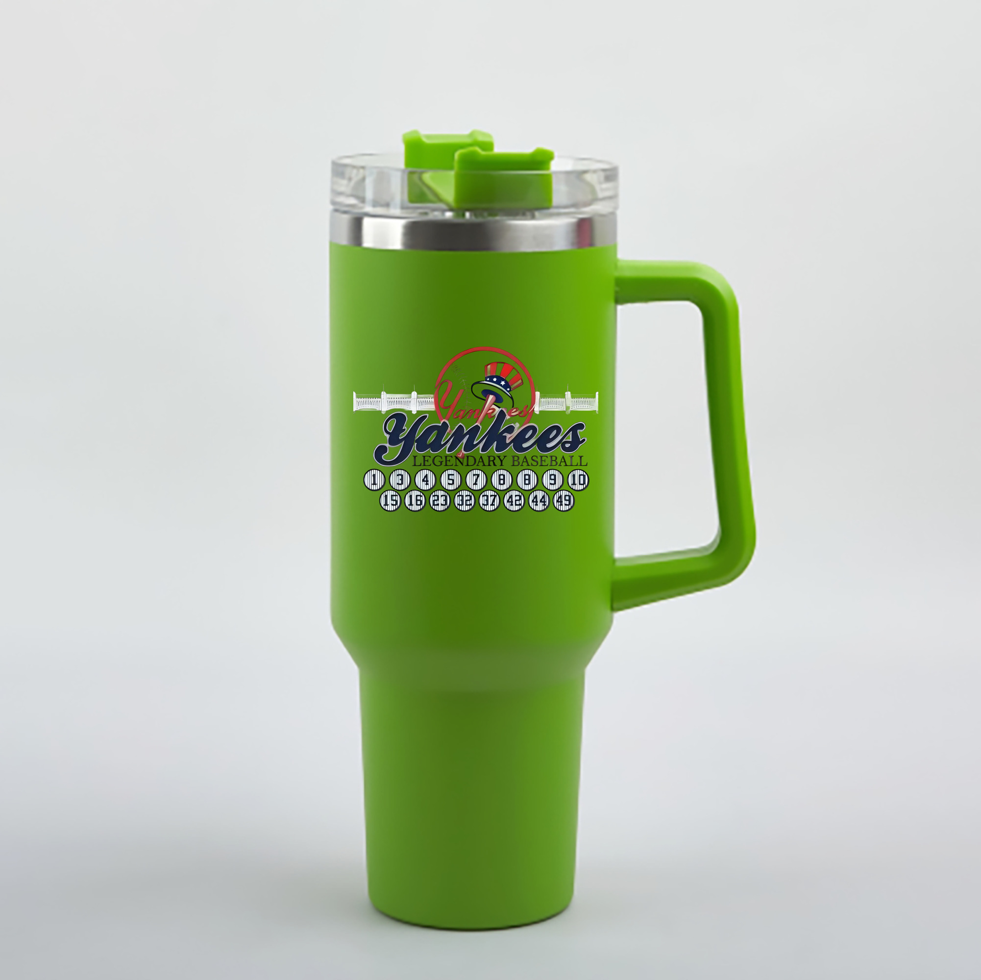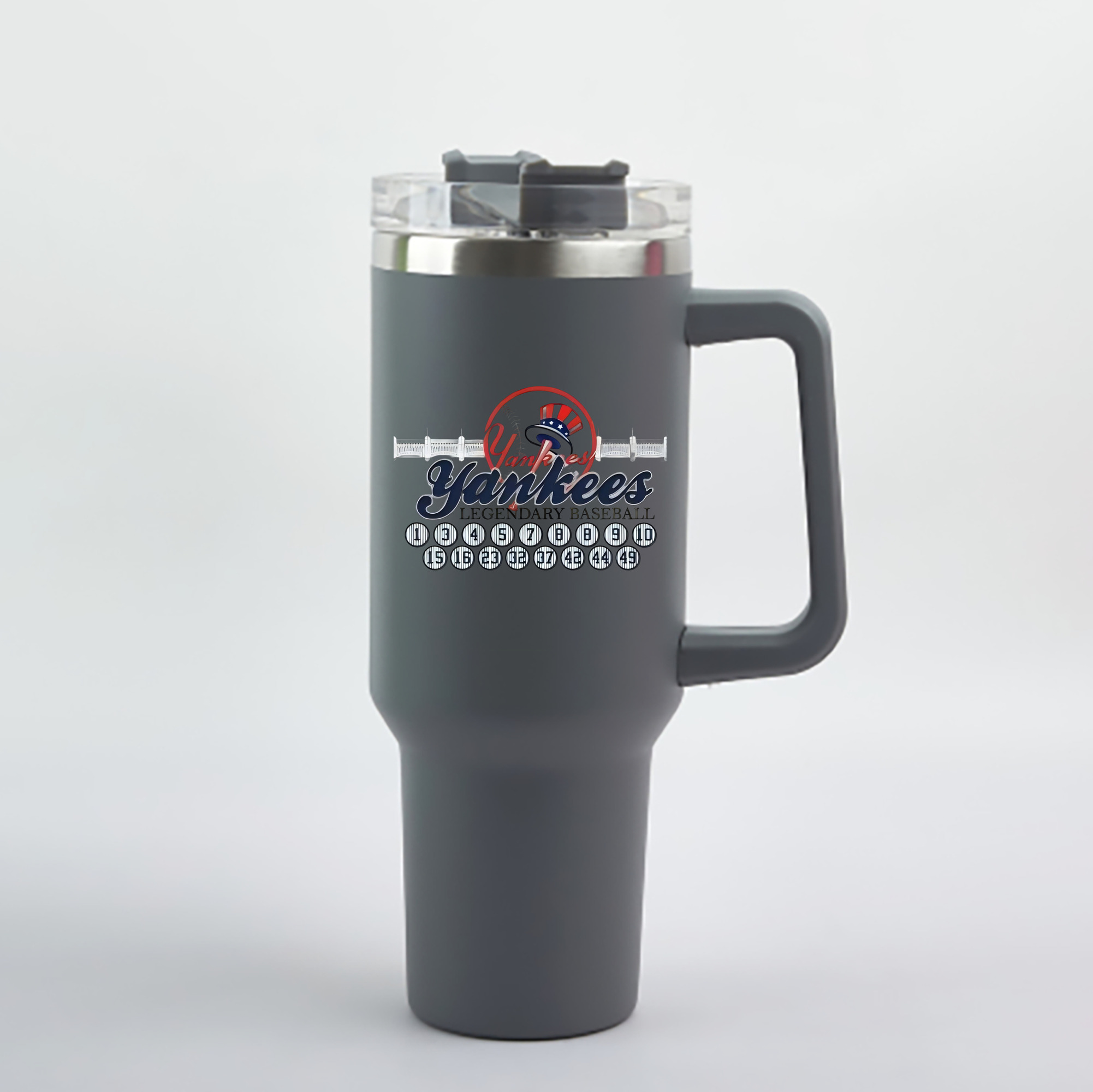 A generic imageNew York Yankees Legendary Baseball 40oz Handle Car Cup With Crystal Sticker Design – Durable Stainless Steel Travel Mug With Reusable Straw – Double Wall InsulatedNew York Yankees Legendary Baseball 40oz Handle Car Cup With Crystal Sticker Design – Durable Stainless Steel Travel Mug With Reusable Straw – Double Wall Insulated