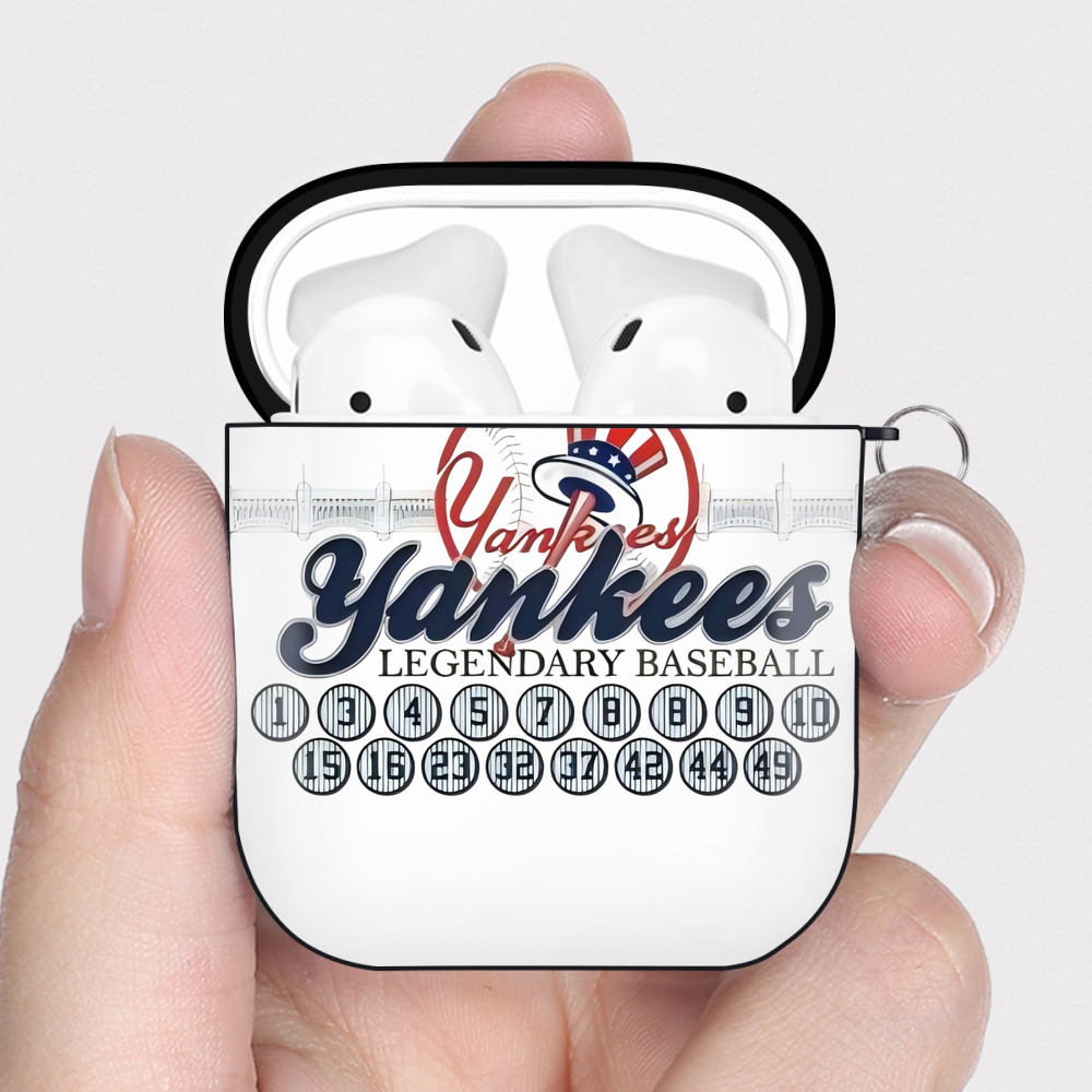 New York Yankees Legendary Baseball AirPods 2 Case Hard Shell Black, Flexible PC Material, Precise Cutouts, Full Protection, Anti-Fingerprint, Washable, Includes Keychain – Durable & Slim Design