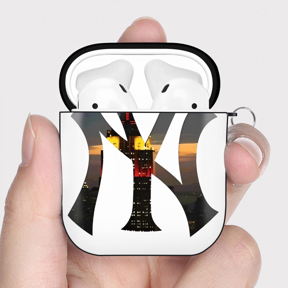 New York Yankees Logo New York Background AirPods 2 Case Hard Shell Black, Flexible PC Material, Precise Cutouts, Full Protection, Anti-Fingerprint, Washable, Includes Keychain – Durable & Slim Design