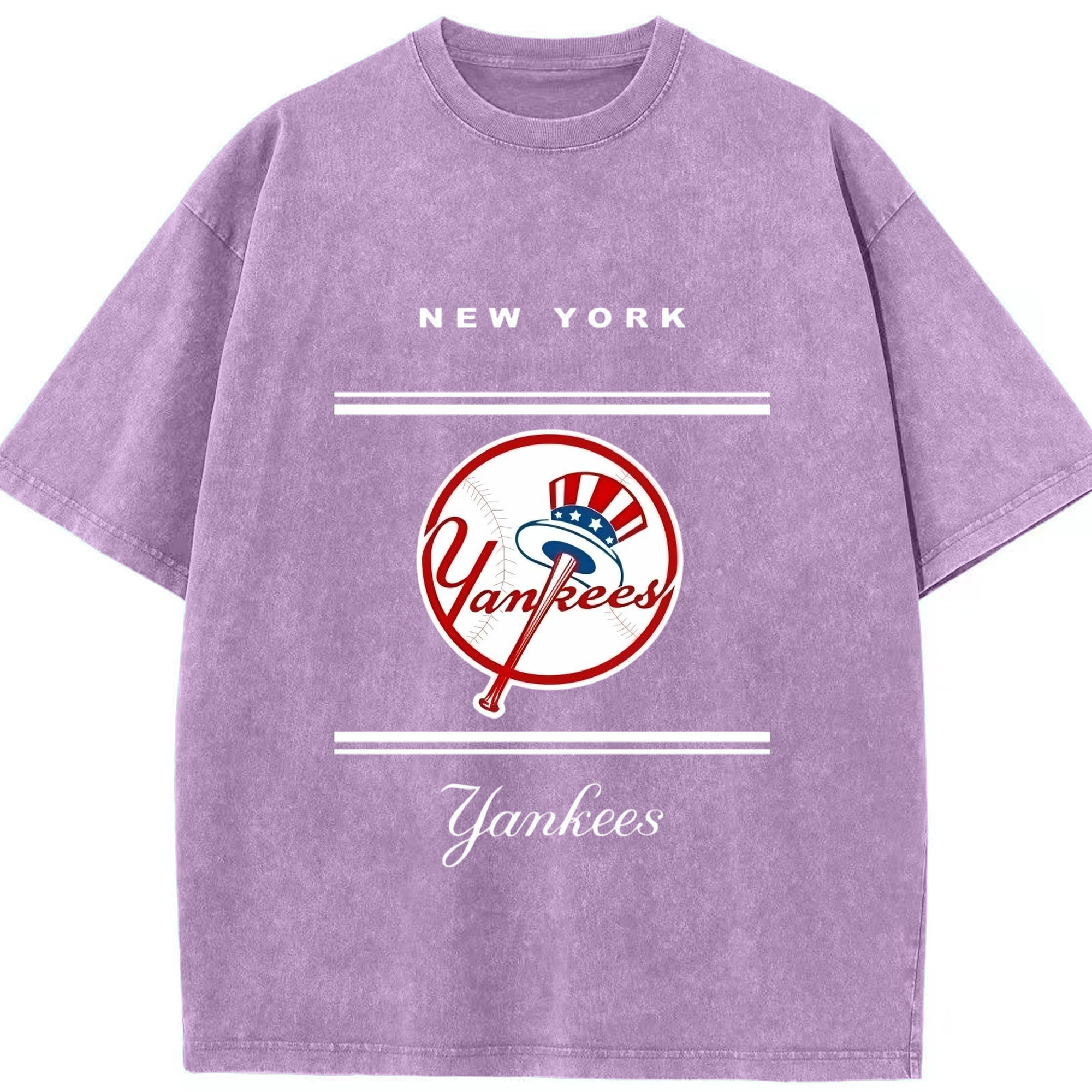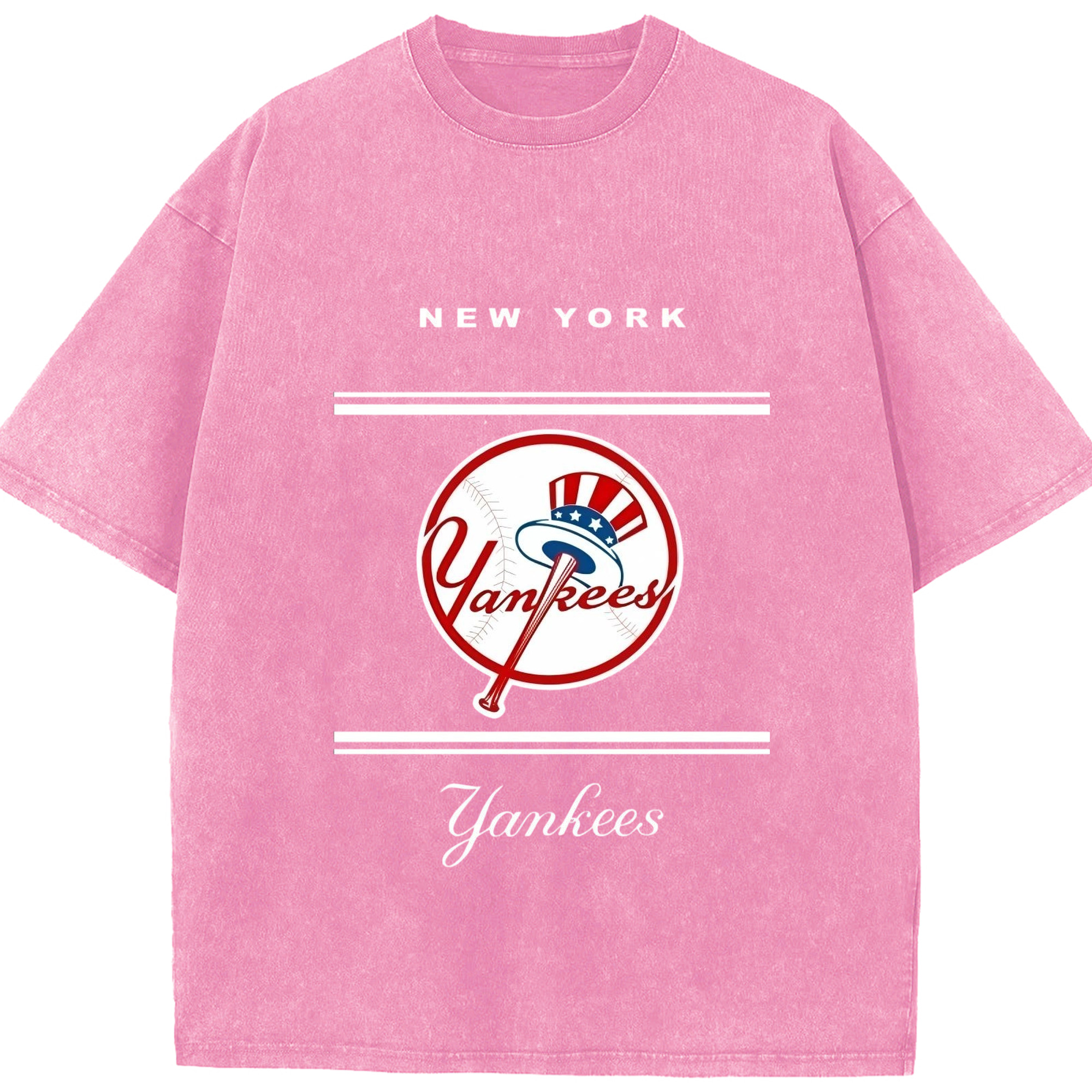 New York Yankees Logo Washed Vintage Look 230g Cotton Oversized T-Shirt With Front Heat Transfer Print – Soft, Lightweight, Stylish Fit – Comfortable Casual Wear For Sports & Everyday Use