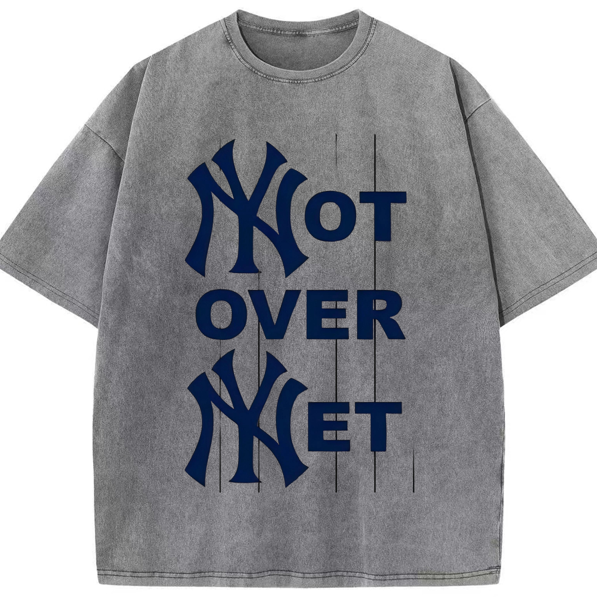 New York Yankees Not over Net Washed Vintage Look 230g Cotton Oversized T-Shirt With Front Heat Transfer Print – Soft, Lightweight, Stylish Fit – Comfortable Casual Wear For Sports & Everyday Use