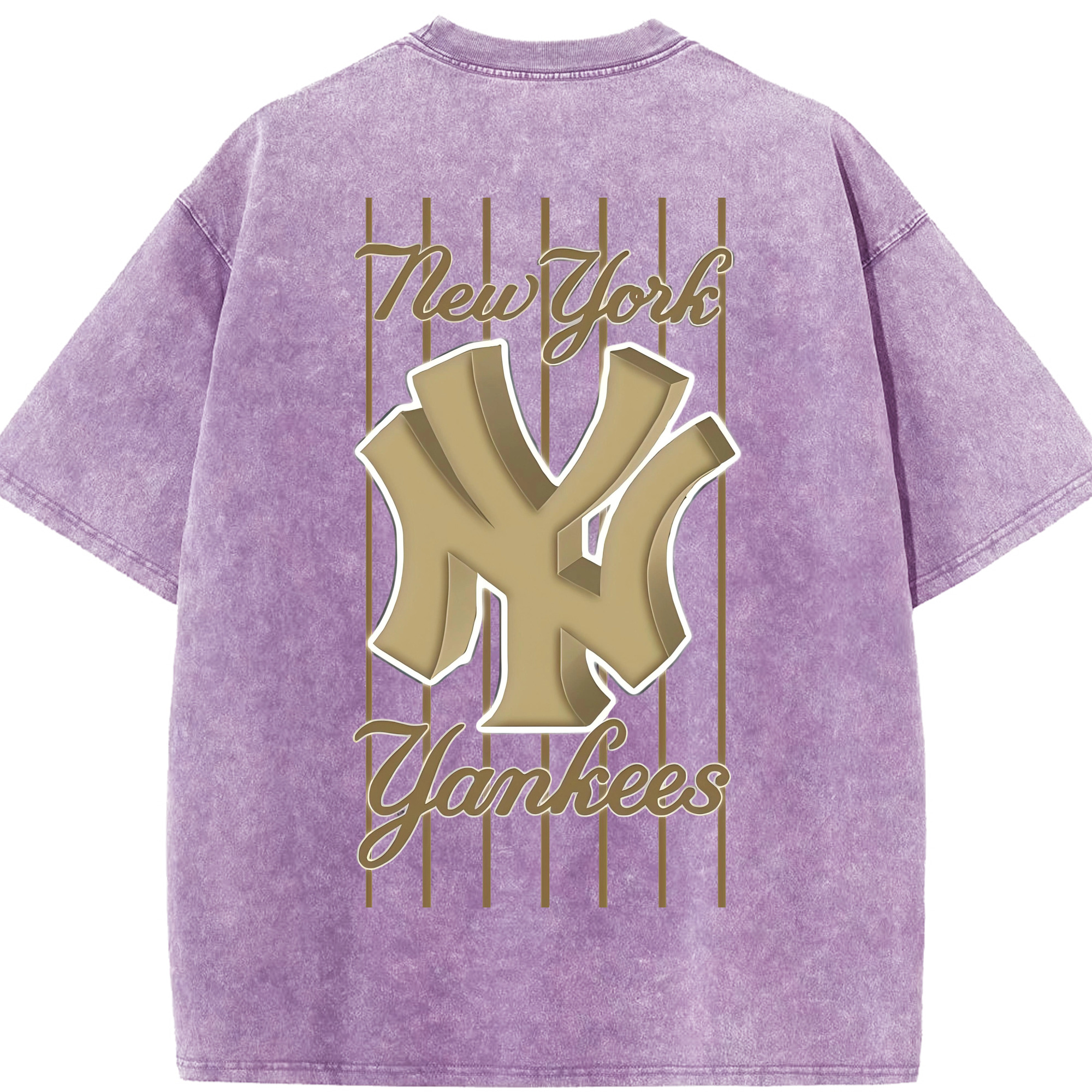 New York Yankees Pinstripe Golden Logo Washed Vintage 230g Cotton Oversized T-Shirt With Back Heat Transfer Print – Soft, Lightweight & Stylish – Comfortable Casual Wear For Sports & Everyday Use