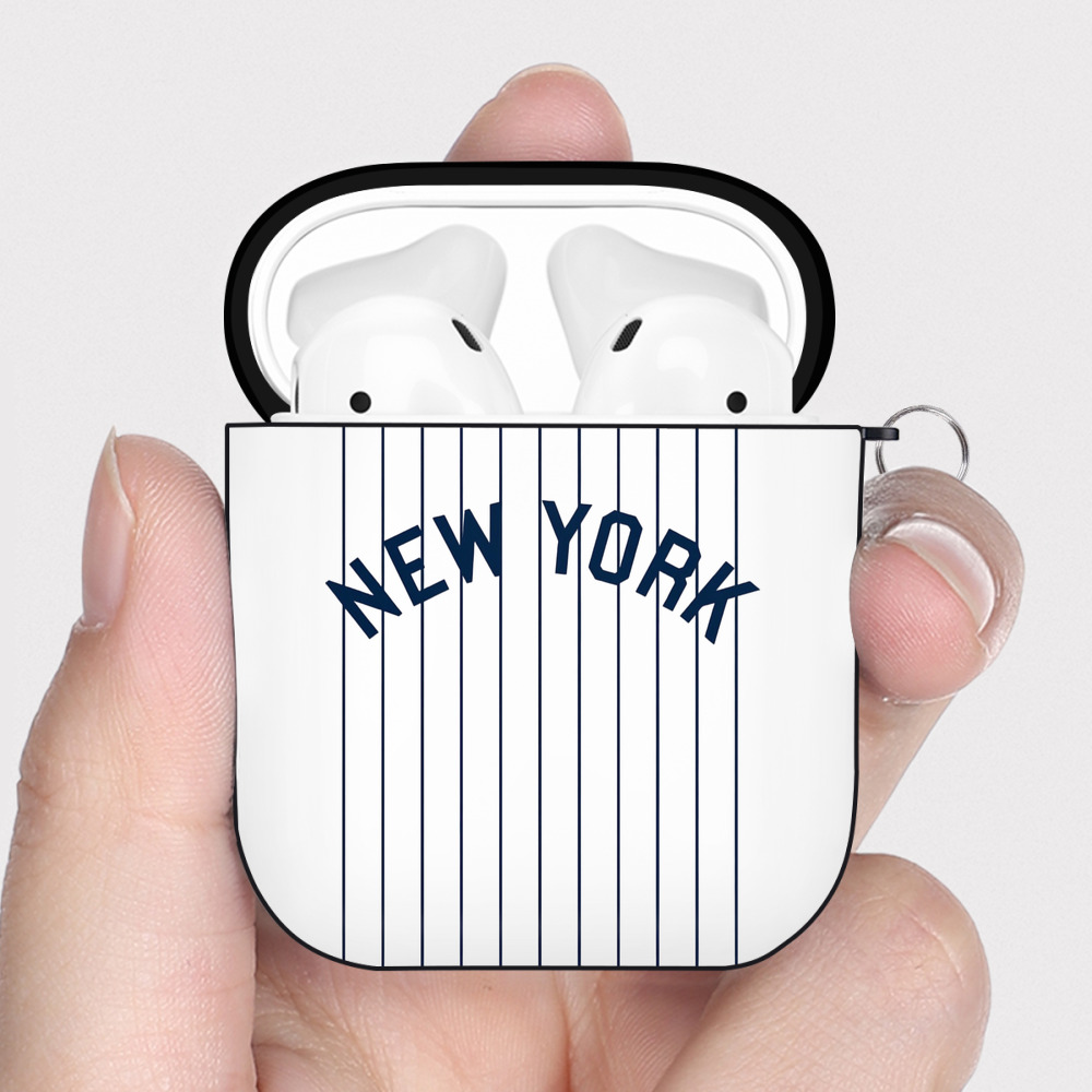 New York Yankees Pinstripe New York AirPods 2 Case Hard Shell Black, Flexible PC Material, Precise Cutouts, Full Protection, Anti-Fingerprint, Washable, Includes Keychain – Durable & Slim Design