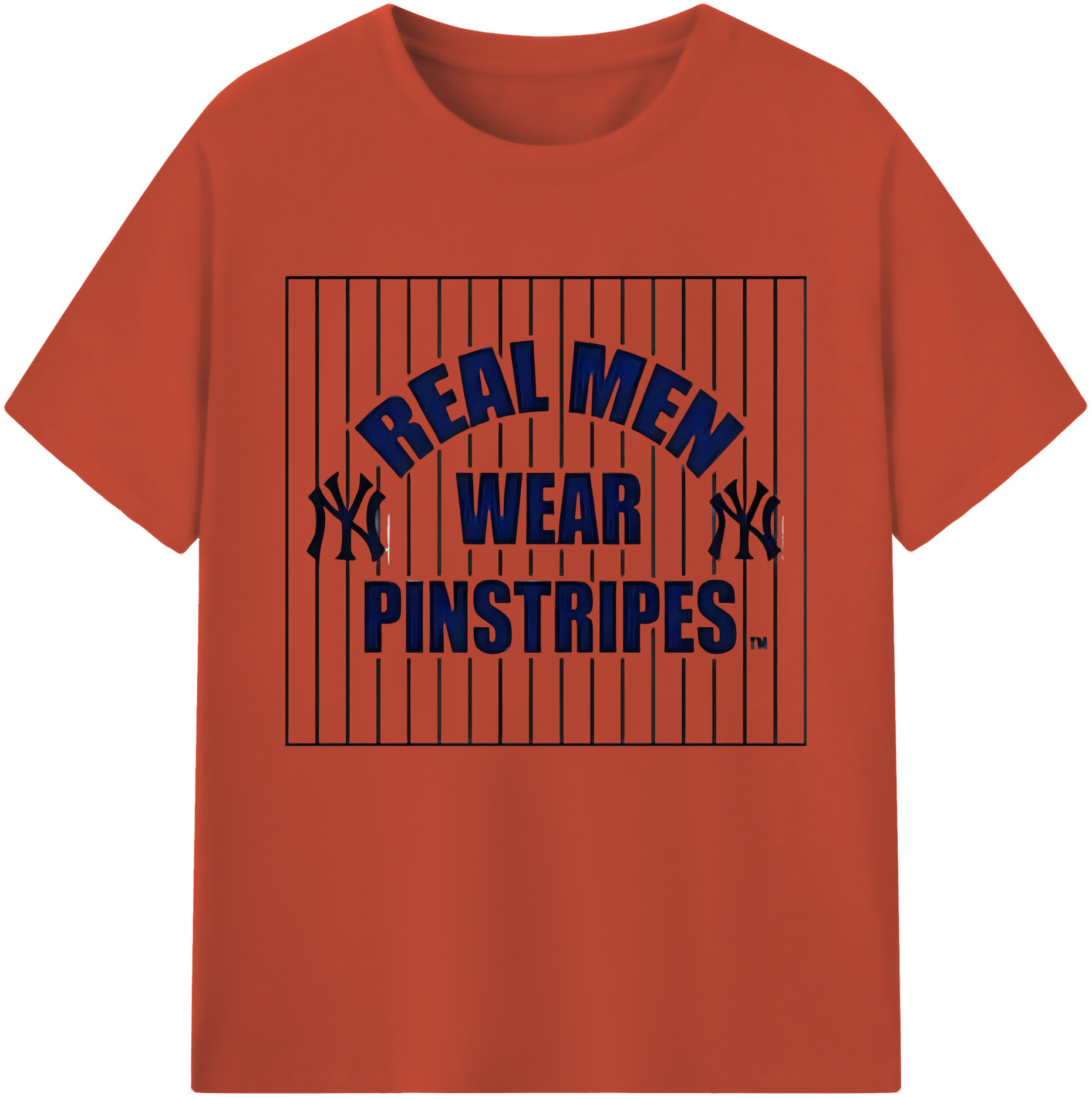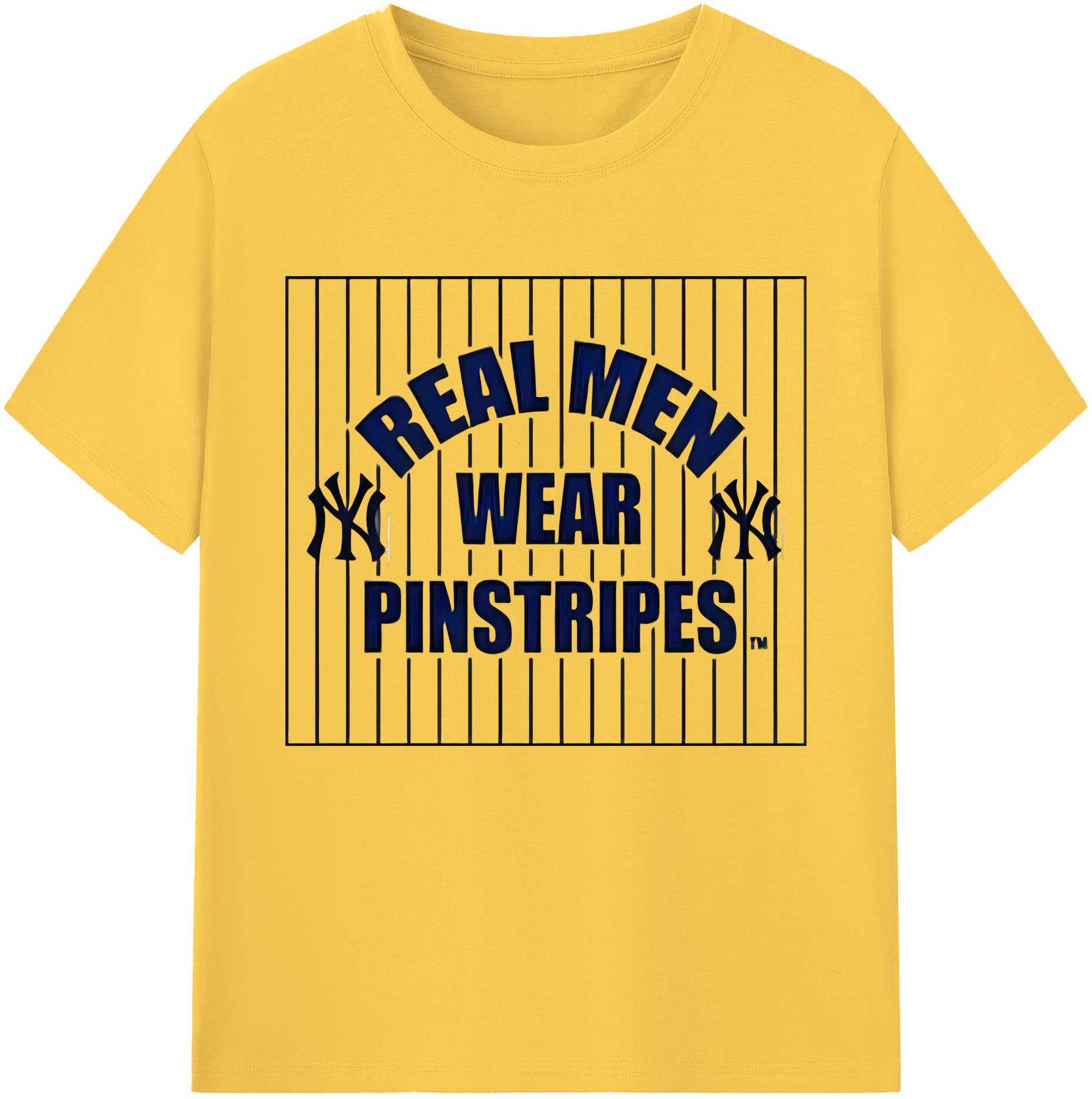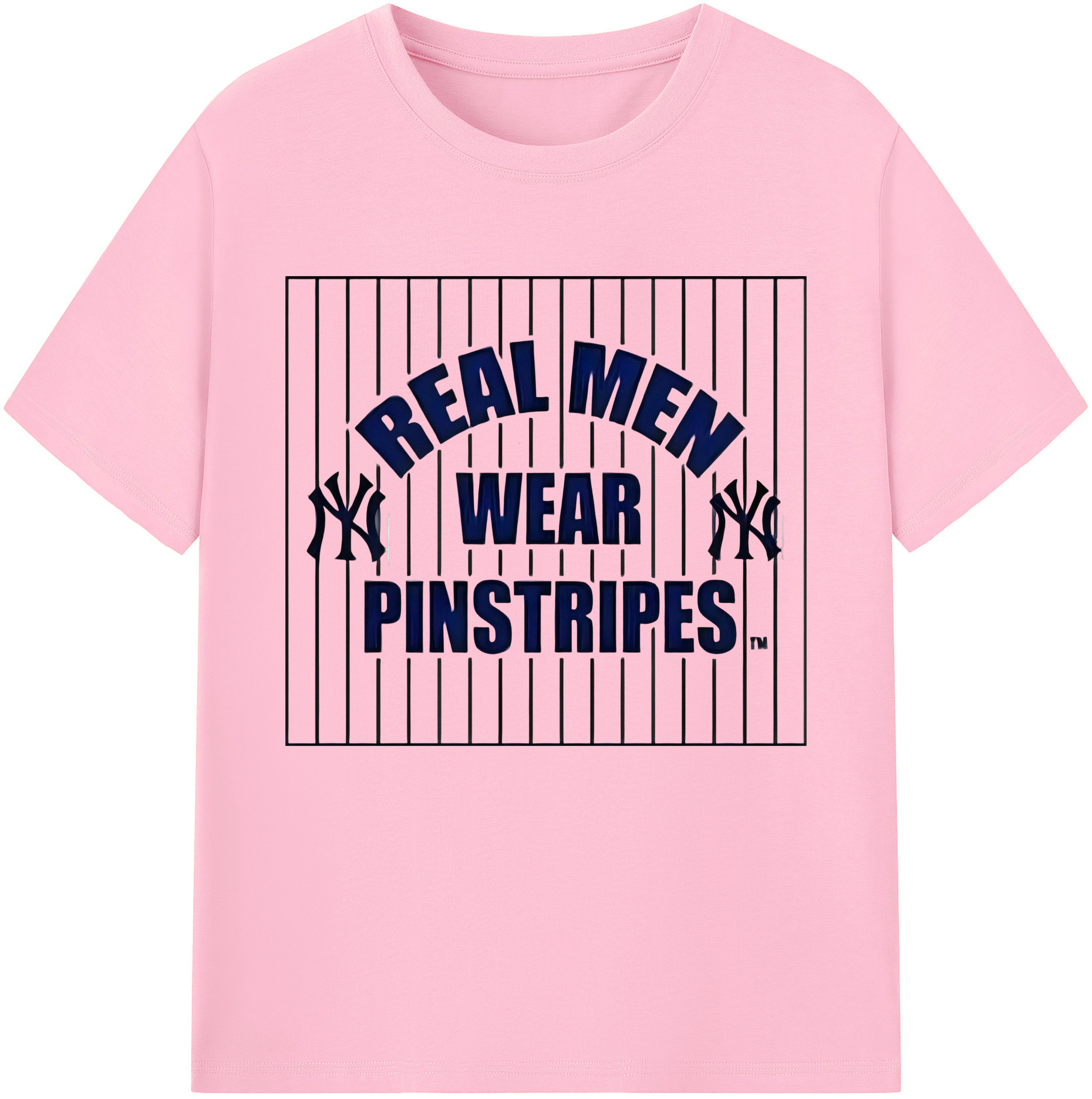 New York Yankees Real Men Wear Pinstripes 180g Cotton T-Shirt With Front Heat Transfer Print – Soft, Lightweight, Fitted Design – Comfortable Casual Wear For Sports & Everyday Use