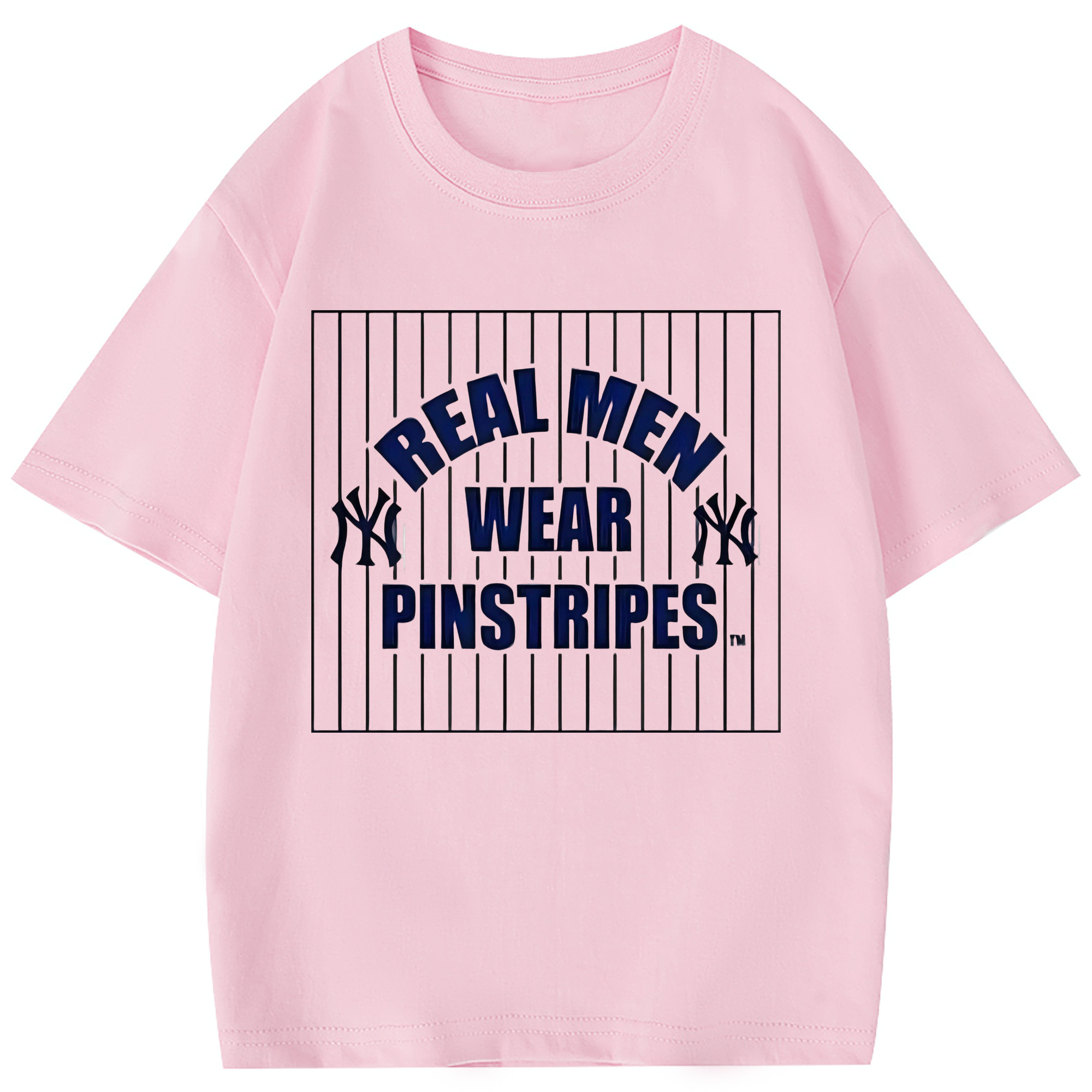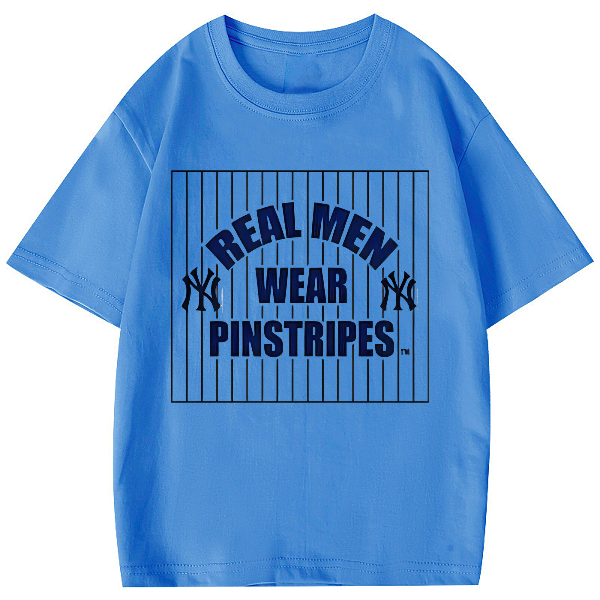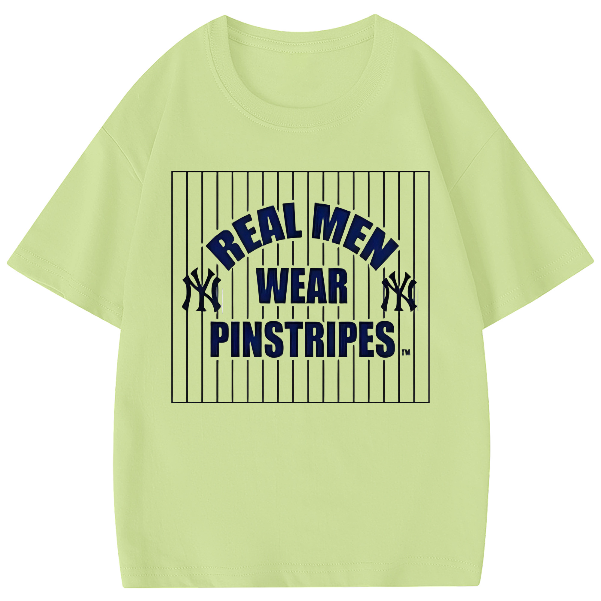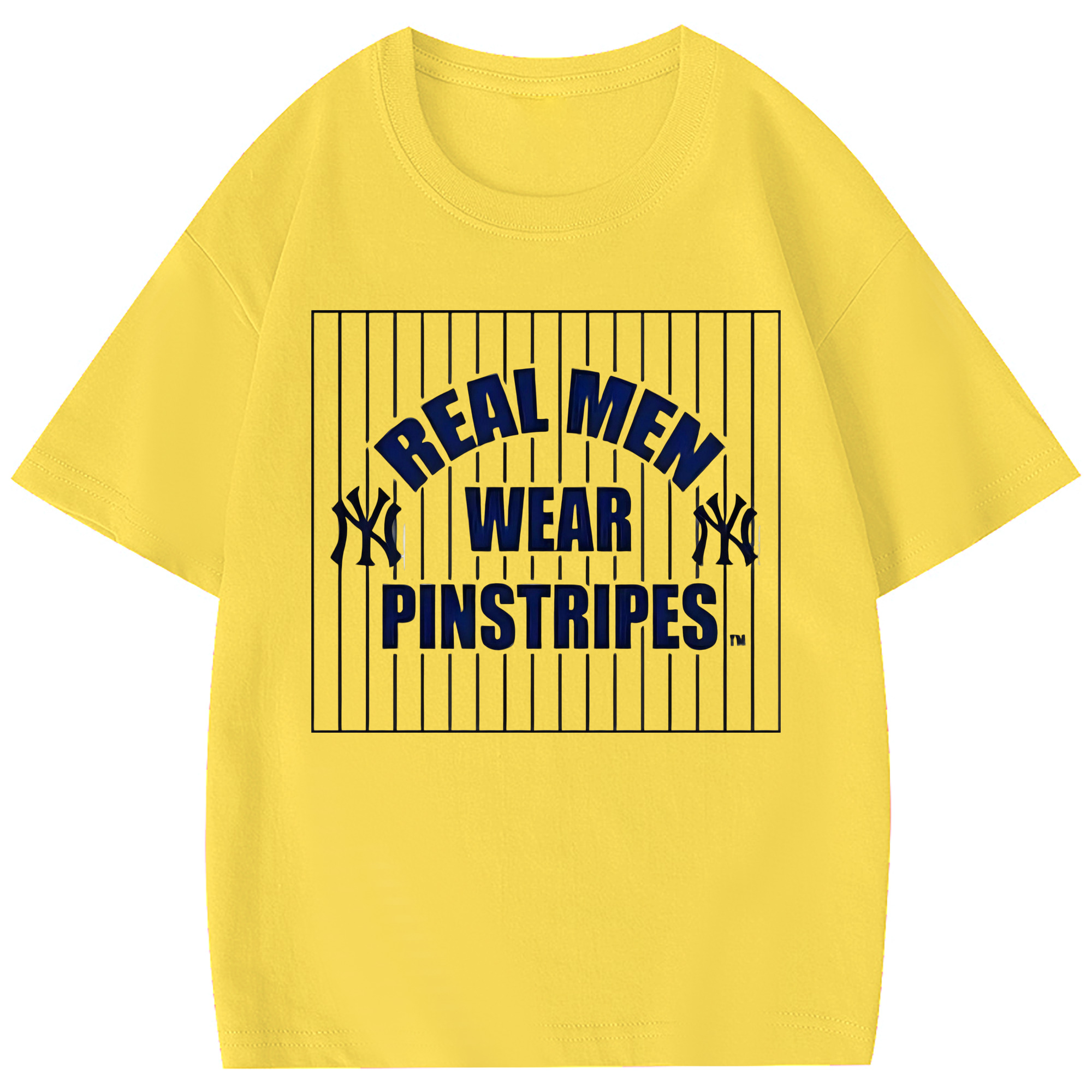New York Yankees Real Men Wear Pinstripes Combed Cotton Kids T-Shirt 180g With Front Heat Transfer Print – Soft, Lightweight, Side-Seamed Design – Stylish And Comfortable Casual Wear For Everyday Activities