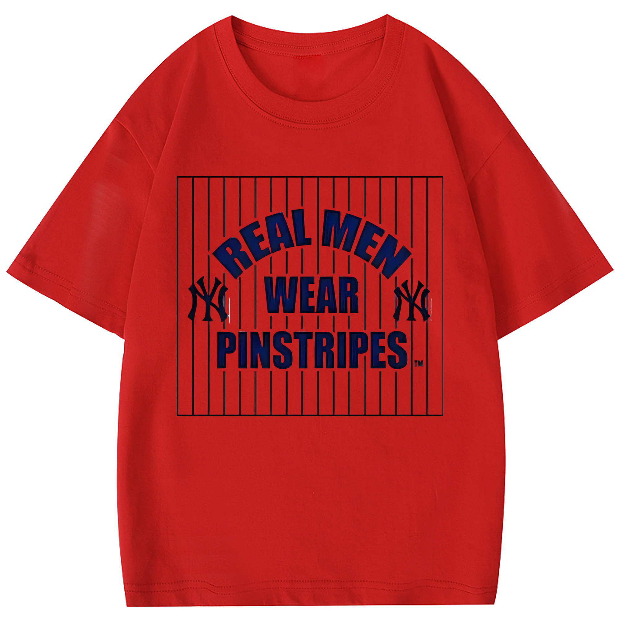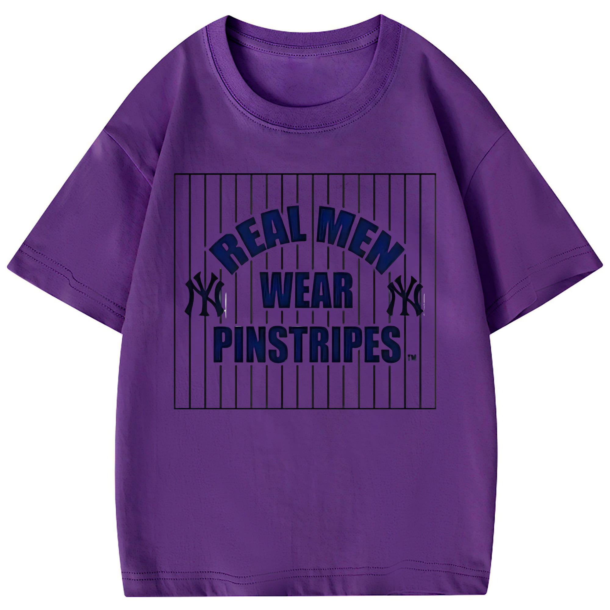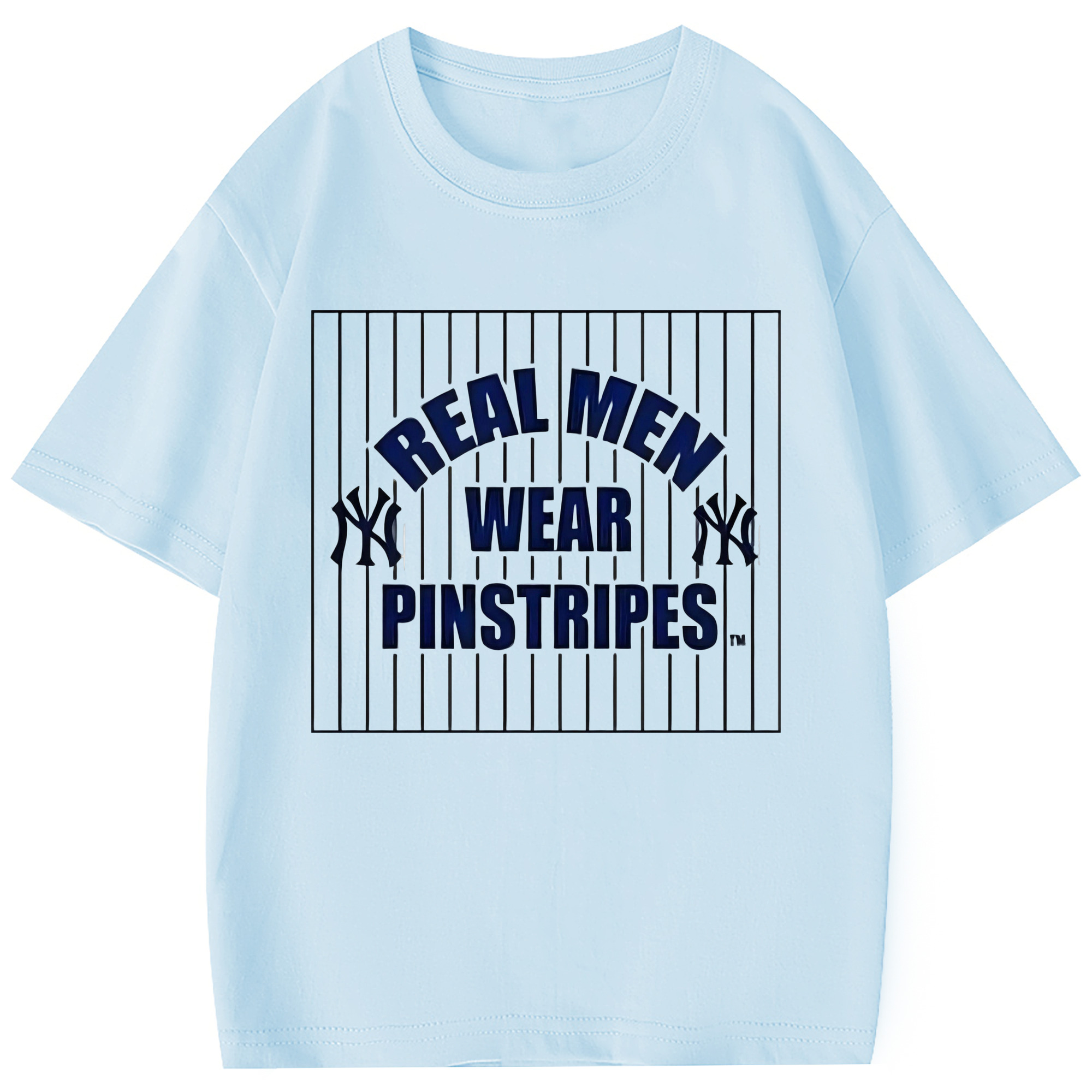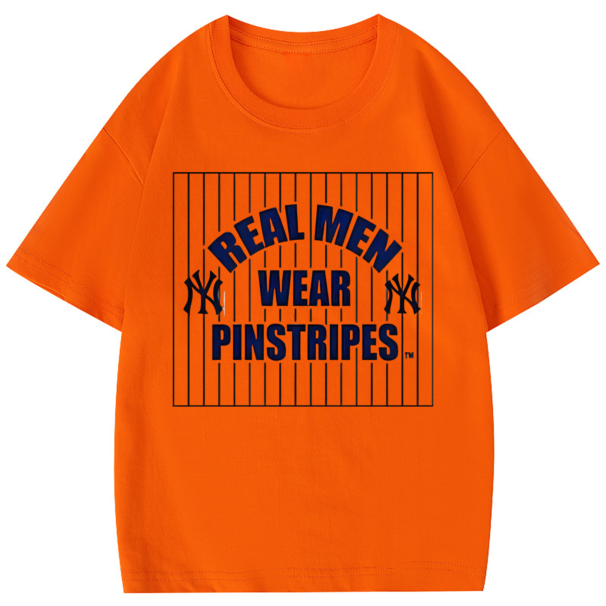 New York Yankees Real Men Wear Pinstripes Combed Cotton Kids T-Shirt 180g With Front Heat Transfer Print – Soft, Lightweight, Side-Seamed Design – Stylish And Comfortable Casual Wear For Everyday Activities