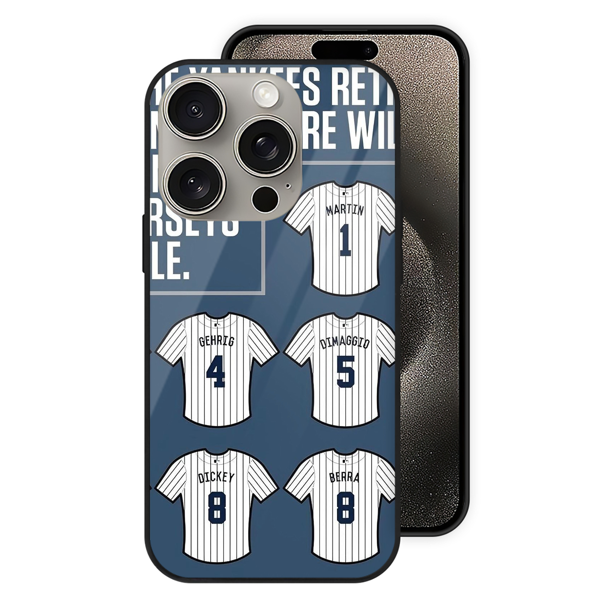 New York Yankees Retire Single Number IPhone 15 Pro Mirror Phone Case – UV Printed Glass + TPU – Scratch-Resistant, Wireless Charging Compatible, Precise Fit & Stylish Design