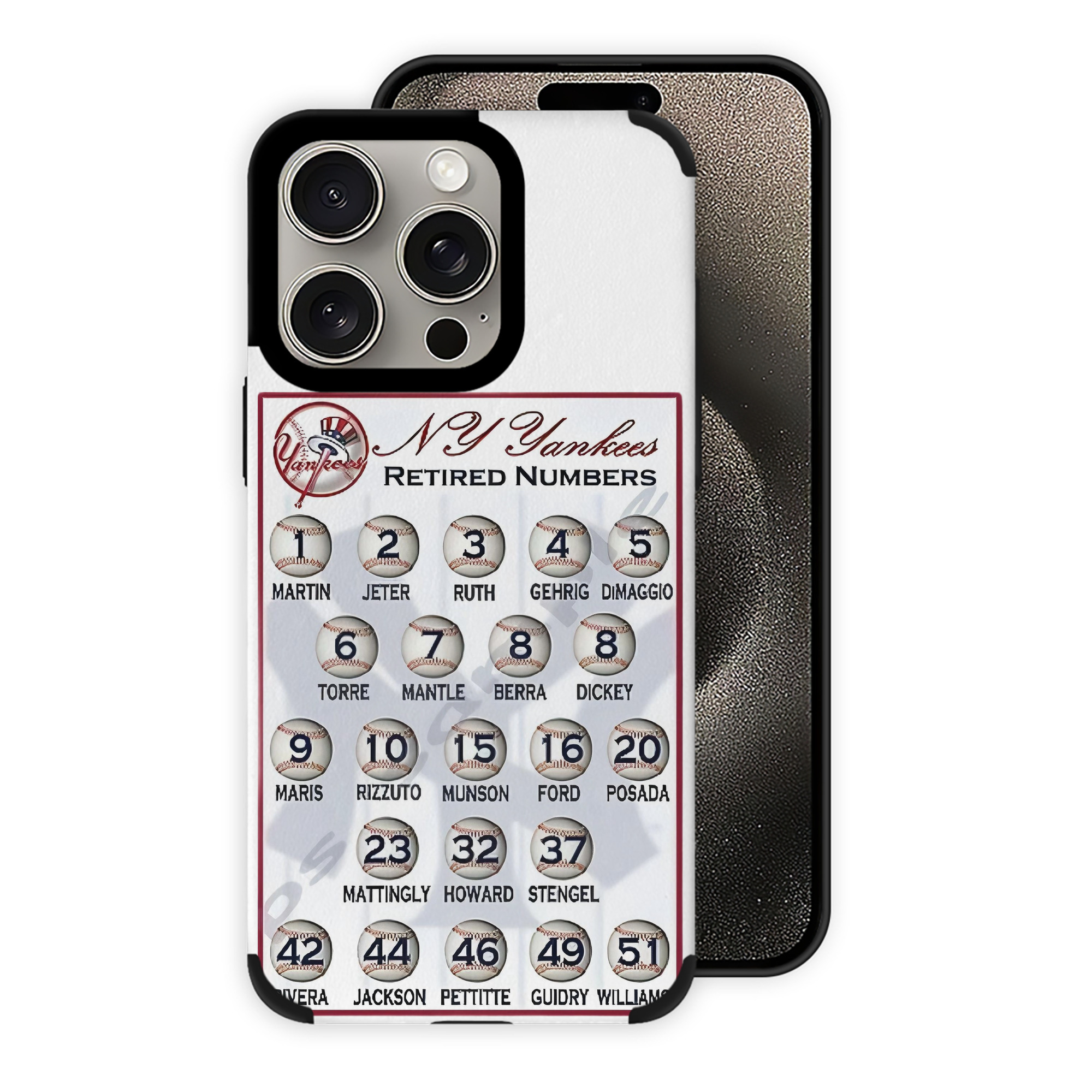 New York Yankees Retired Numbers IPhone 15 Pro Max PU Leather Case – Soft Lining, 360° Protection – Precise Fit, 3D Buttons, Easy Charging – Anti-Yellowing, Easy To Clean