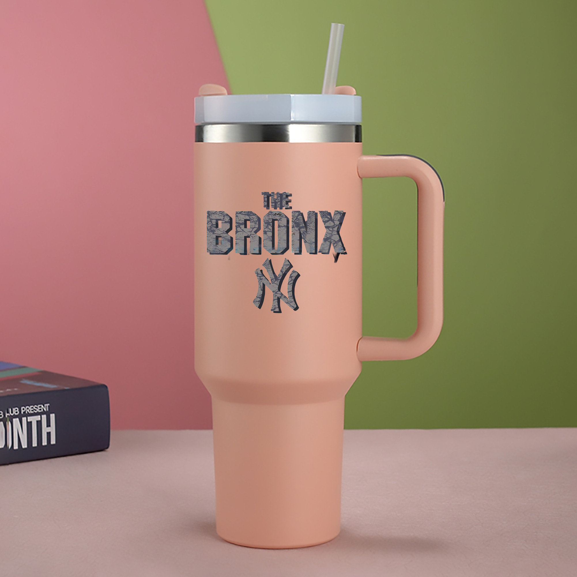 A generic imageNew York Yankees The Bronx 40oz Handle Car Cup With Crystal Sticker Design – Durable Stainless Steel Travel Mug With Reusable Straw – Double Wall InsulatedNew York Yankees The Bronx 40oz Handle Car Cup With Crystal Sticker Design – Durable Stainless Steel Travel Mug With Reusable Straw – Double Wall Insulated