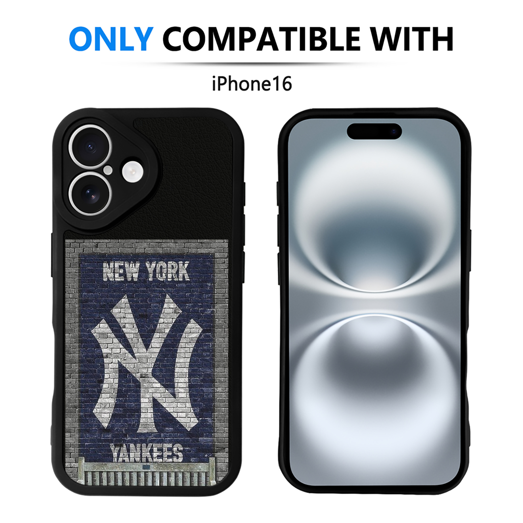 New York Yankees Wall Background IPhone 16 Silicone Leather Case – UV Print, Lambskin Texture – Perfect Fit, Wireless Charging Compatible, Scratch Resistant, Precise Cutouts – Stylish Protection For IPhone 16
