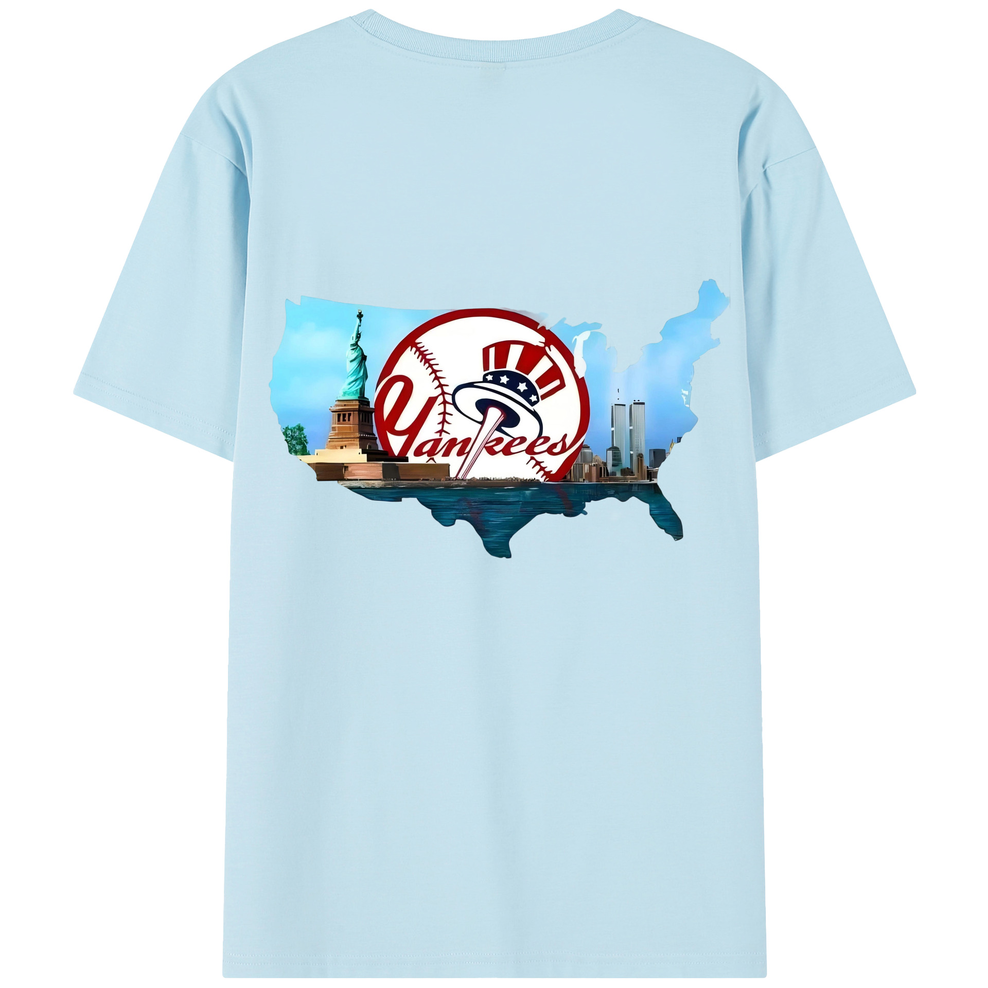 A generic imageNew York Yankees Whole USA 180g Combed Cotton T-Shirt With Back Heat Transfer Print – Soft, Lightweight, Fitted Design – Stylish Casual Wear For Sports & Everyday UseNew York Yankees Whole USA 180g Combed Cotton T-Shirt With Back Heat Transfer Print – Soft, Lightweight, Fitted Design – Stylish Casual Wear For Sports & Everyday UseNew York Yankees Whole USA 180g Combed Cotton T-Shirt With Back Heat Transfer Print – Soft, Lightweight, Fitted Design – Stylish Casual Wear For Sports & Everyday Use