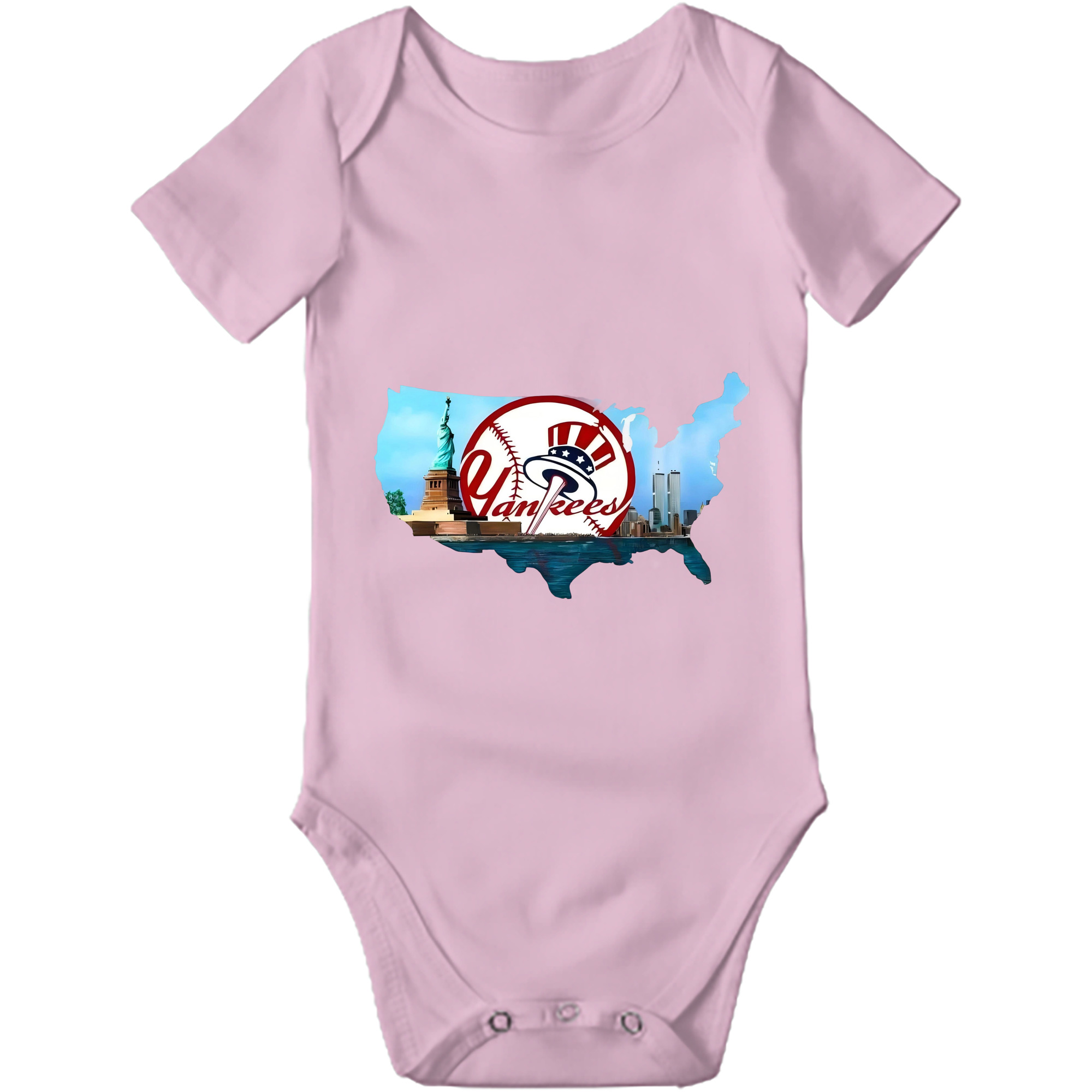 A generic imageNew York Yankees Whole USA Baby Short Sleeve Romper – 100% Cotton Soft & Breathable Digital Print Onesie With Easy Snap Closure And Envelope Shoulder – Comfortable For Daily Wear & TravelNew York Yankees Whole USA Baby Short Sleeve Romper – 100% Cotton Soft & Breathable Digital Print Onesie With Easy Snap Closure And Envelope Shoulder – Comfortable For Daily Wear & Travel